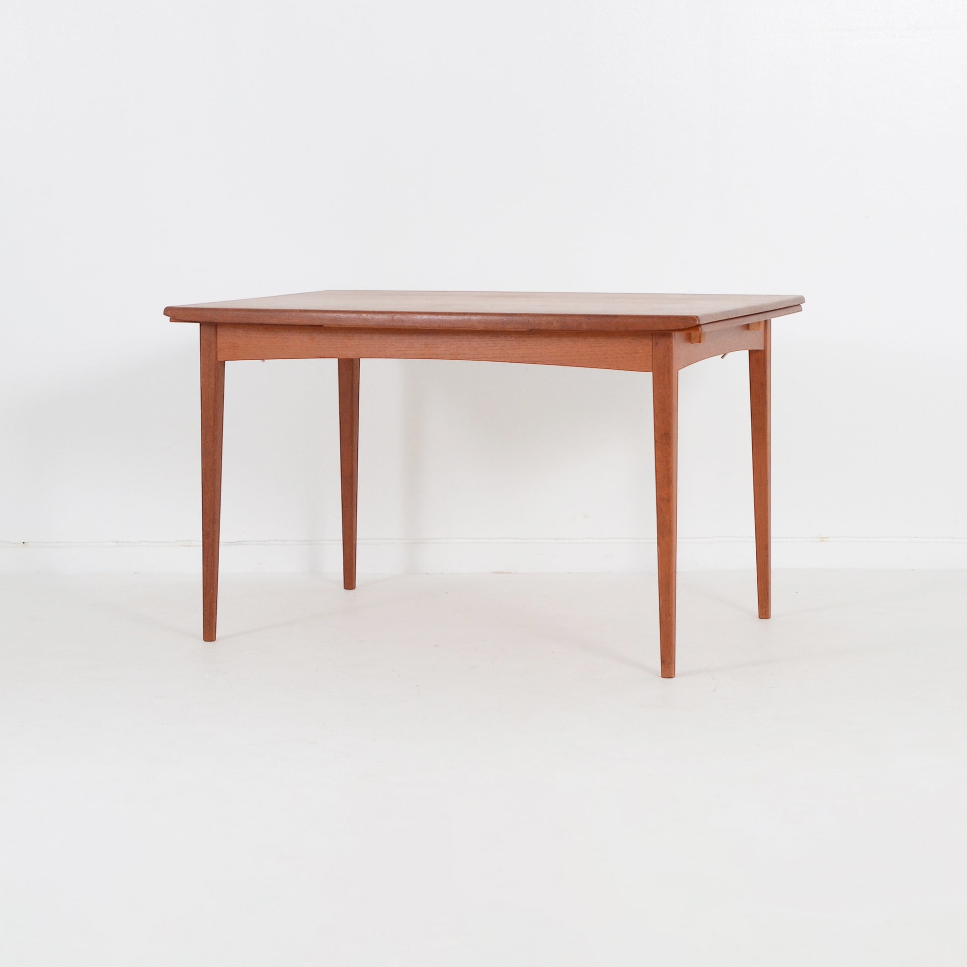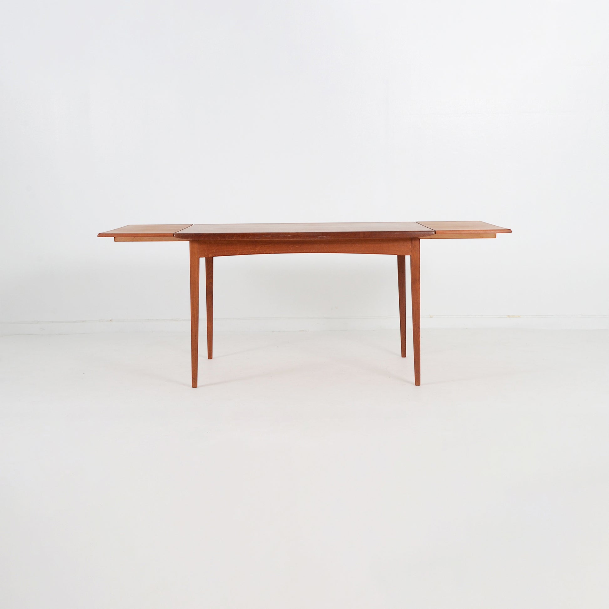 来客などで人数が増えたとき、 作業台として広々と使いたいときなど、用途に合わせ簡単に広げられるエクステンション天板がついたとても便利な伸長式テーブル。