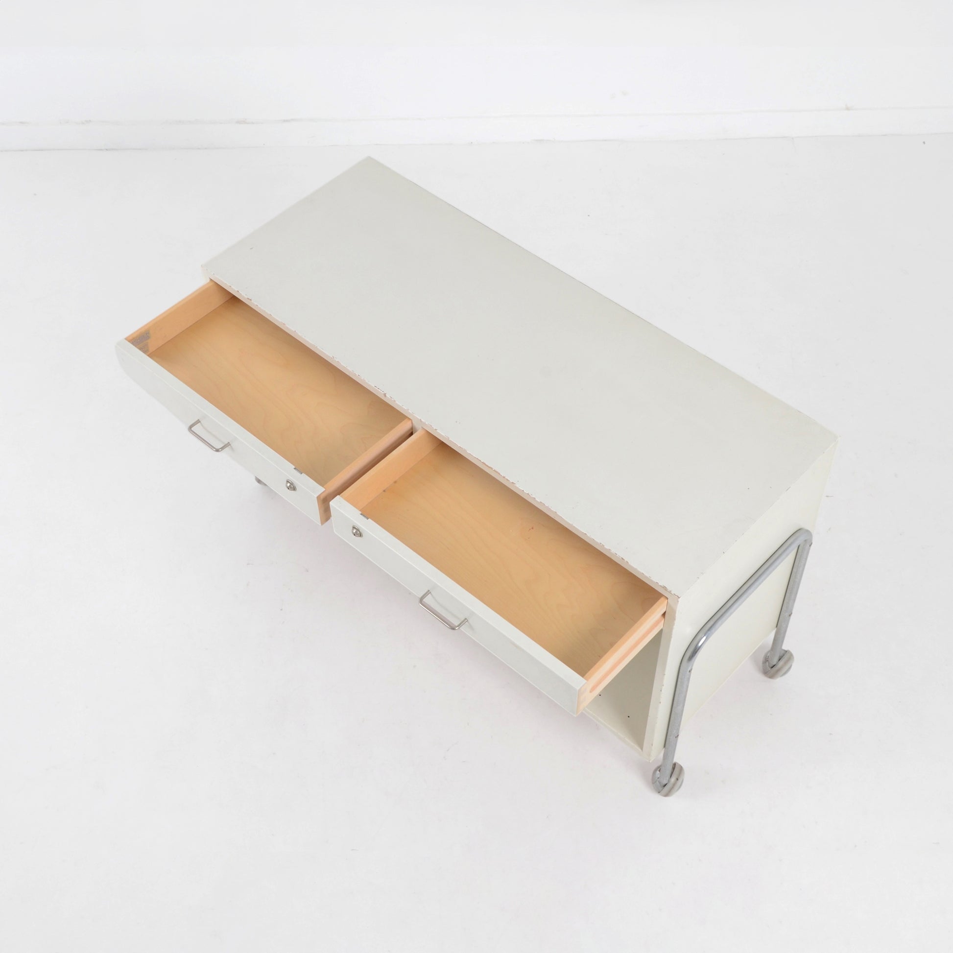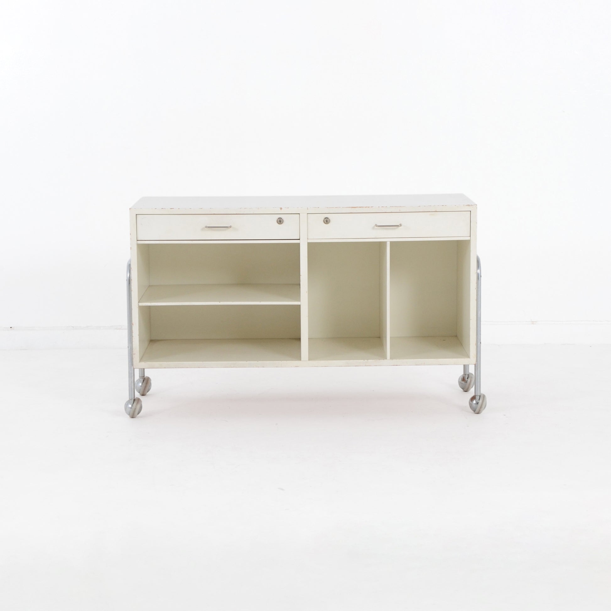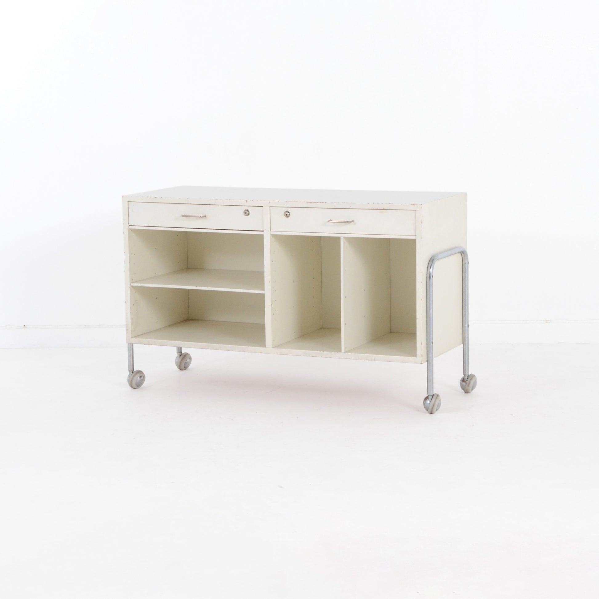 稼働式の丸い脚が可愛いワゴンチェスト。