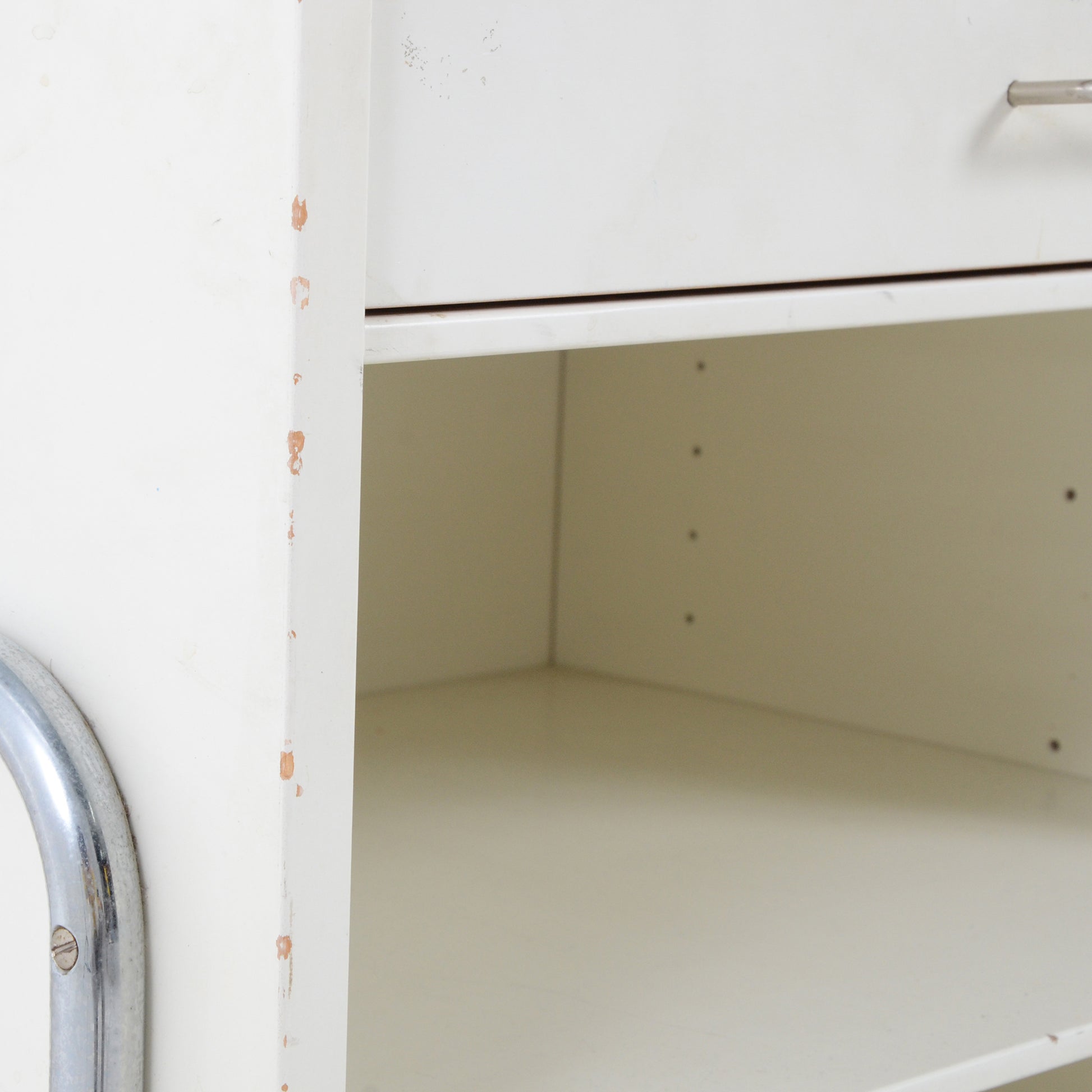 インダストリアルなお部屋もアルミ素材の脚との相性が良く、一人暮らしのホワイトのお部屋にも合う、どんなスタイルのお部屋にも溶け込むチェストです。