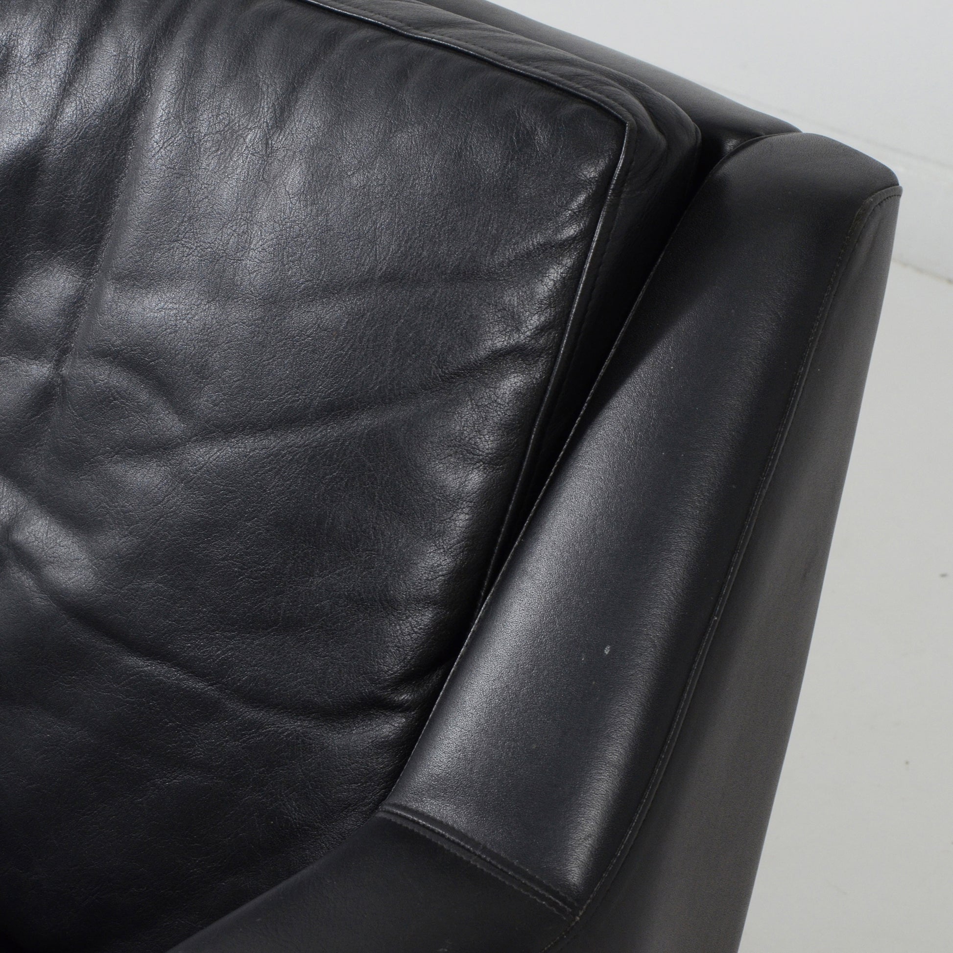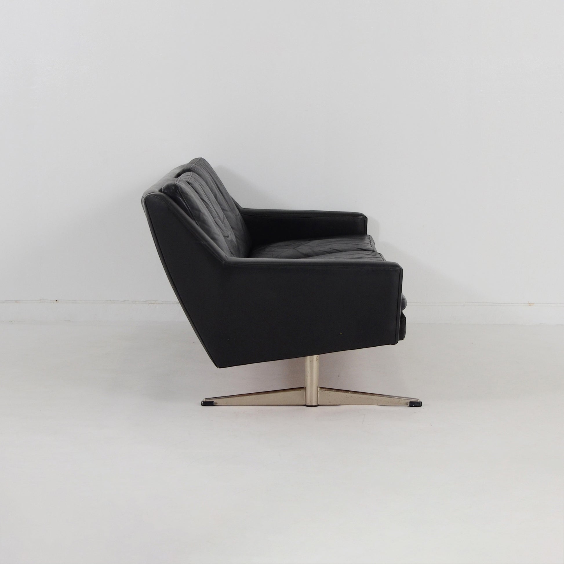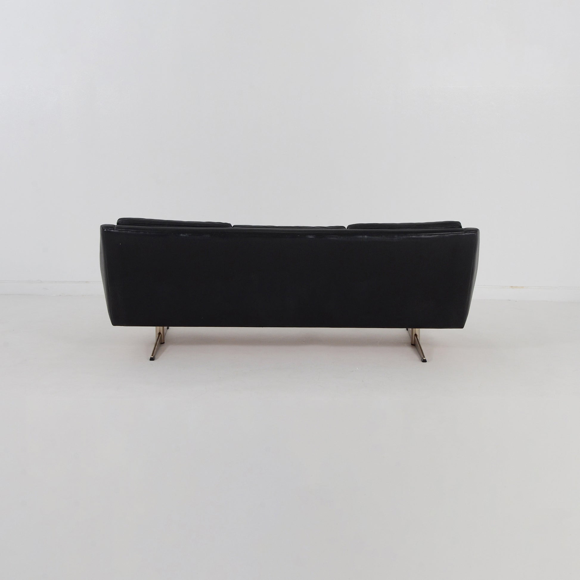 スカンジナビア風のエレガントなブラックレザーのソファです。