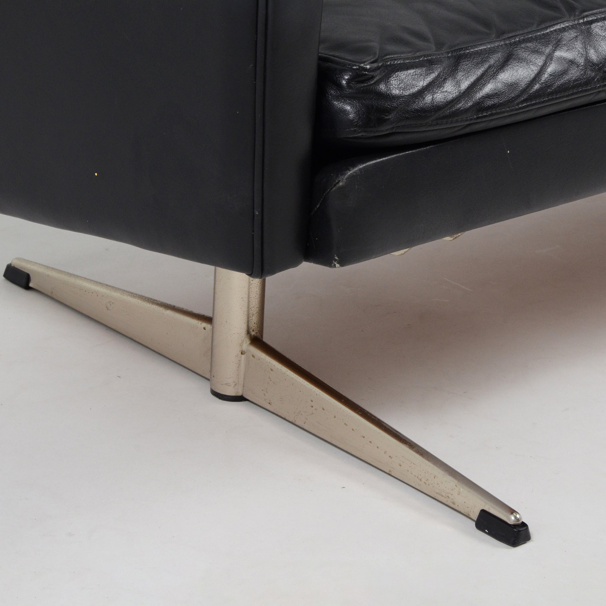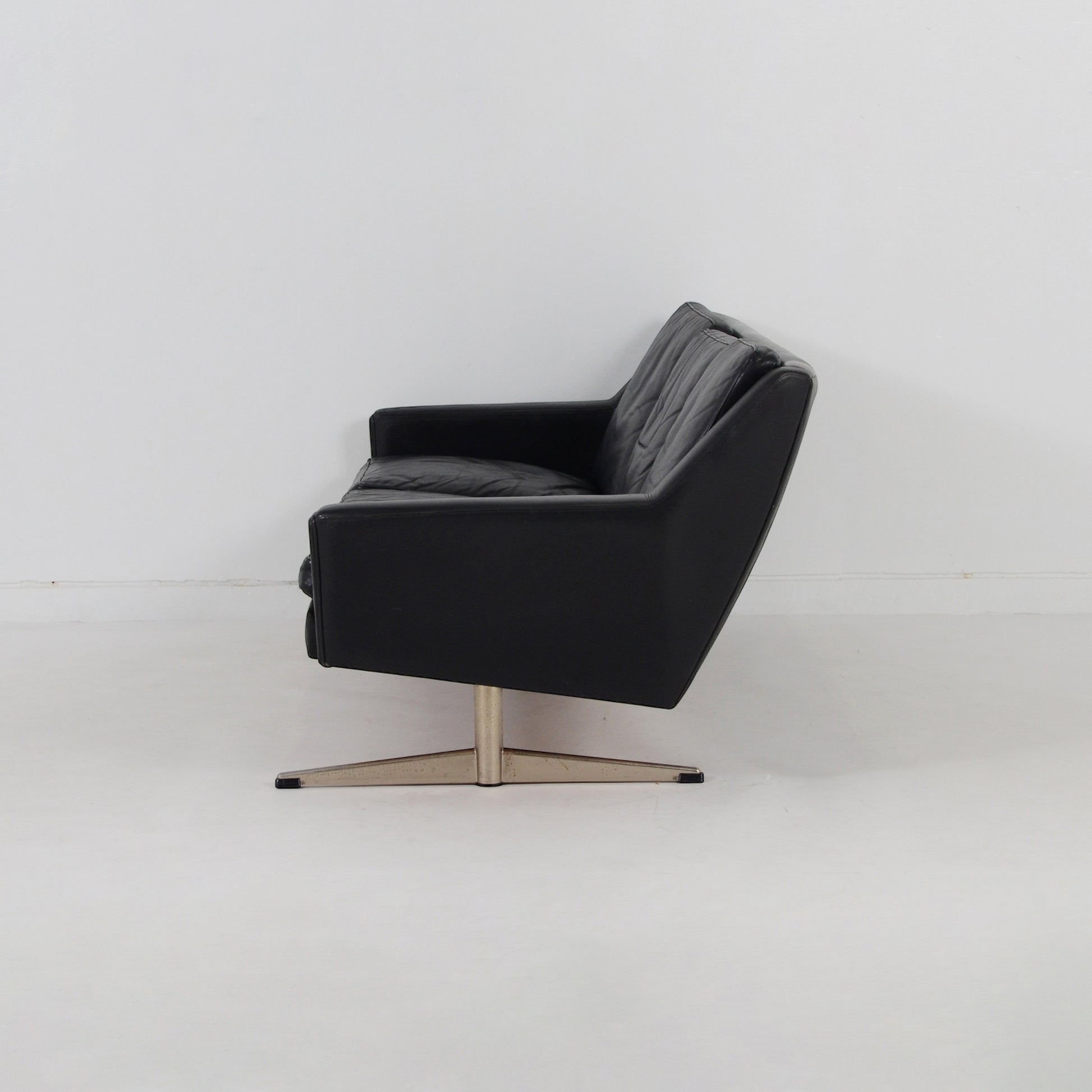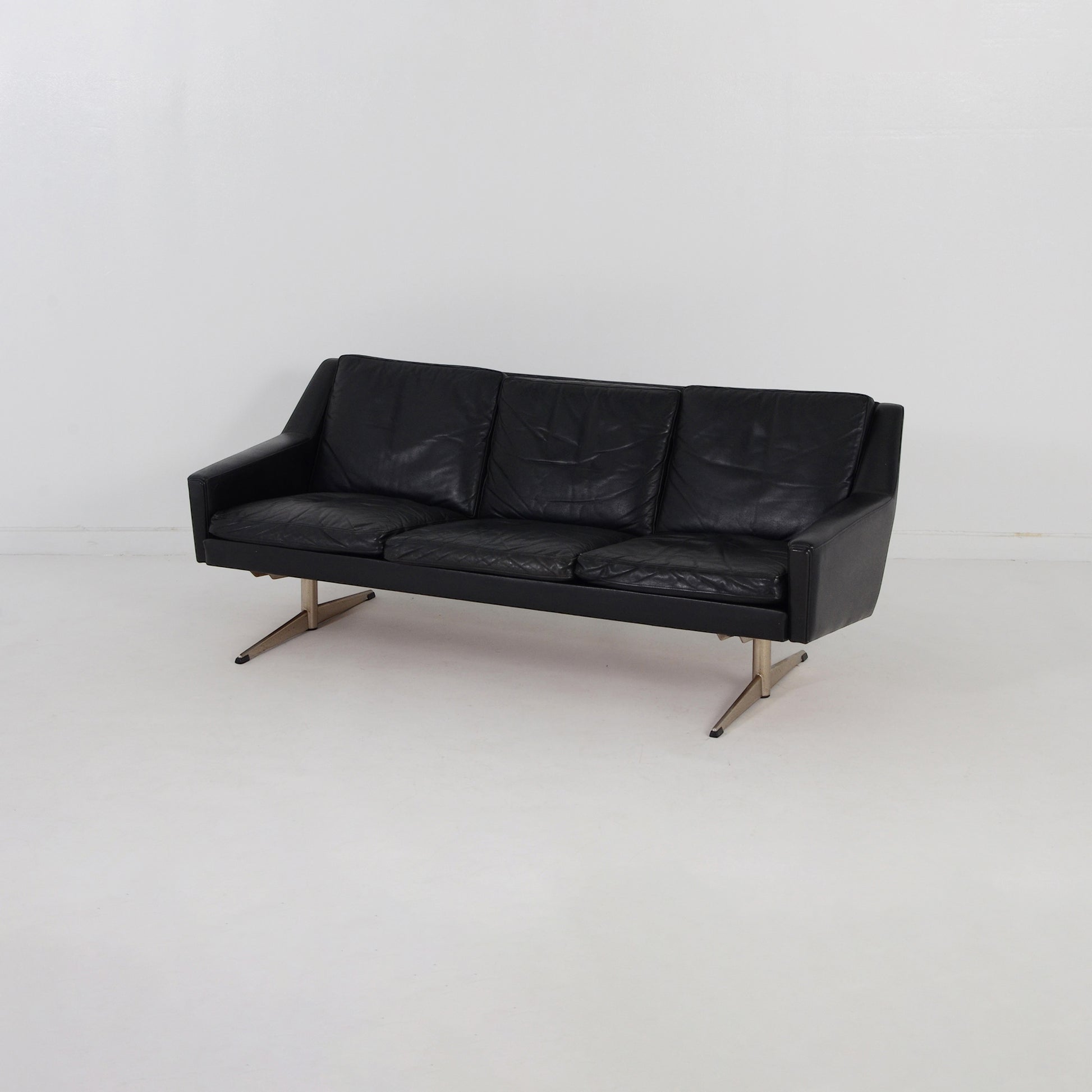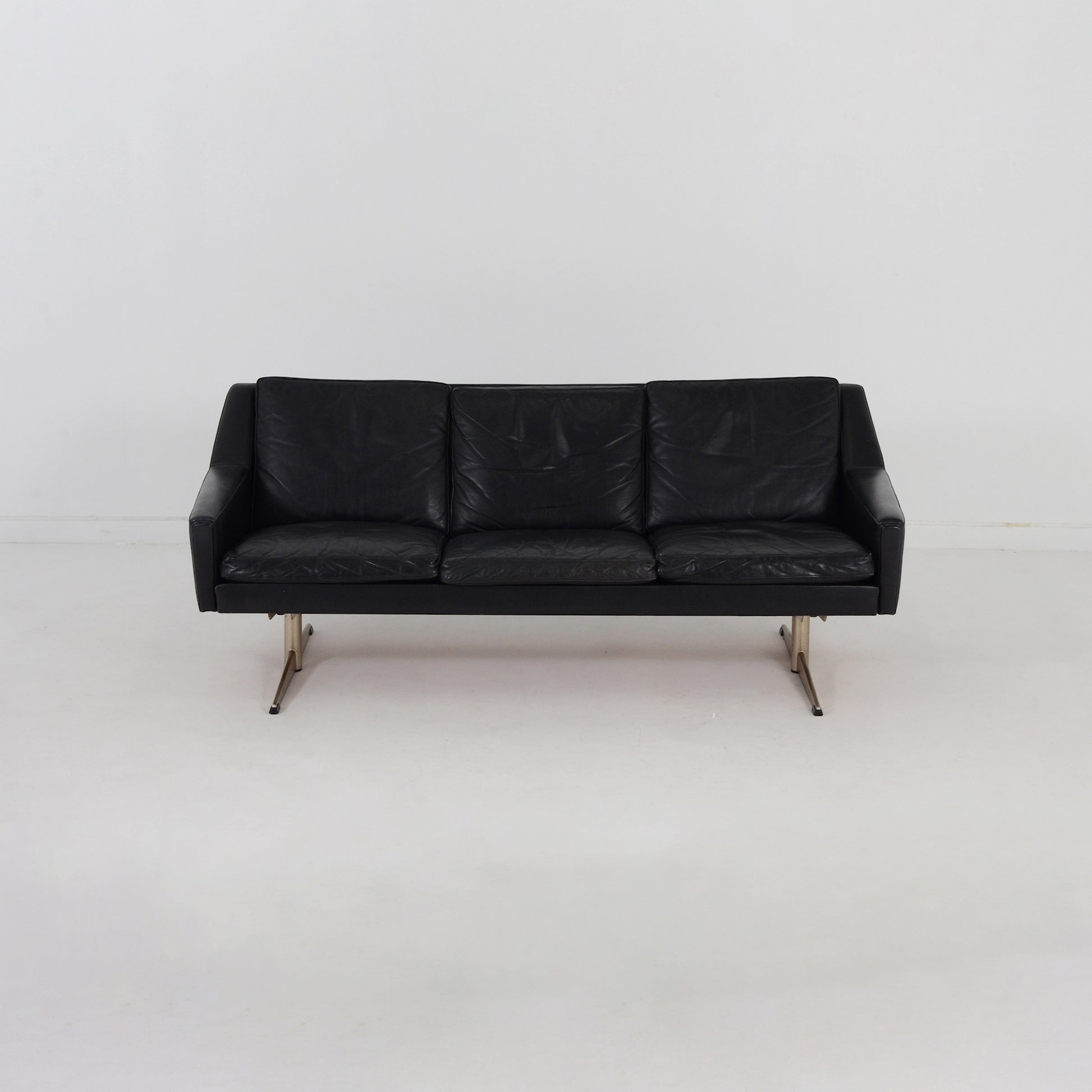 スカンジナビア風のエレガントなブラックレザーのソファです。