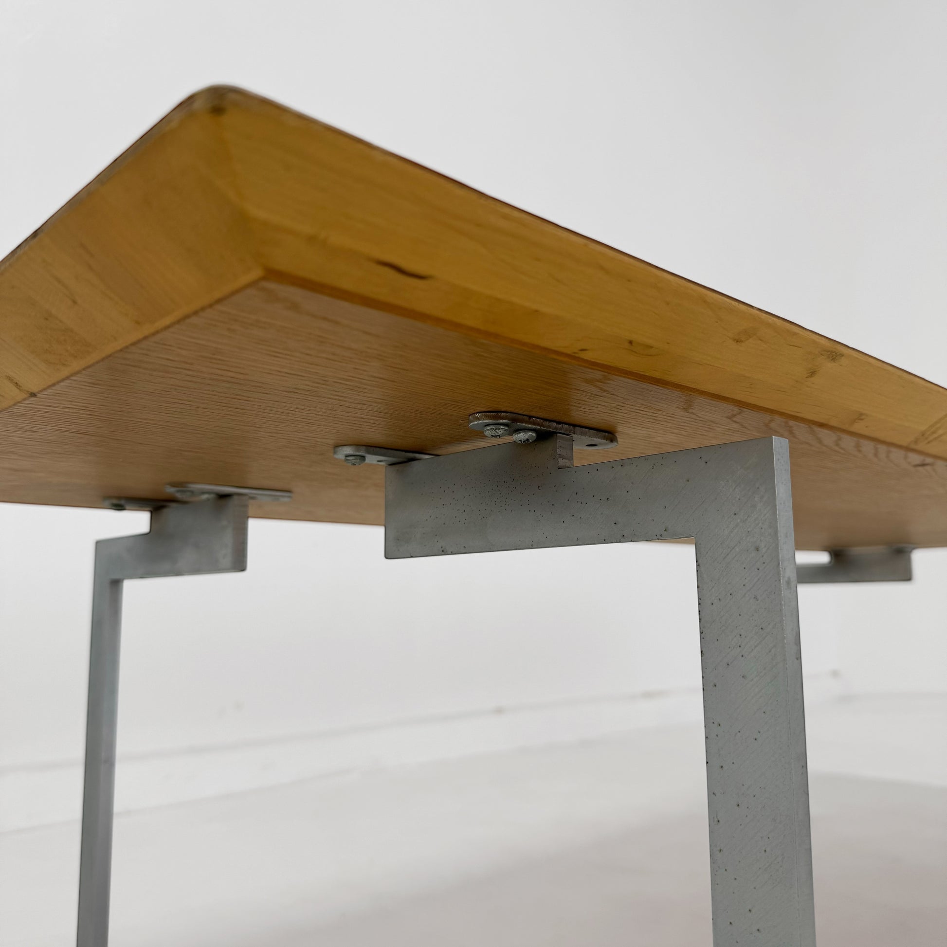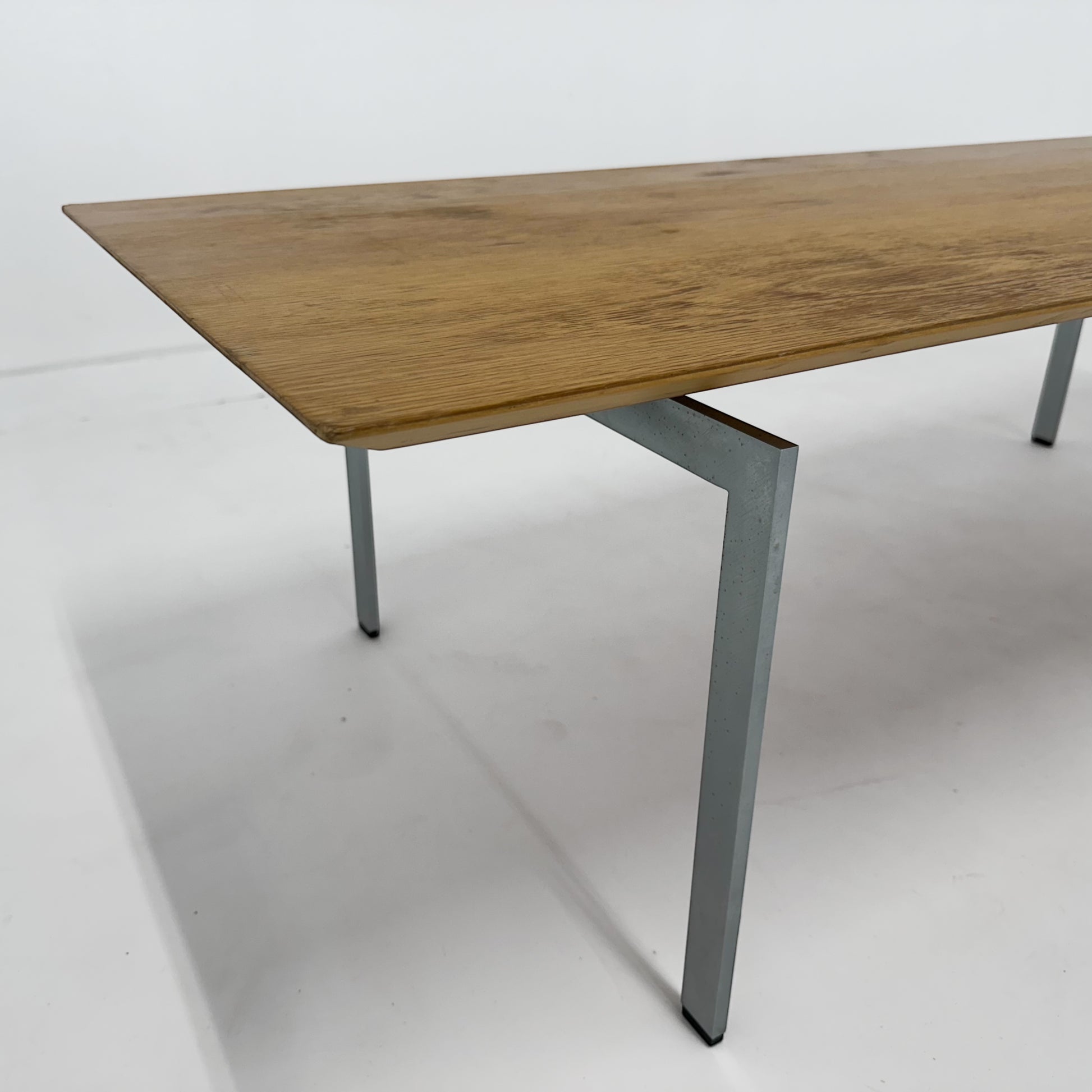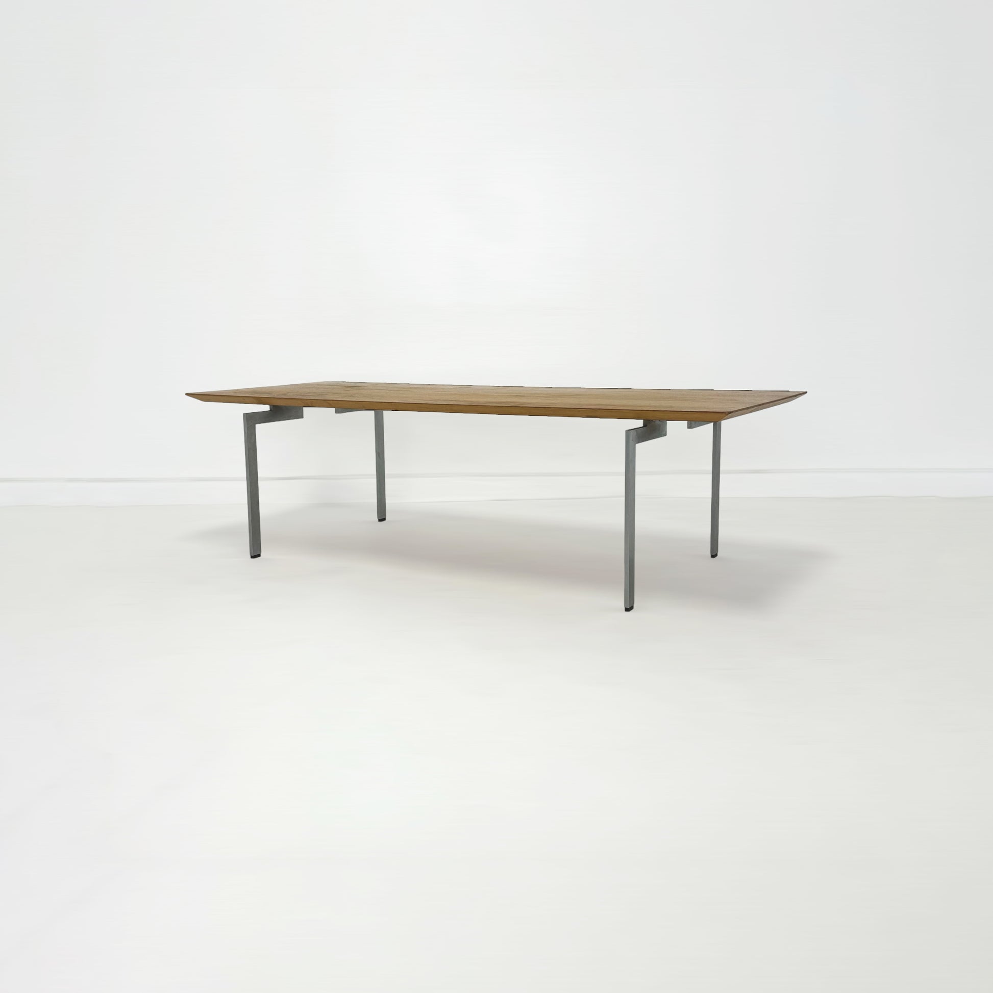 積層天板とシャープなスチール脚を組み合わせたシンプルなデザイン。浮遊感のある脚部が特徴的で、北欧家具らしい遊び心も取り入れています。