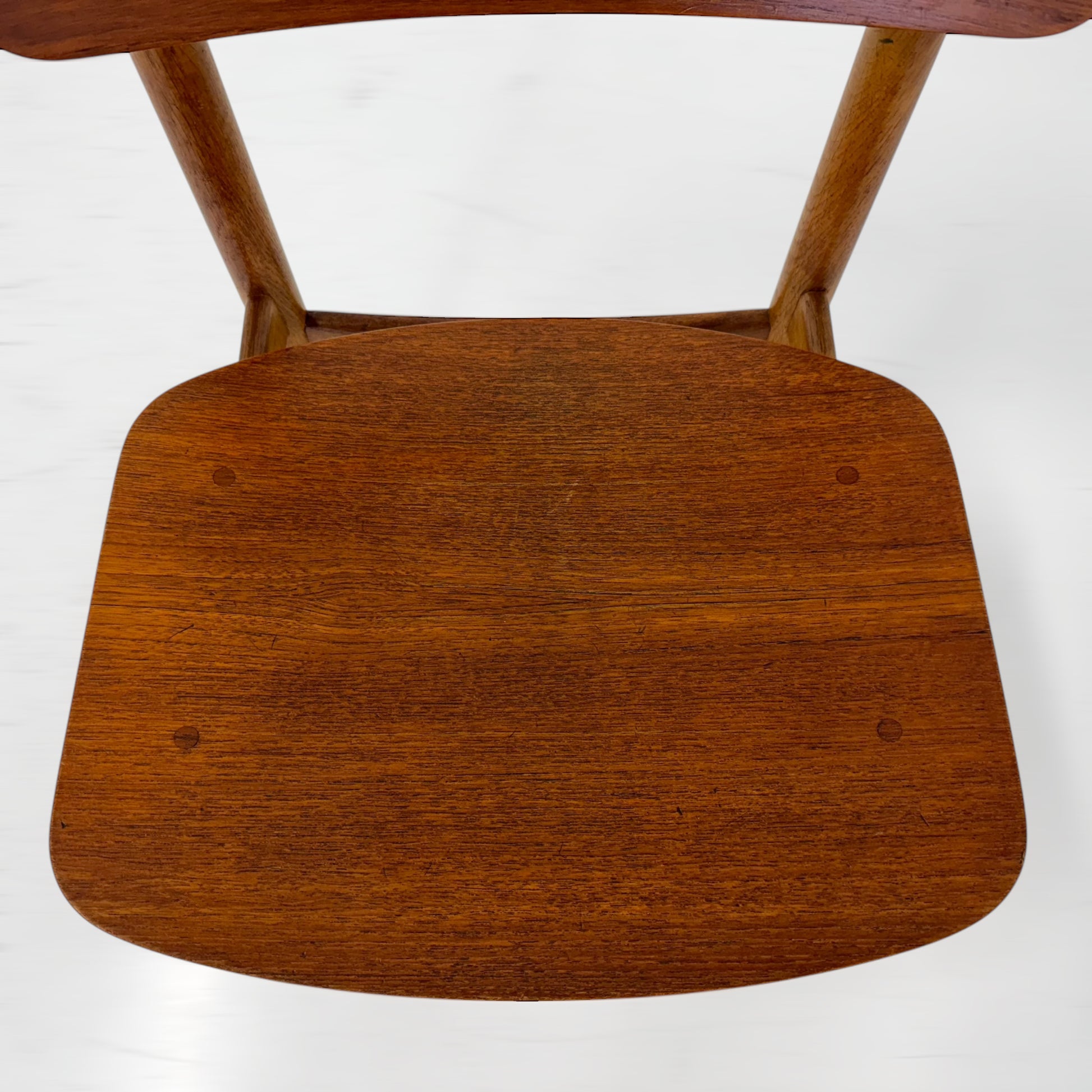 座面と背もたれはチーク材、脚部フレームはオーク材のコンビネーションの組み合わせで形成された、木の温かみが感じられるチェア。