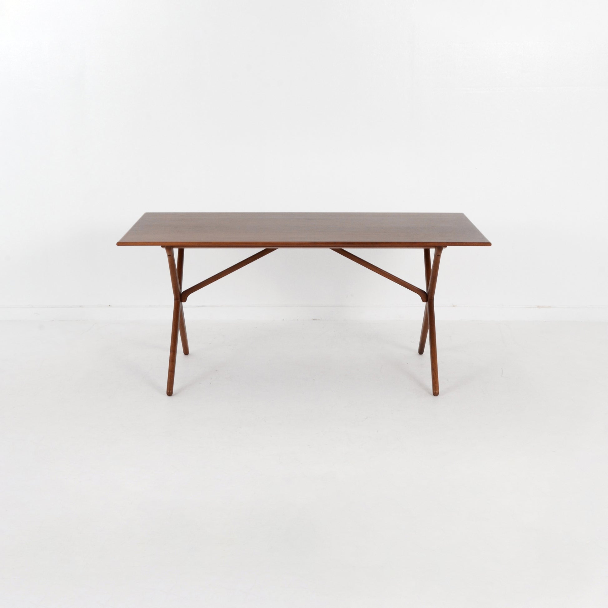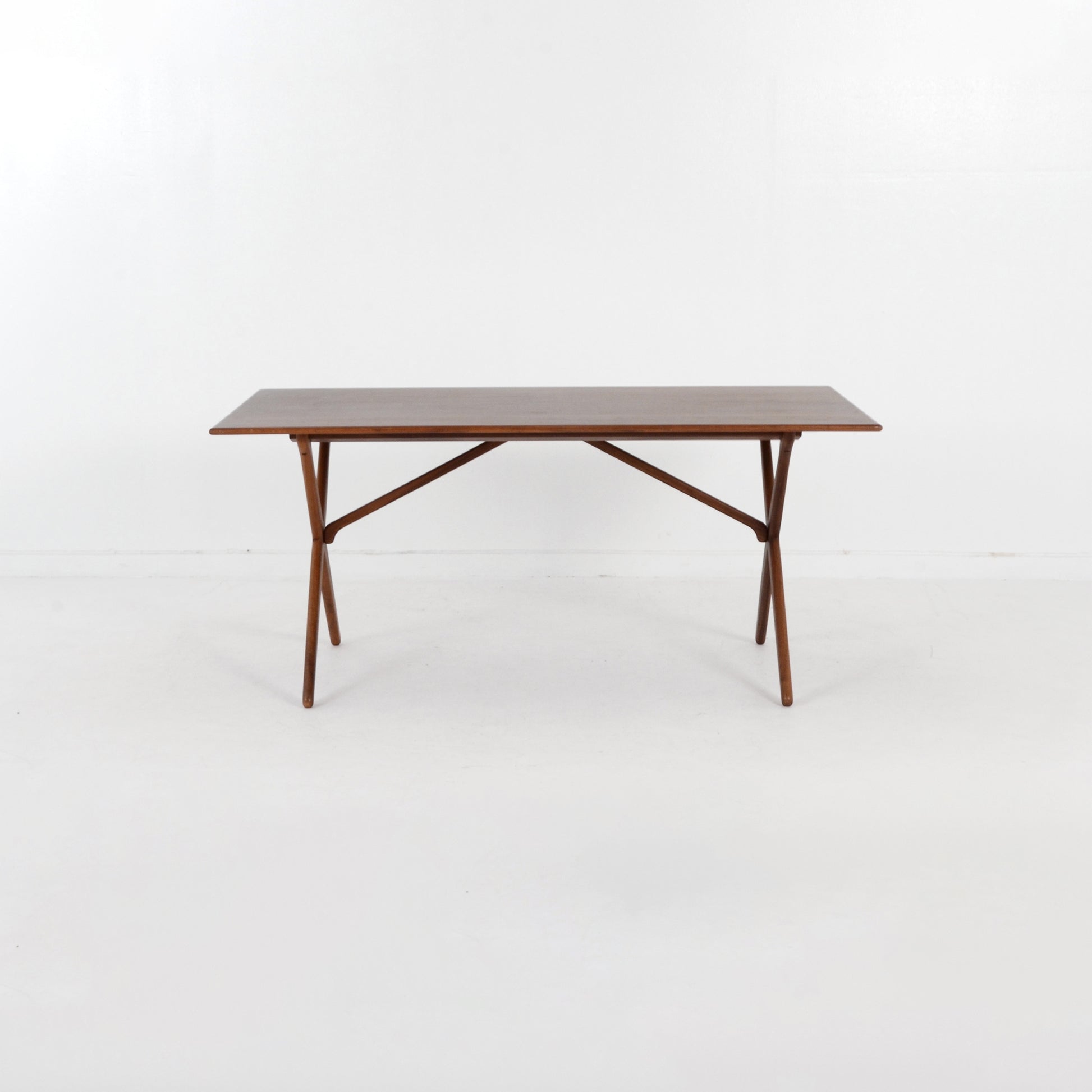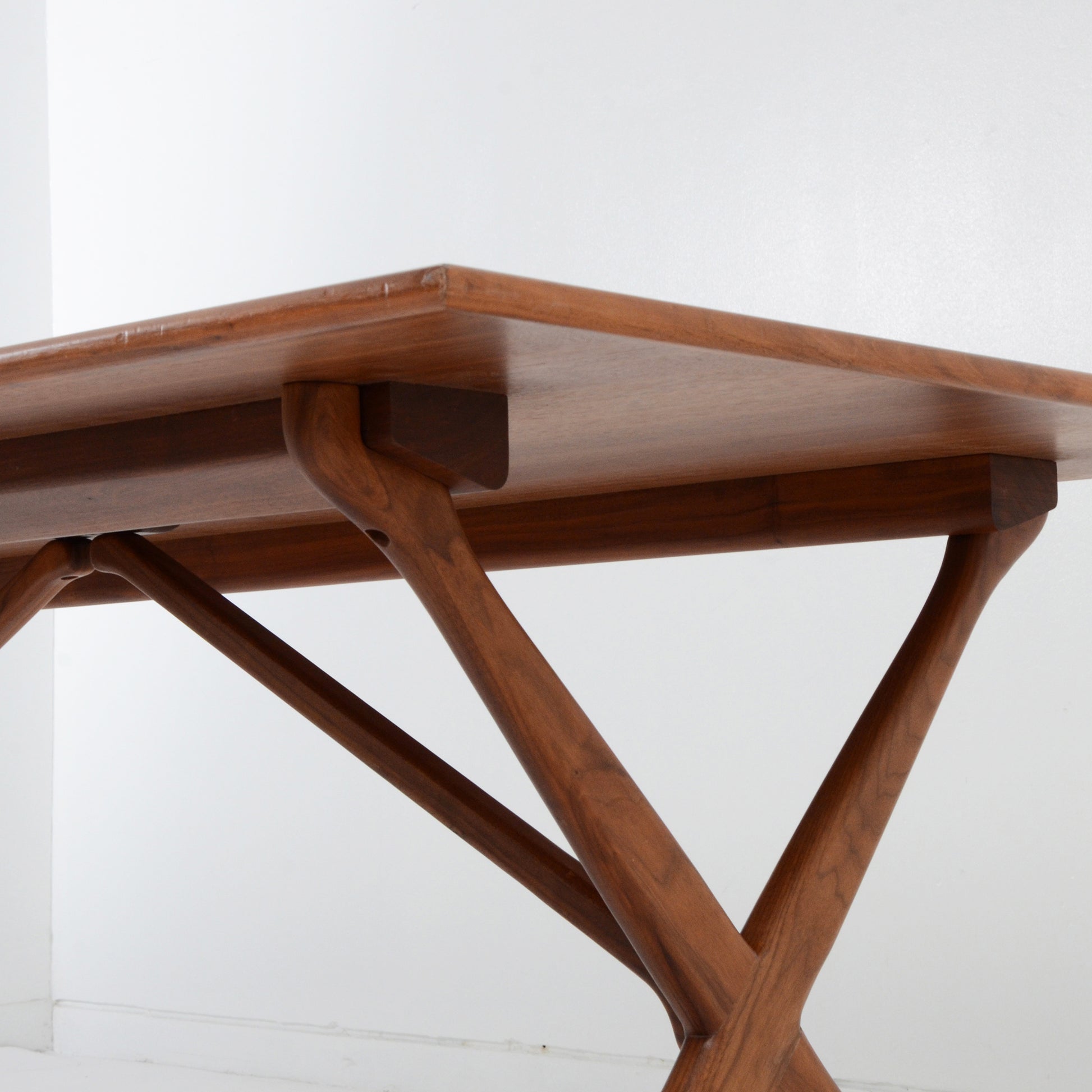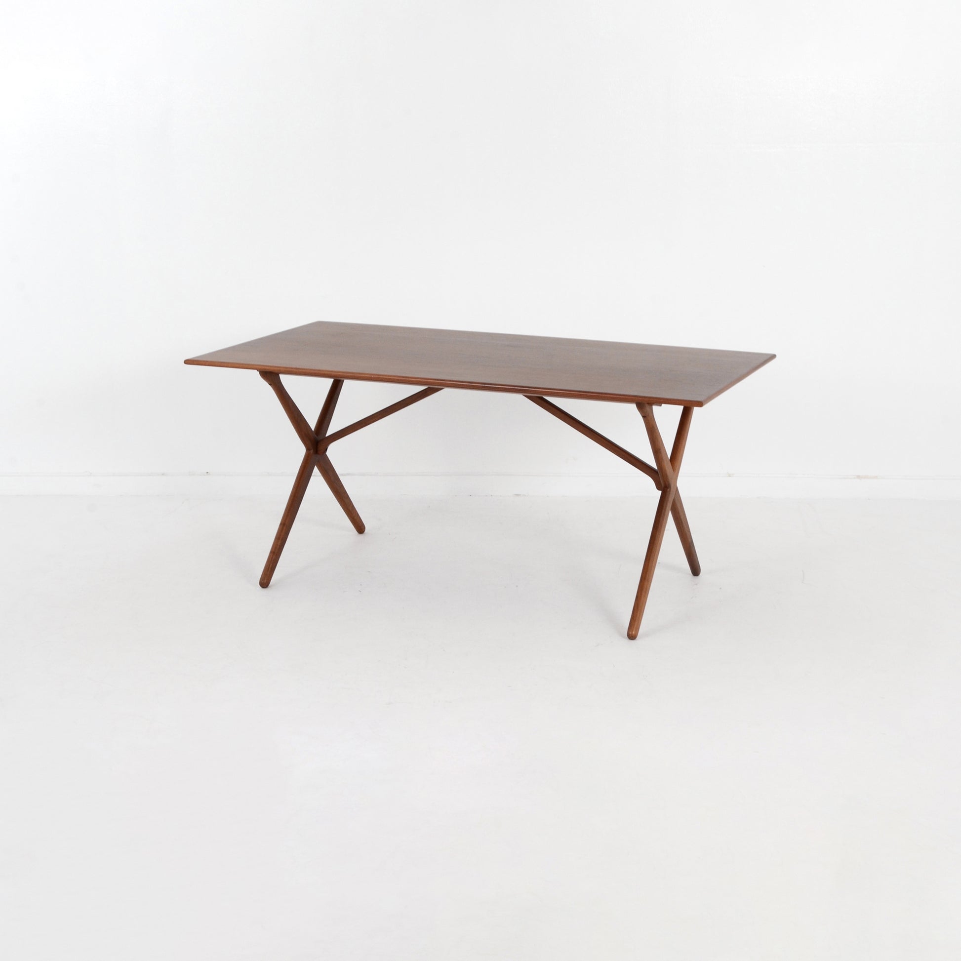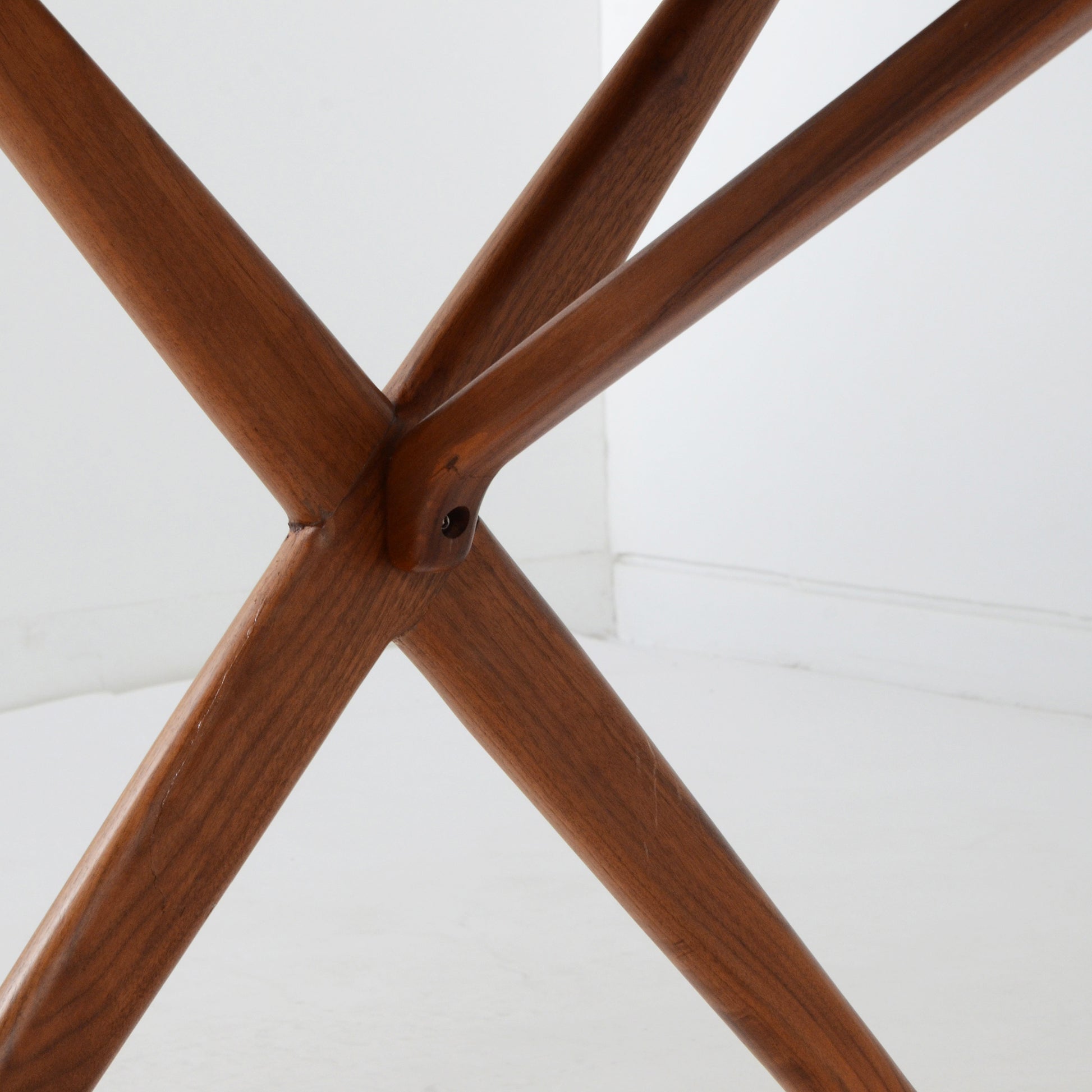 すっきりとしたクロスレッグの脚元が特徴のダイニングテーブル。