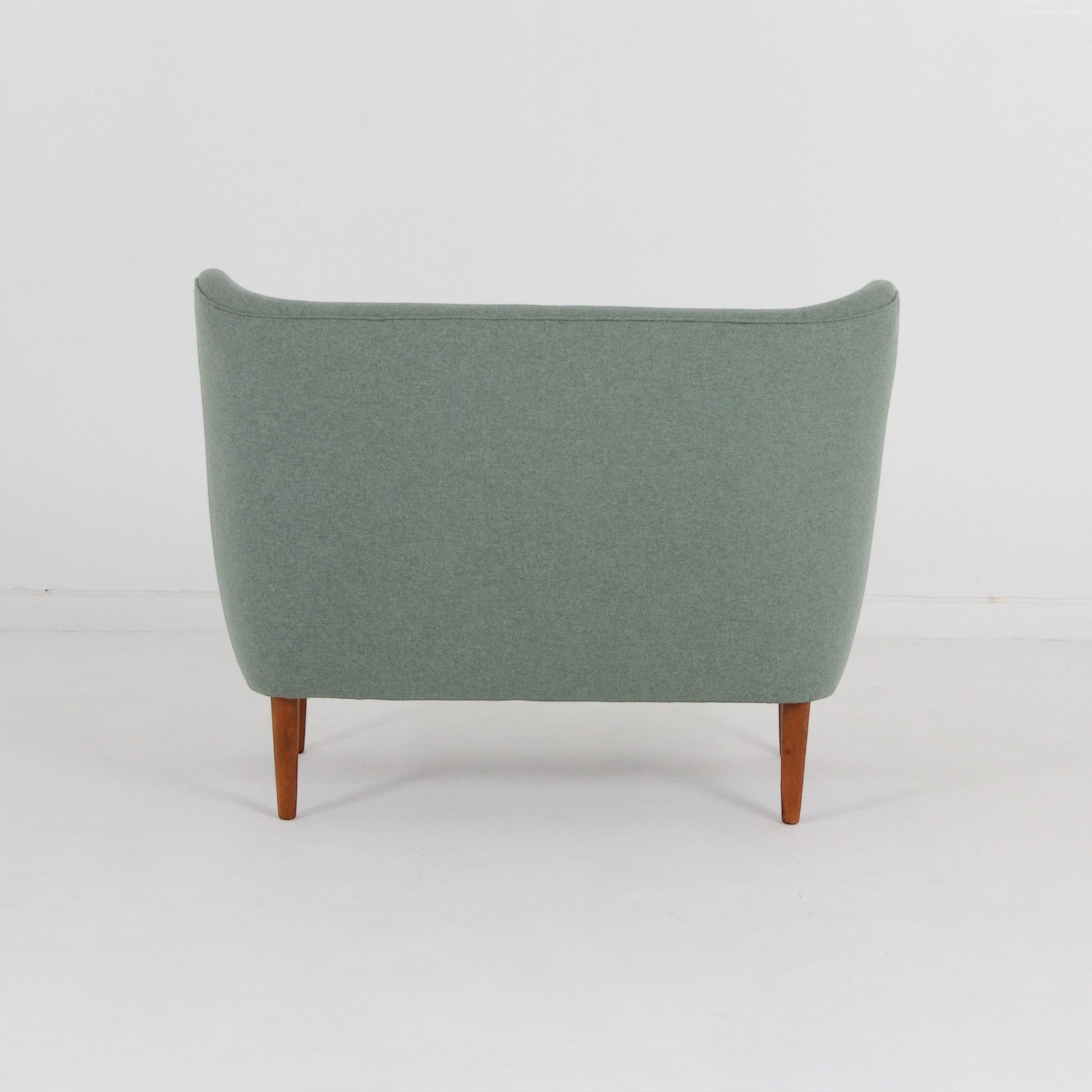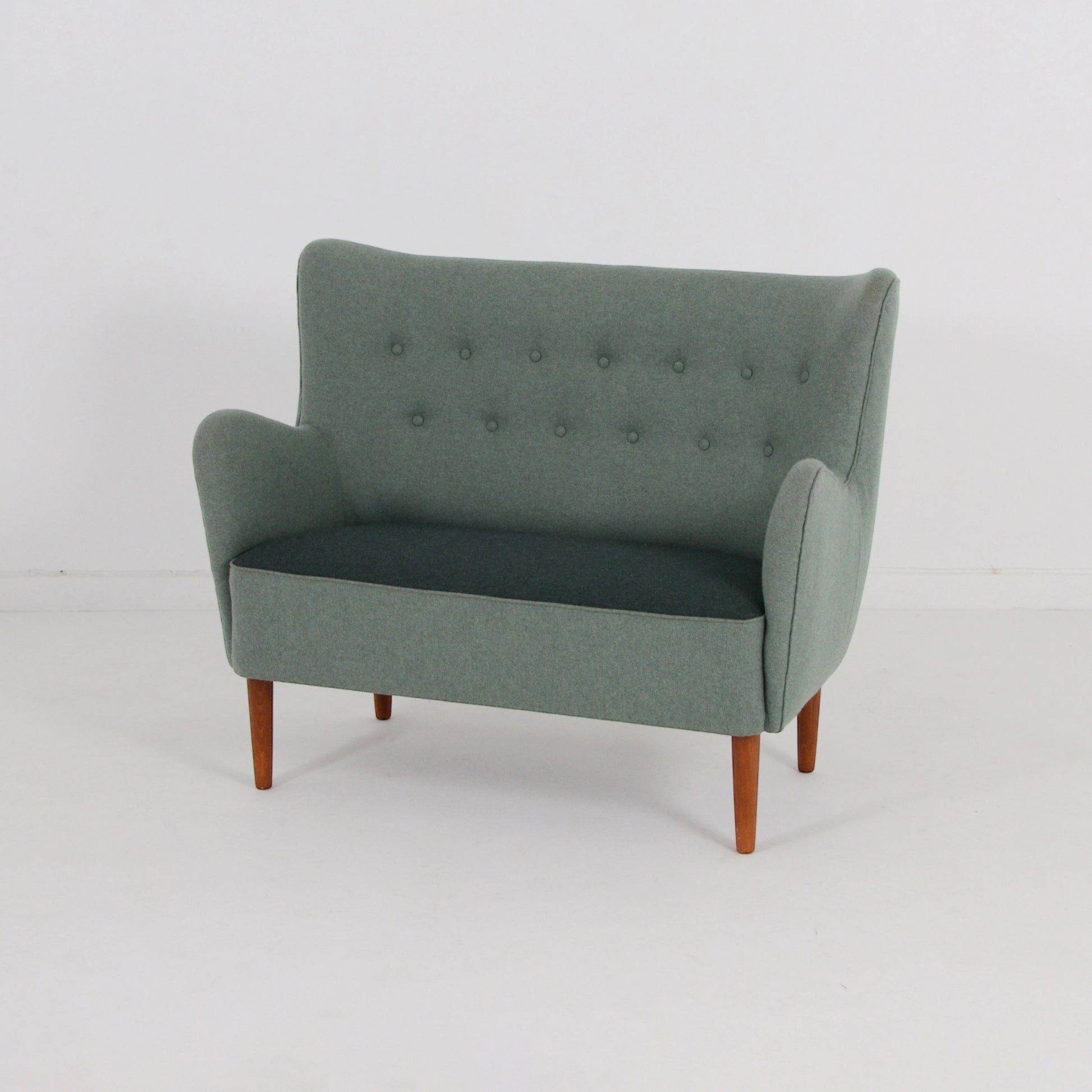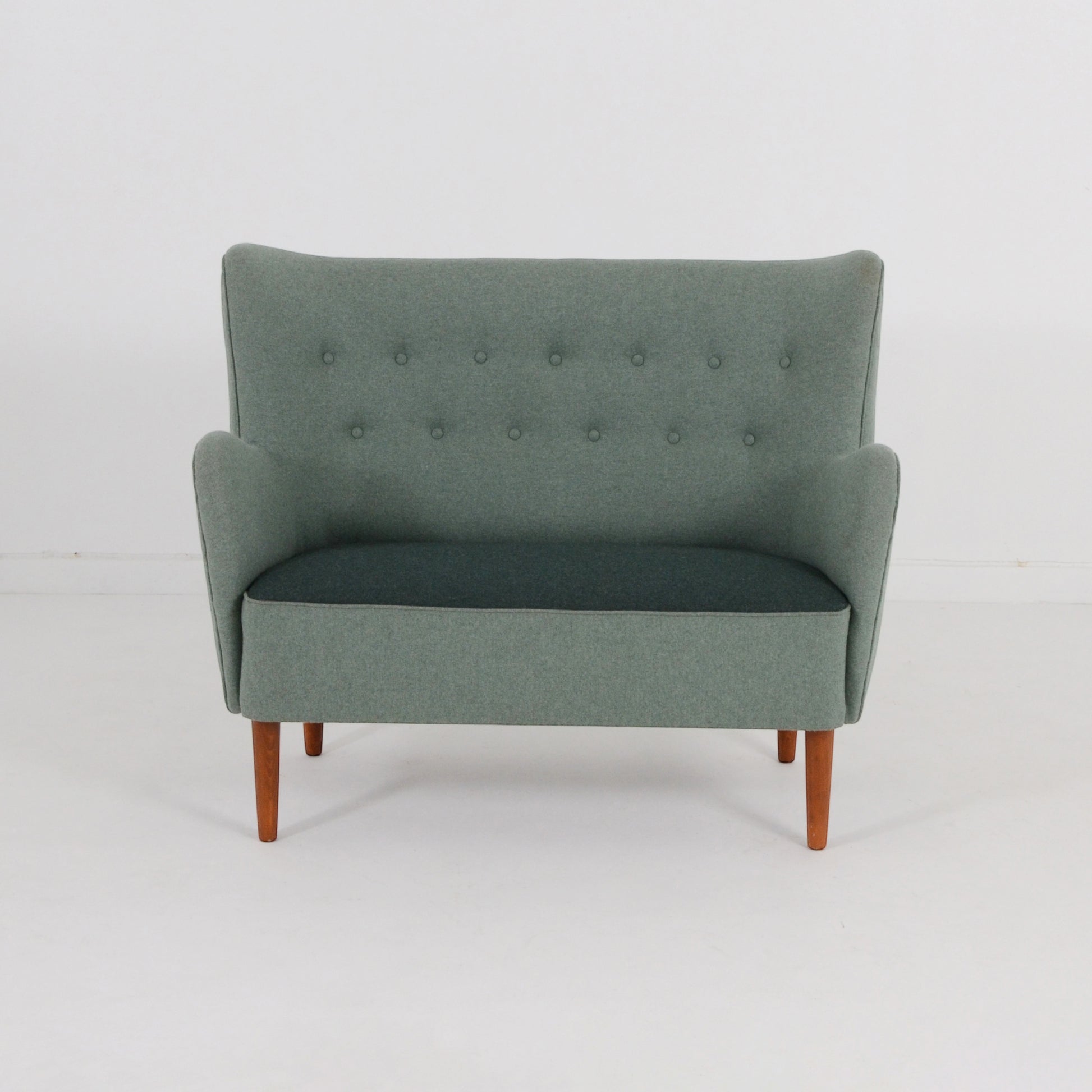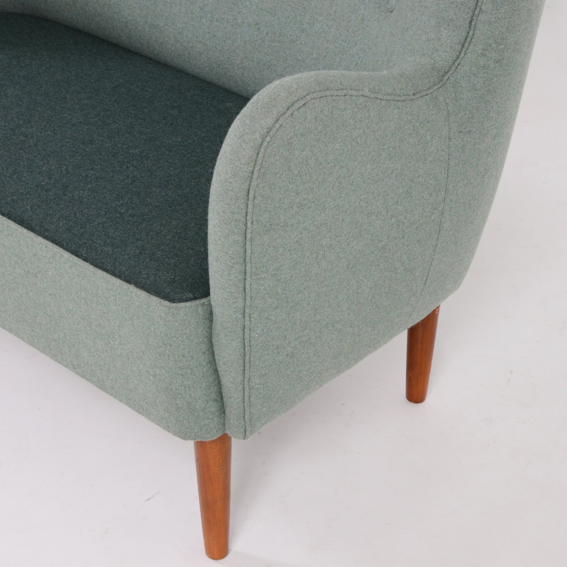 優しく穏やかな2トーンのグリーンの色味が印象深い2シーターソファ。