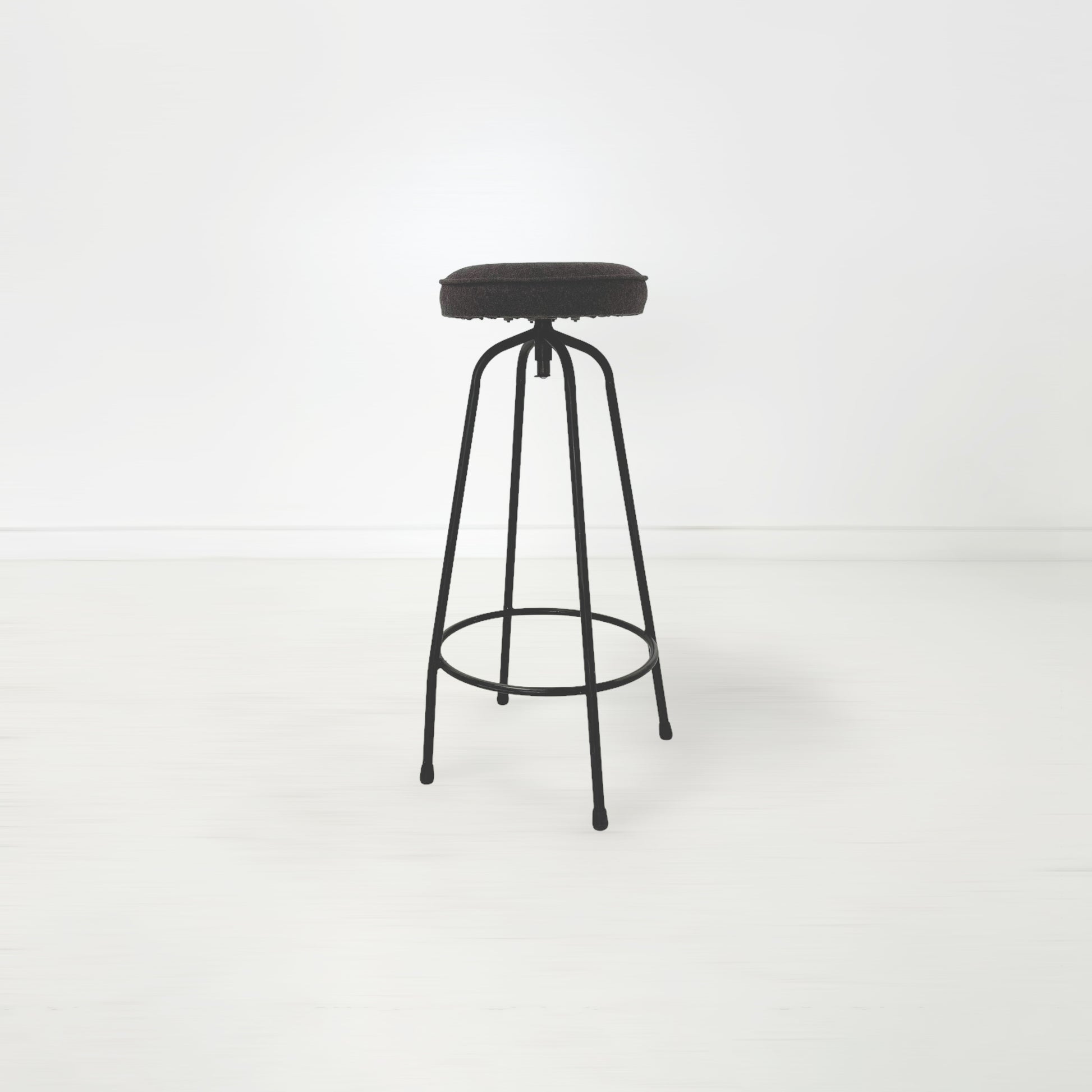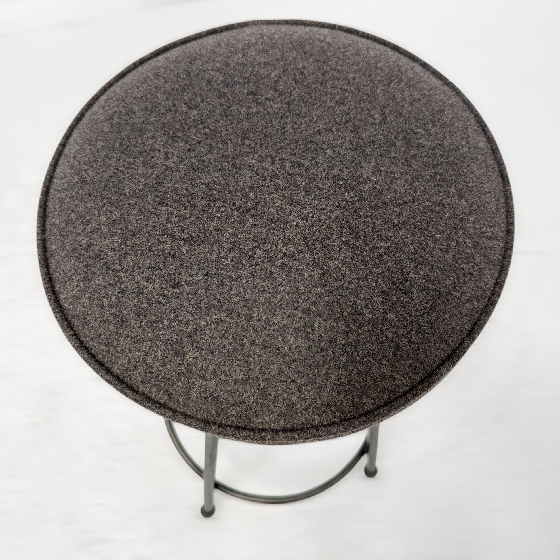 ウールの座面がほっこりかわいらしくもあり、スラっとした脚はスタイリッシュで、シーンに応じて表情を変えてくれそうなバースツール。