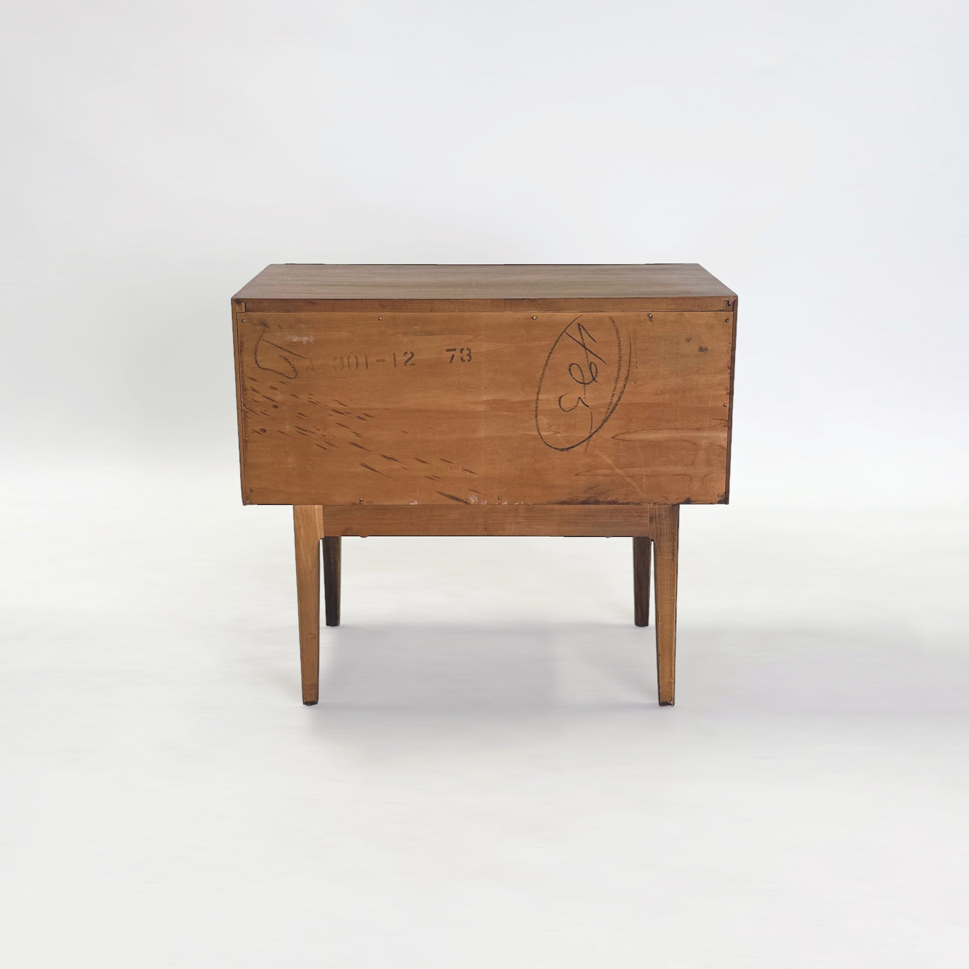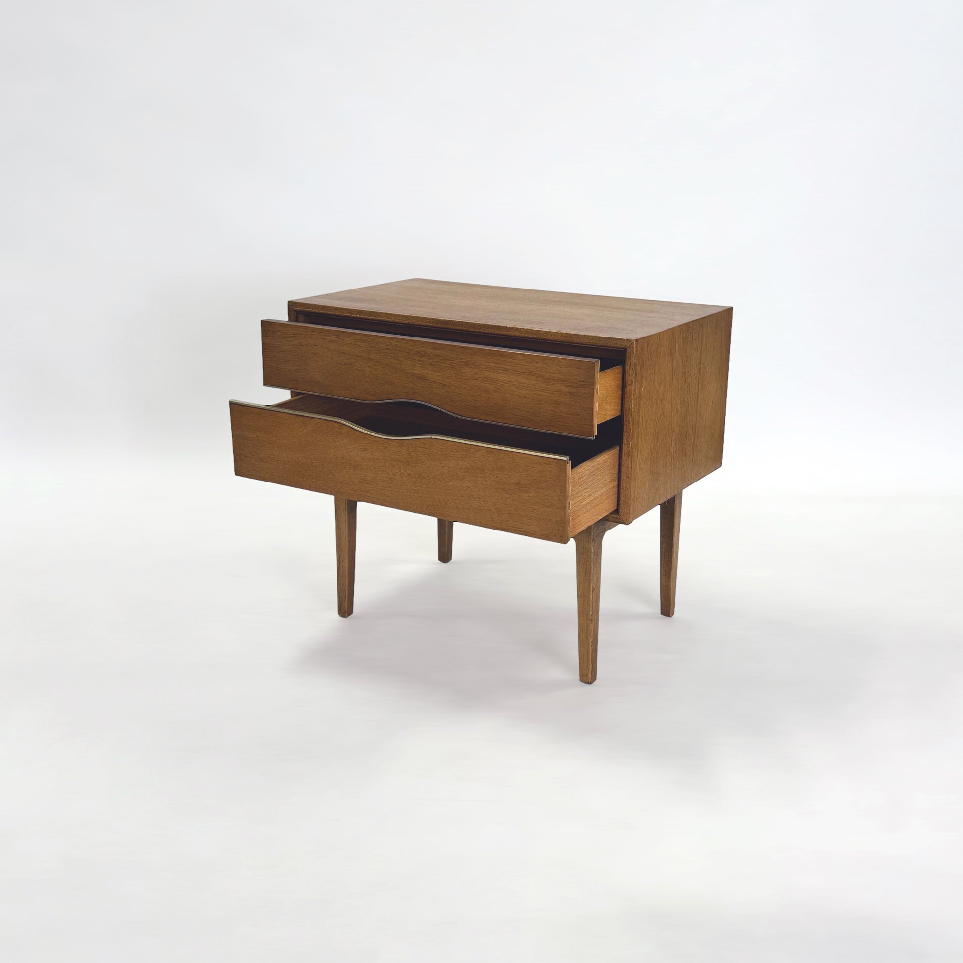 ぱくっと口を開けたような引き出し部分が印象的な、アメリカ シカゴのVignola Furniture社製のナイトスタンド。
