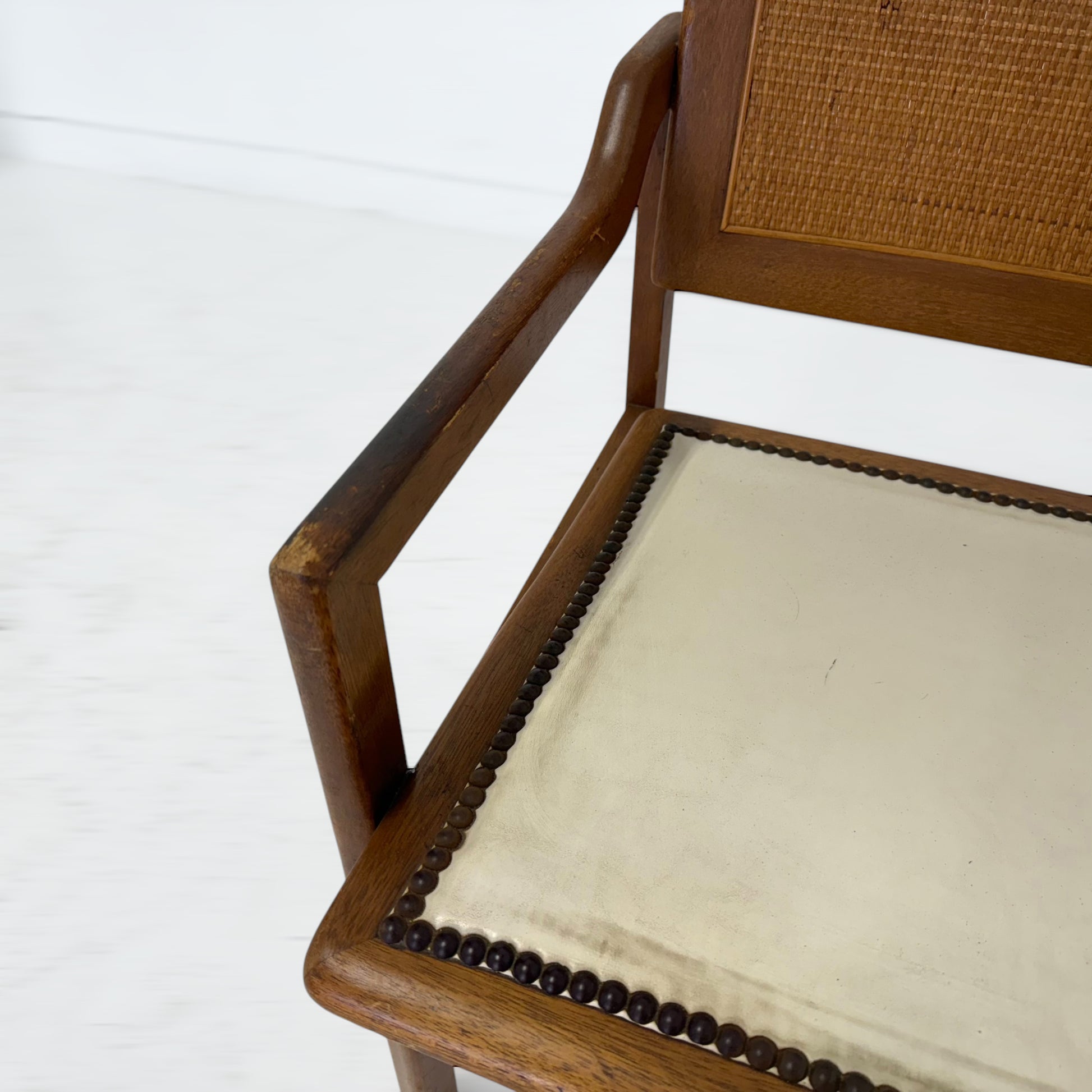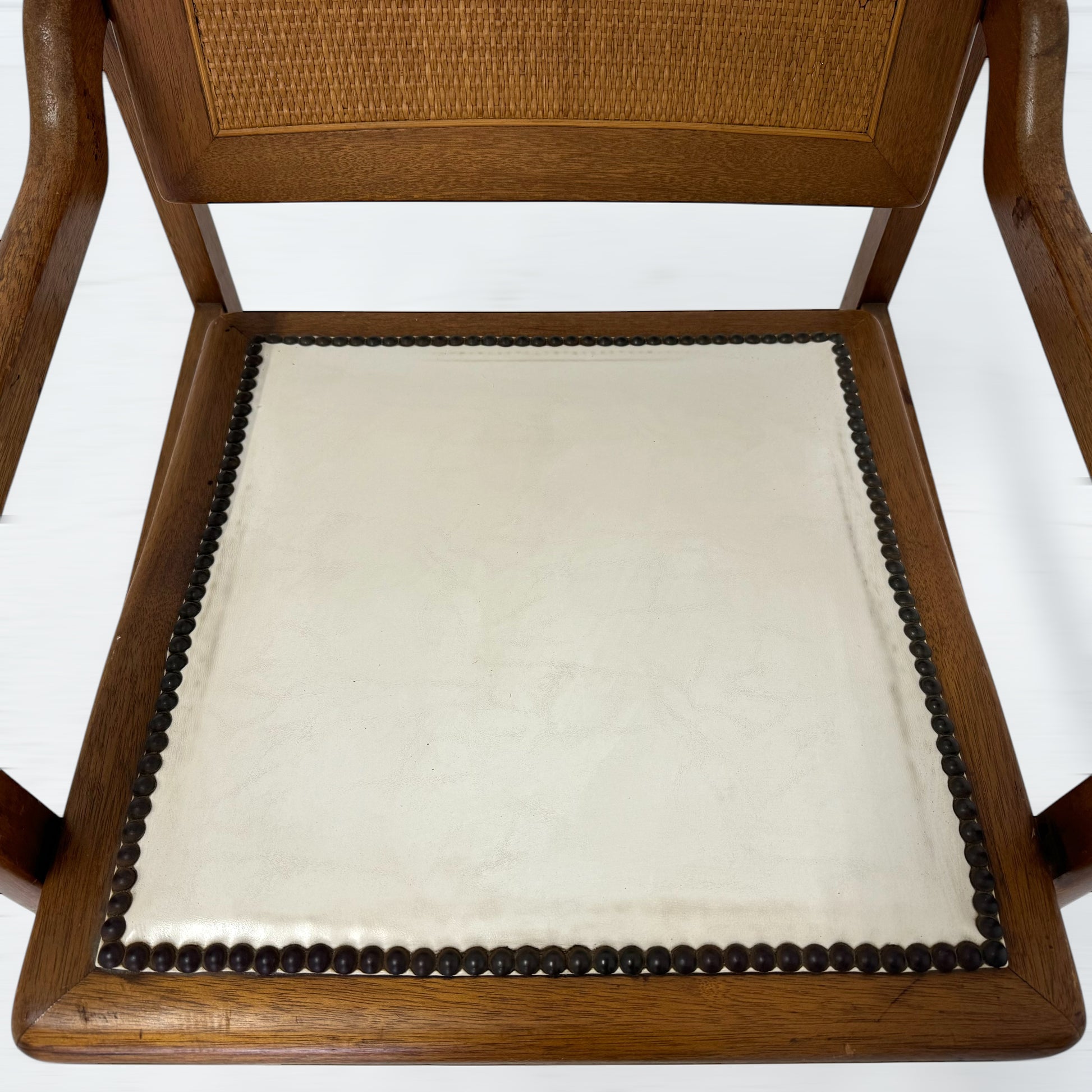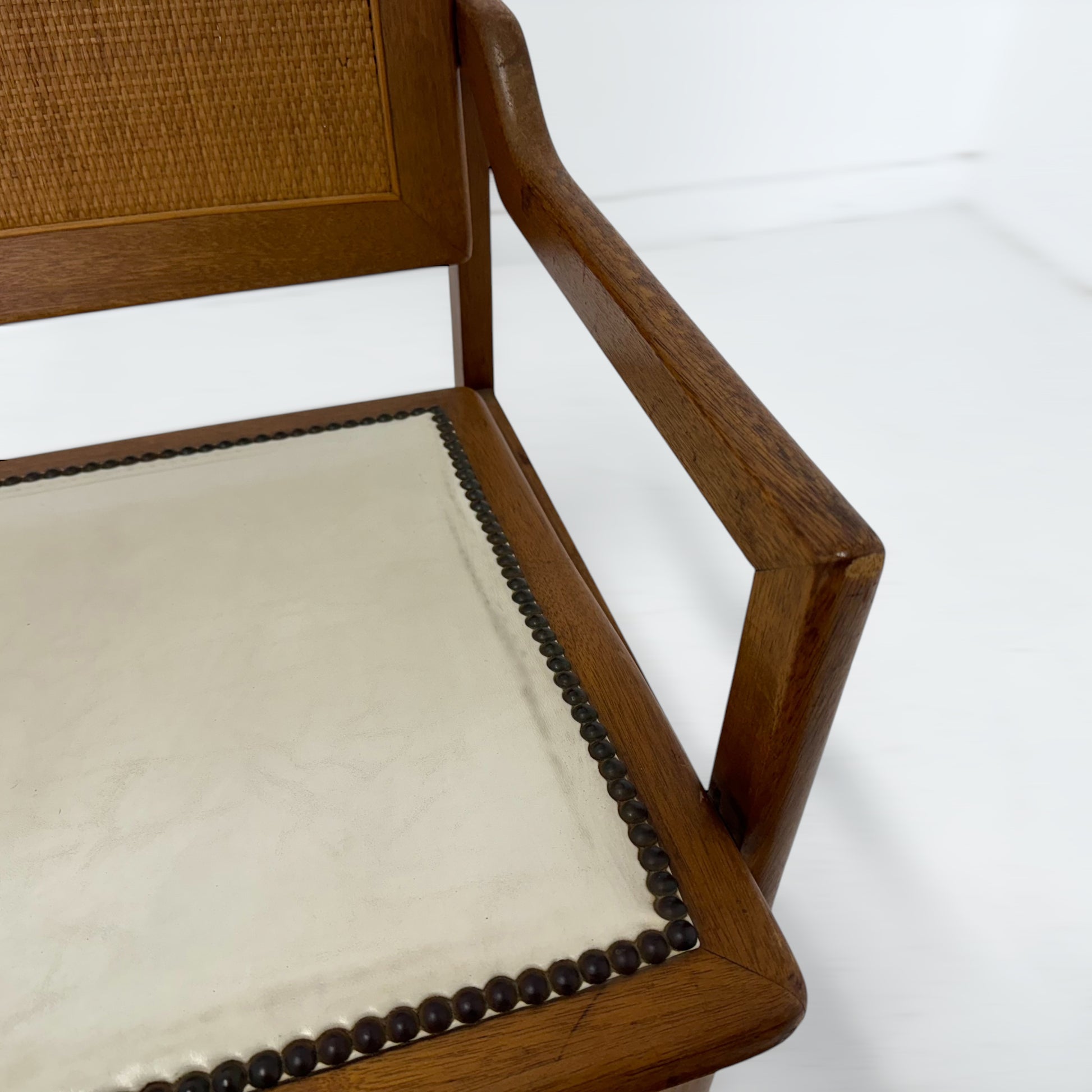 座面にホワイトレザーが使用されており、滑らかな手触りと美しい光沢が魅力です。