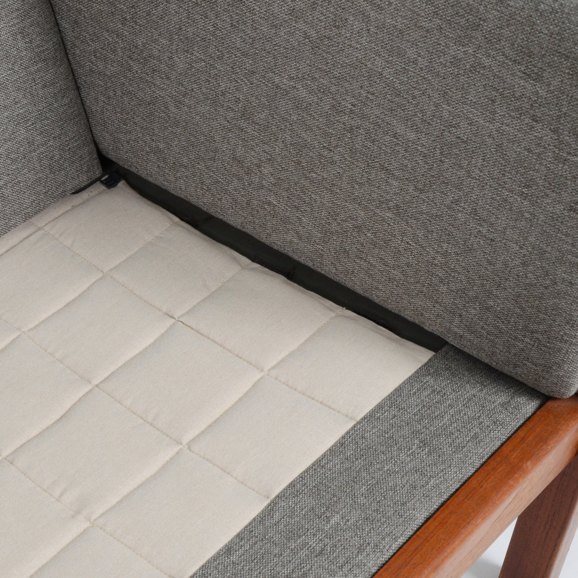 座面下のフレームはビーチ無垢材を使用しており、しなりが効いているので座った時の体圧分散を高め、ソファ自体の耐久性も向上させております。北欧スタンダードなシルエットも魅力的。
