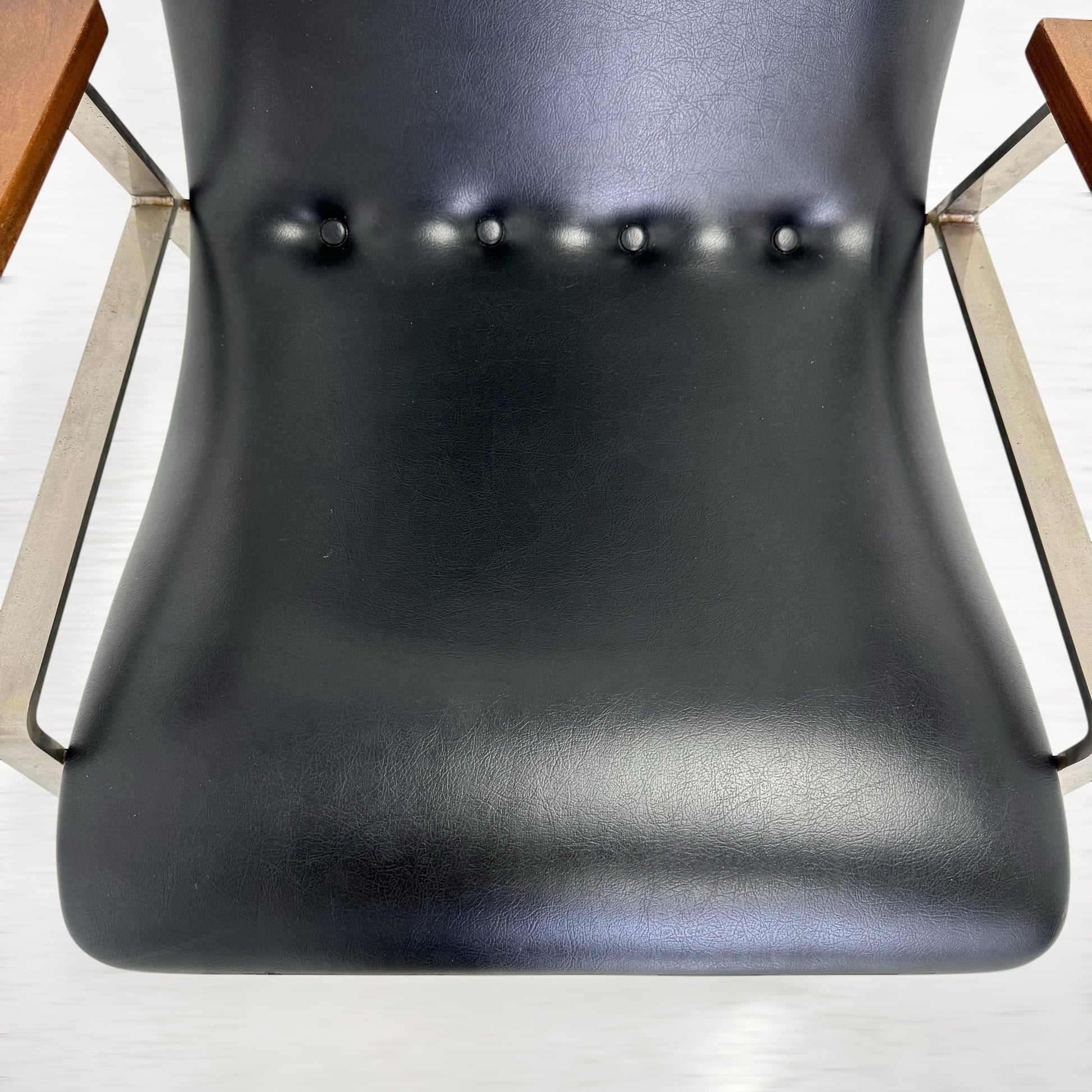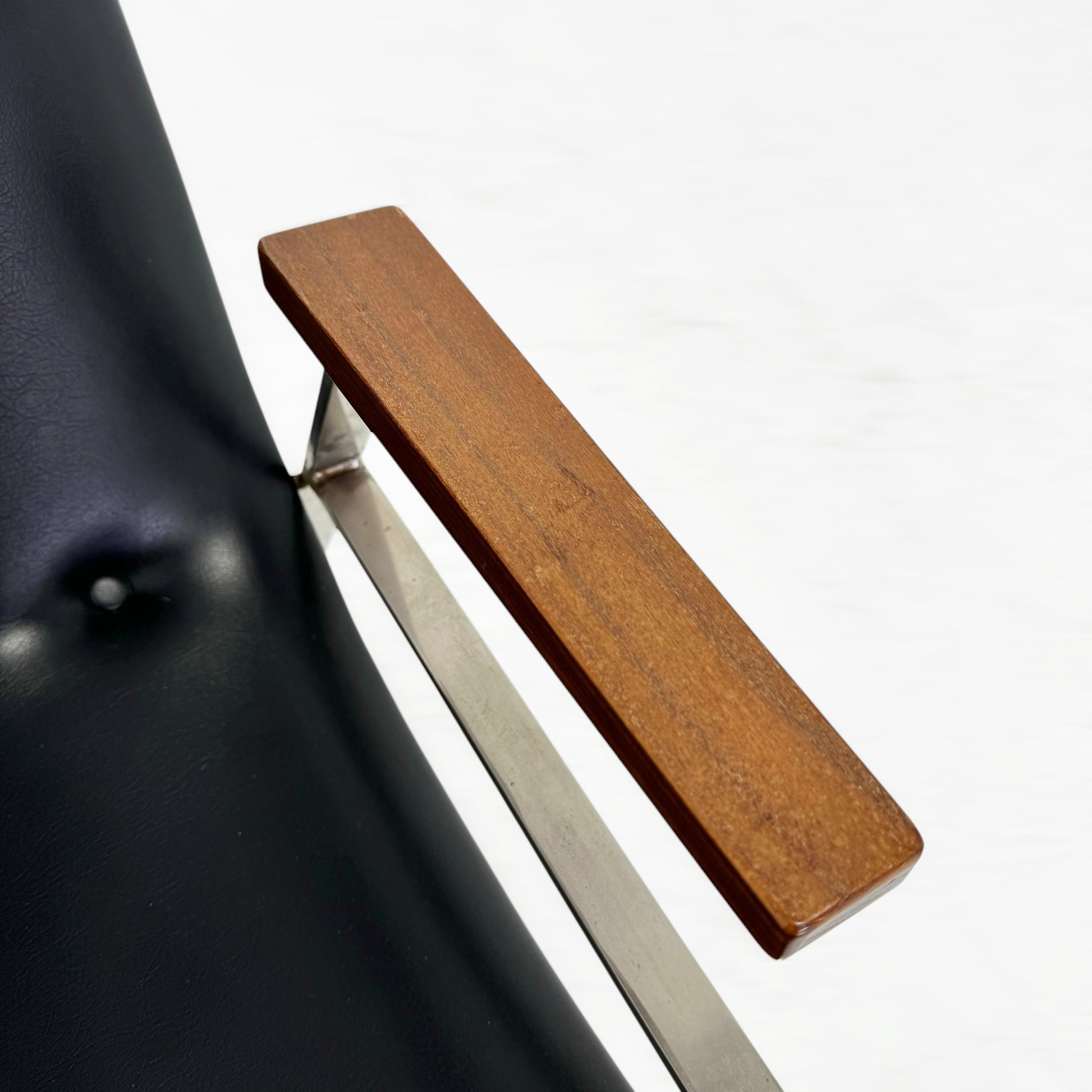スチール、レザー、ウッド・・・異素材の持つそれぞれの魅力を最大限に引き立てながら、モダンなデザインでまとめ上げたチェア。