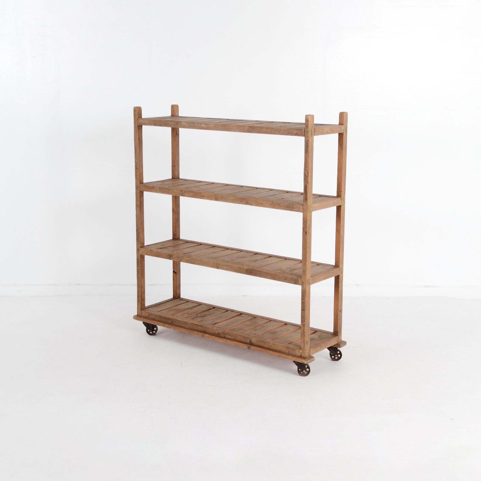 木肌が素朴な味わいのナチュラルなオープンシェルフ。