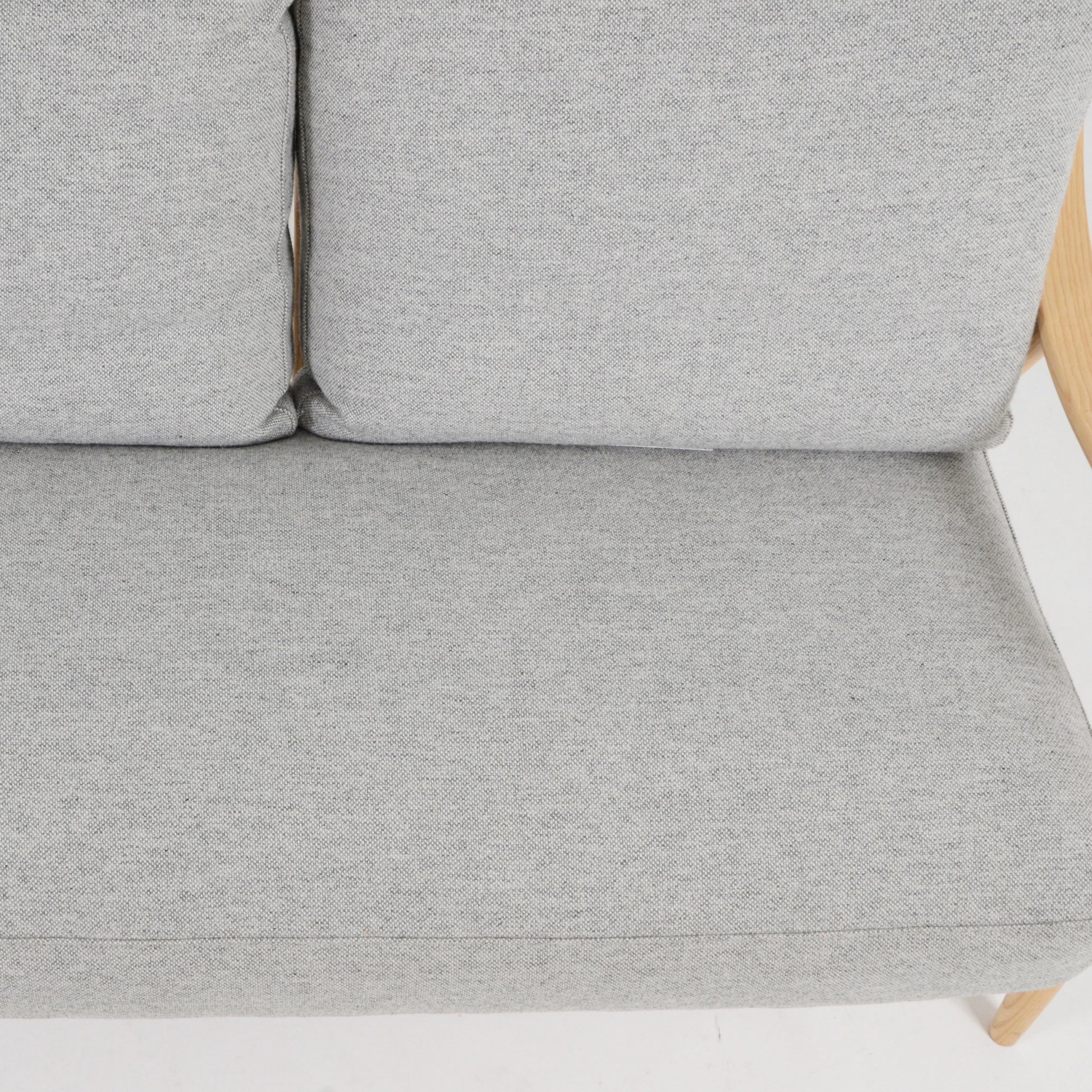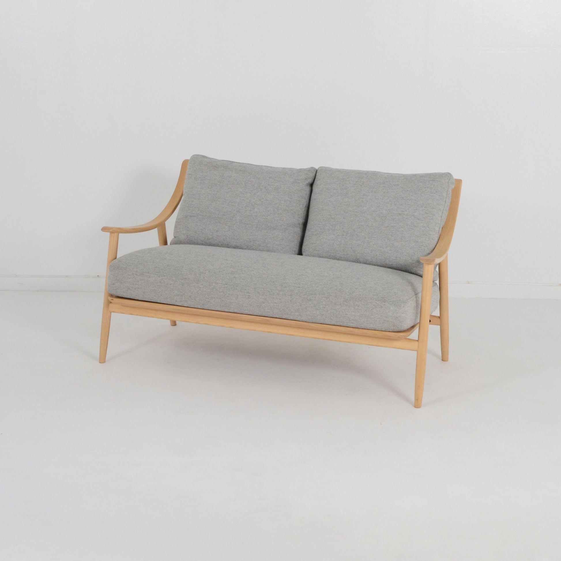 背からアームへと伸びる曲線が印象的な2人掛けソファ。