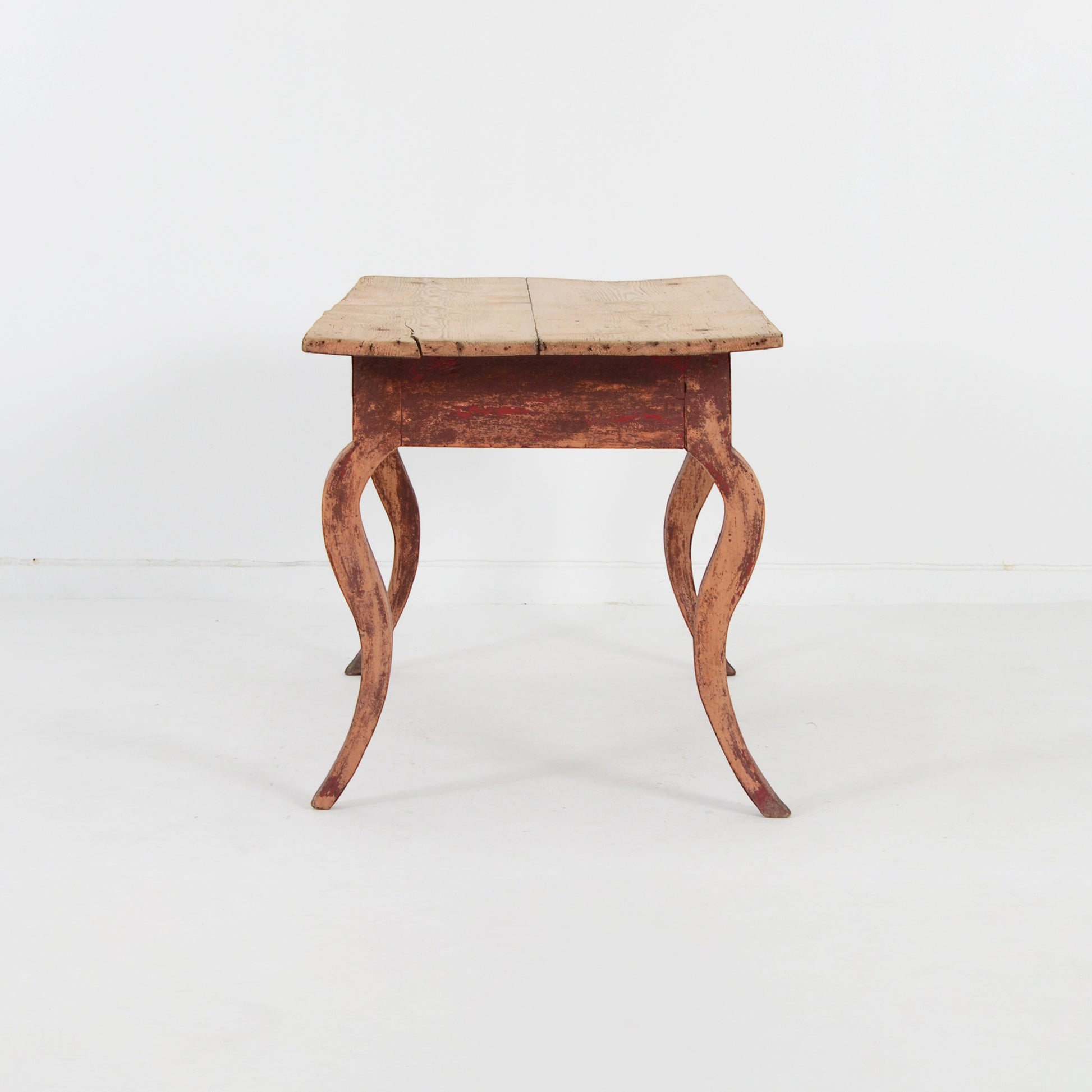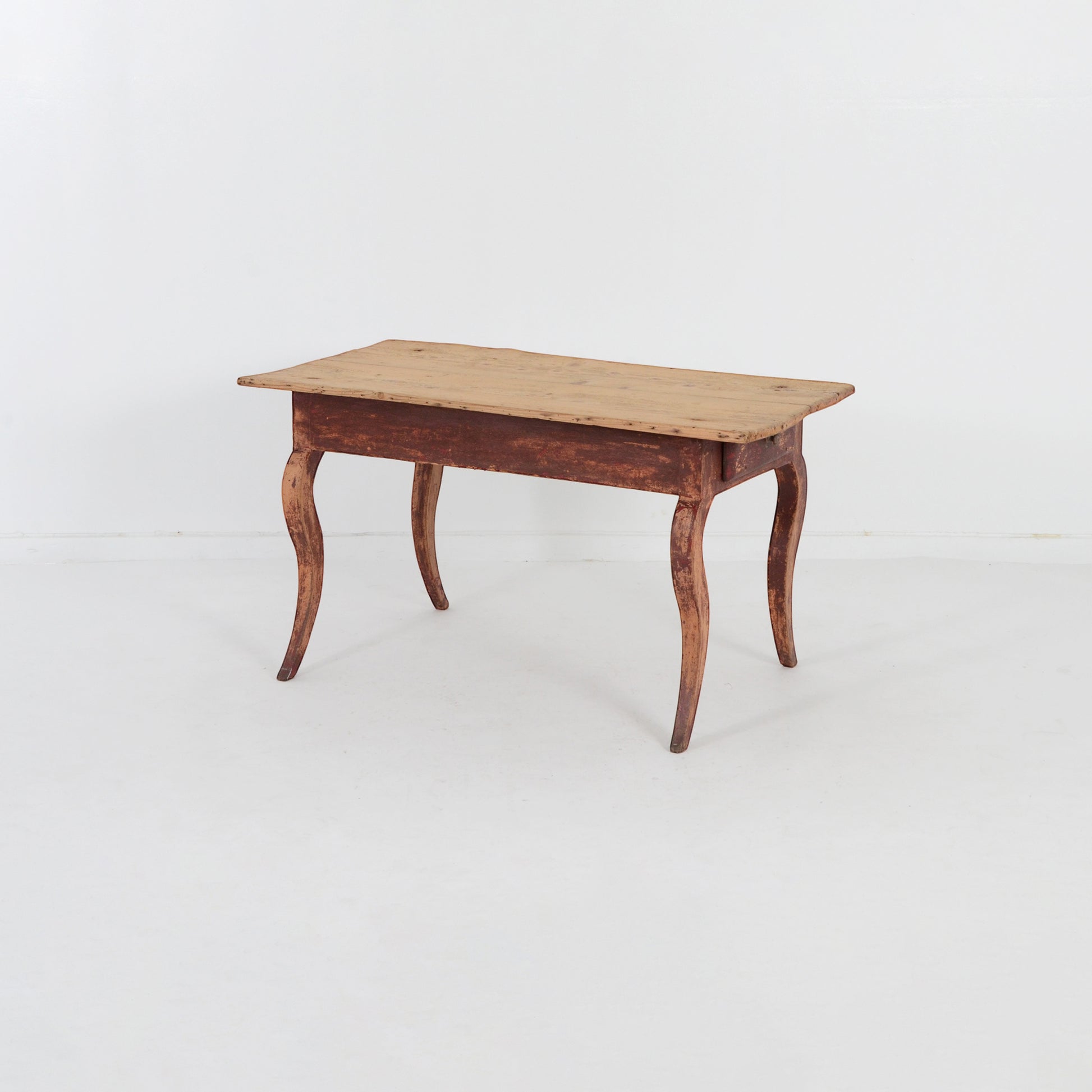 ナチュラルな木肌を生かした天板に、ゆらりとした動きのある脚が印象的なテーブル。