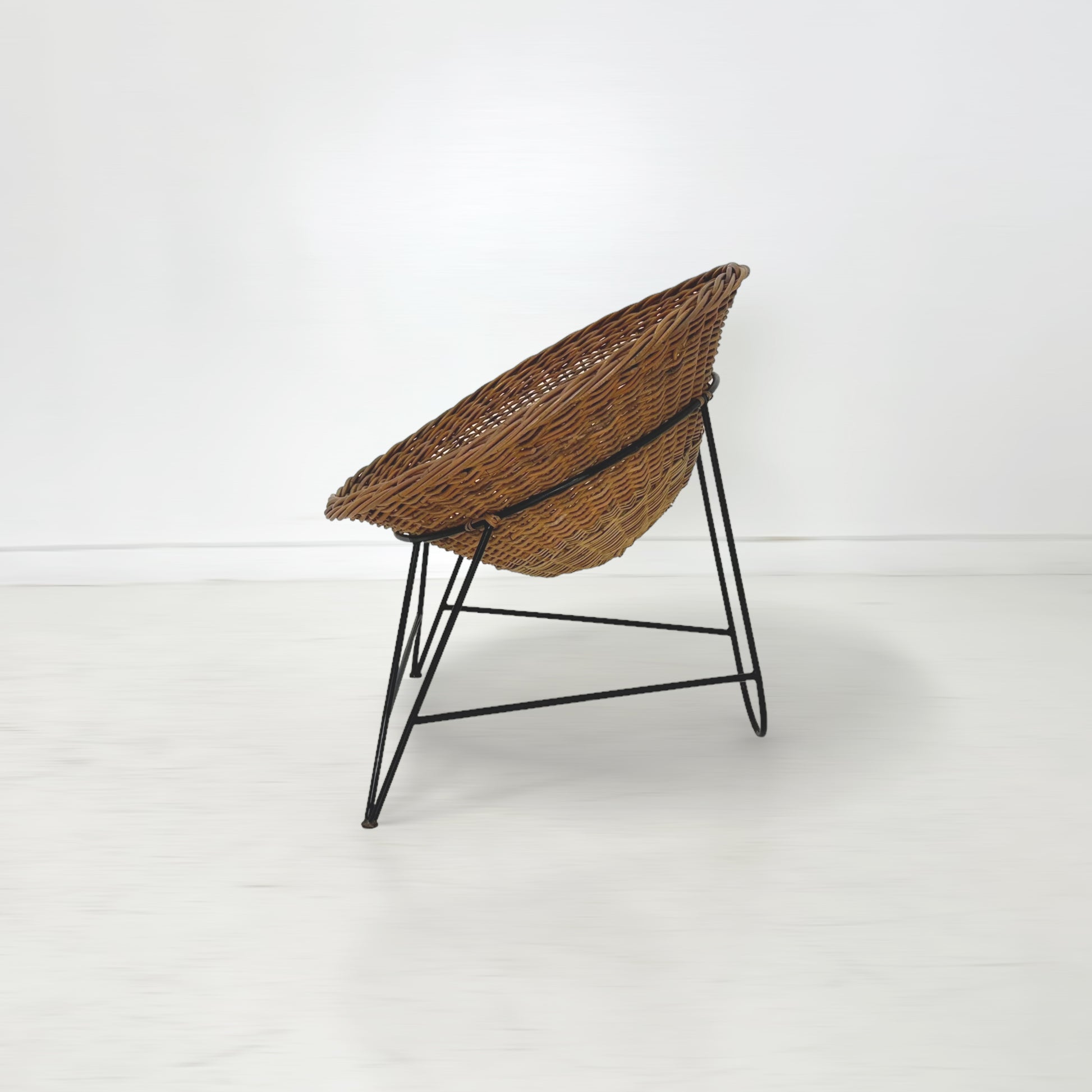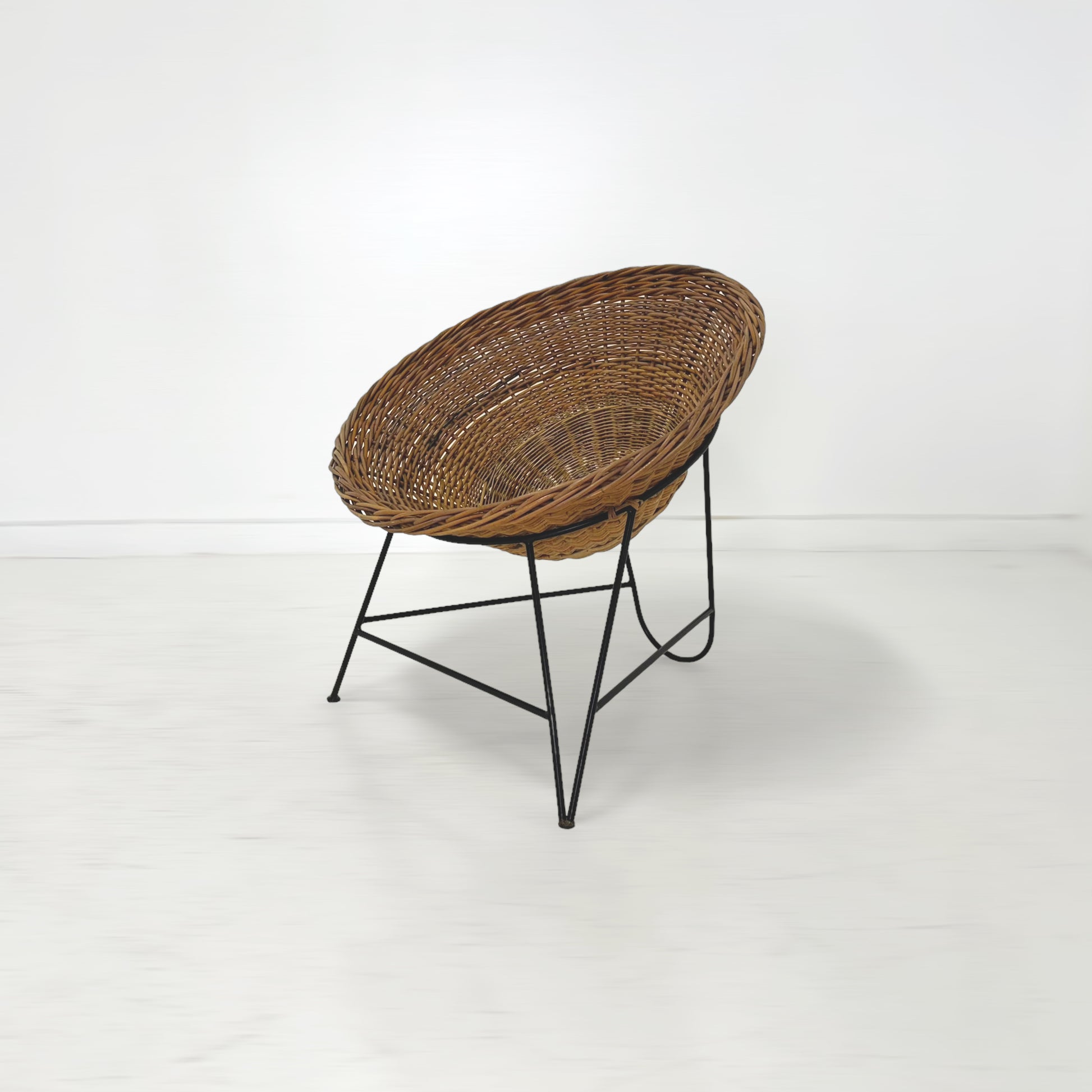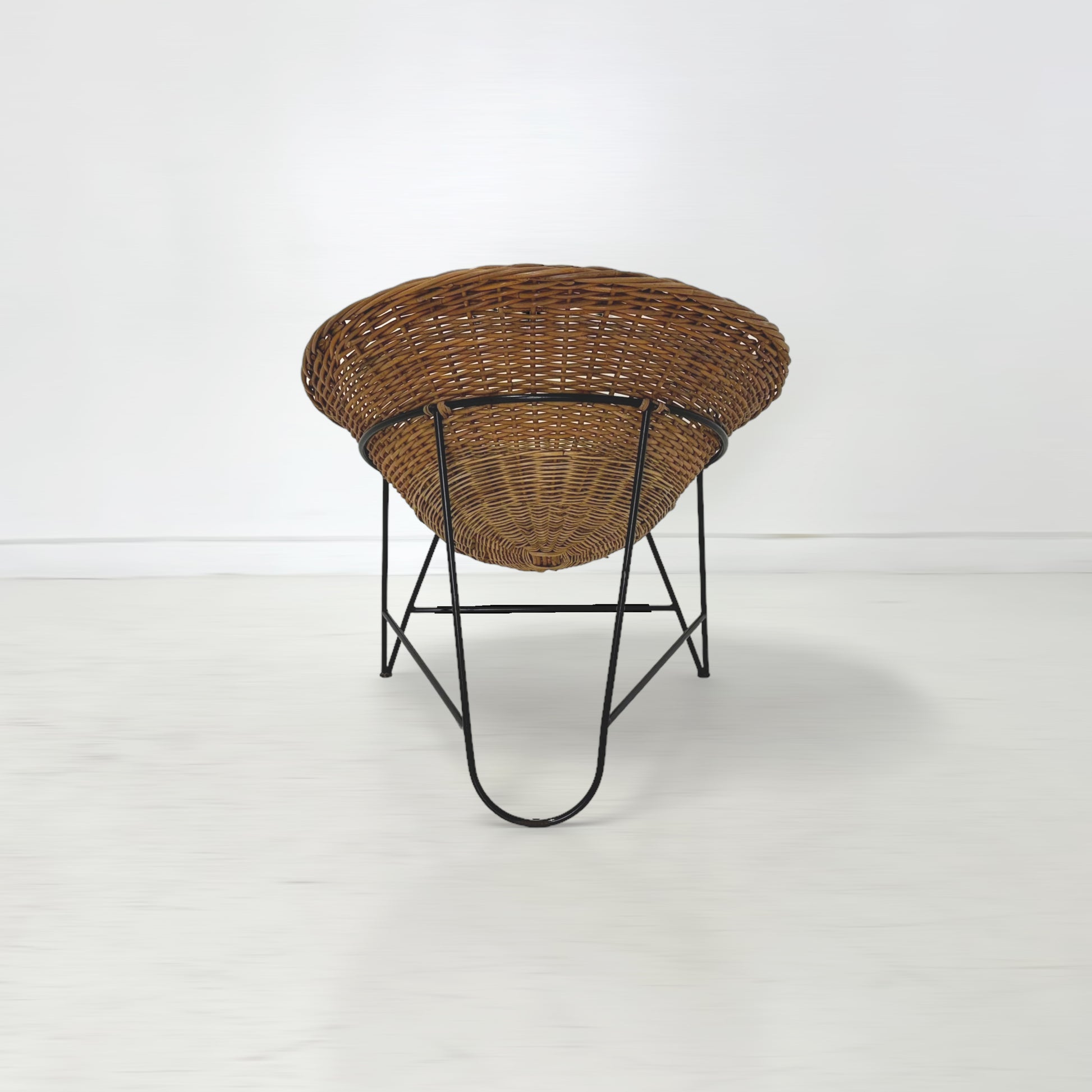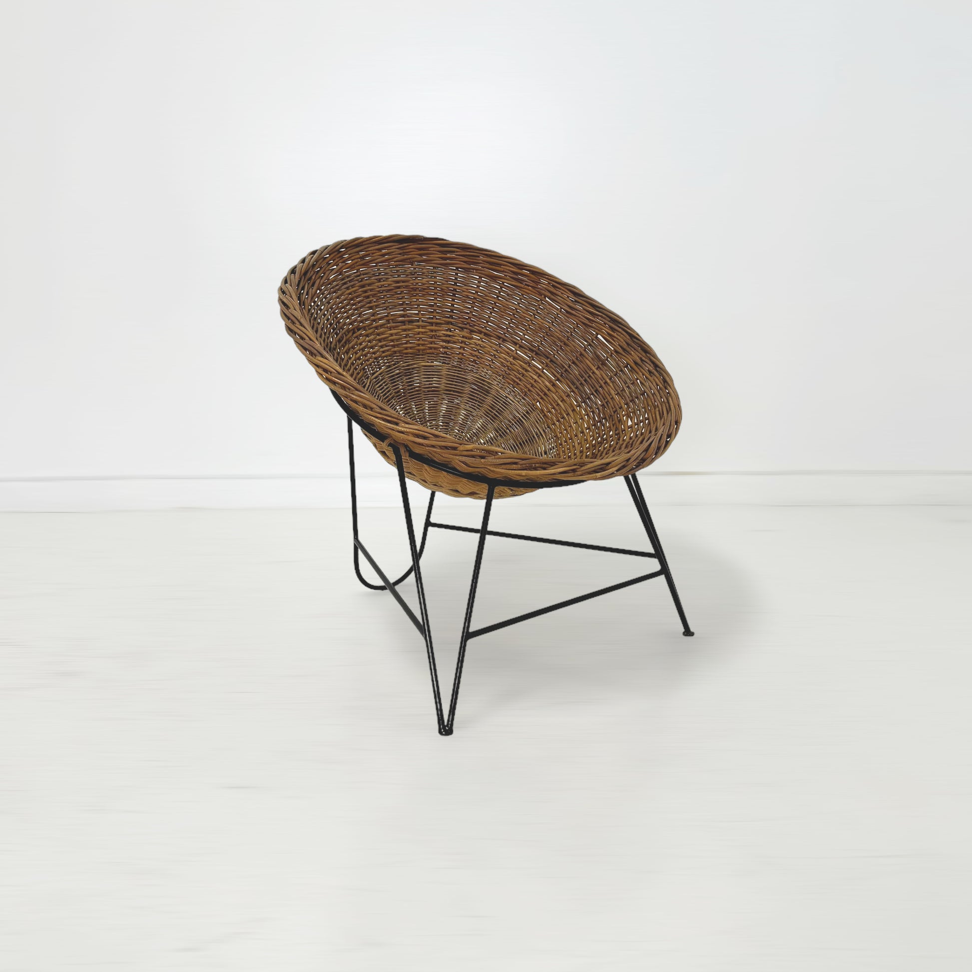 半球状に編み込まれたバスケットの様な座面が体をすっぽりと包み込むようにしてくれるため、ゆったりとくつろげる座り心地です。