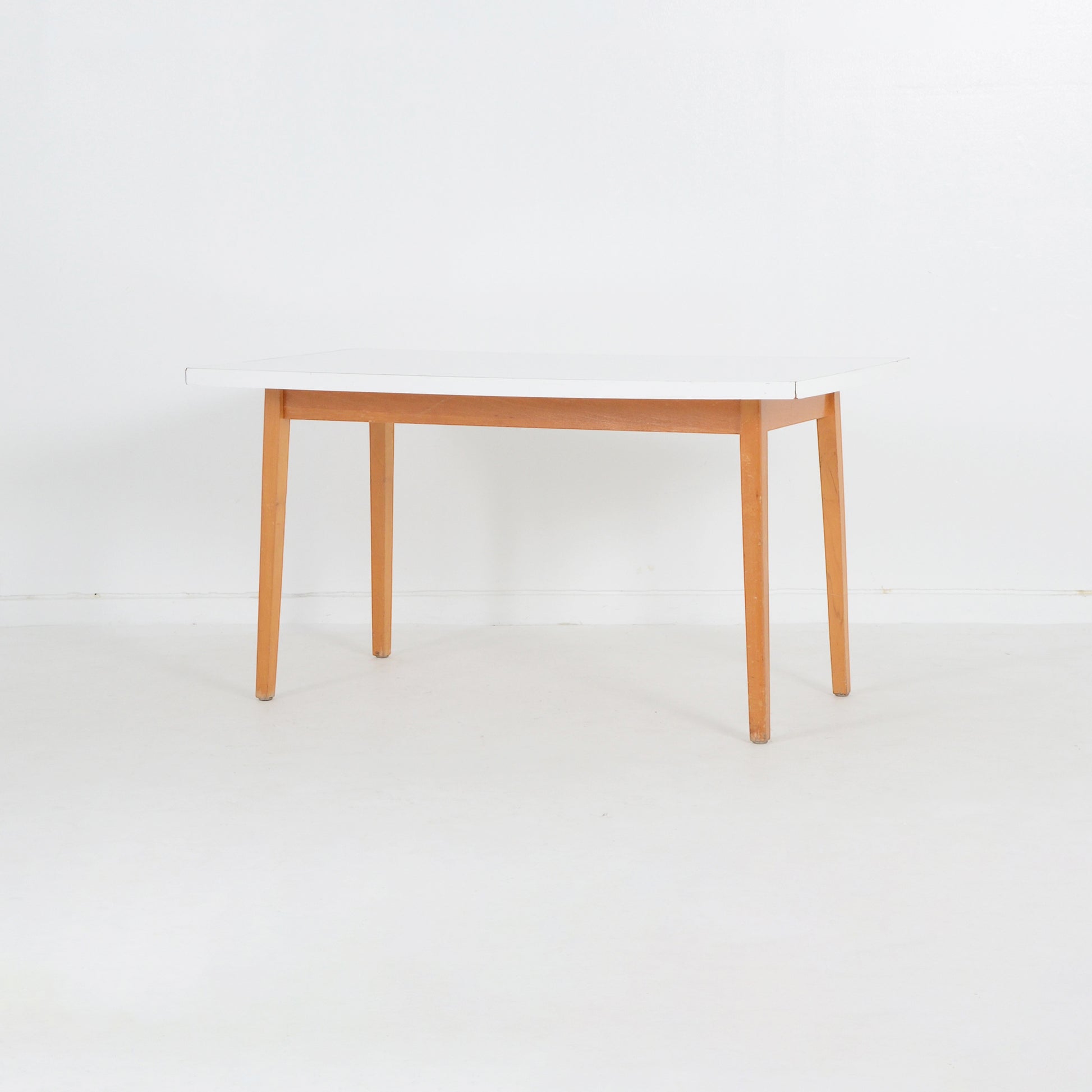白いデコラの天板と、温もりを感じる木製の脚を組み合わせがヴィンテージ感あふれる一台です。