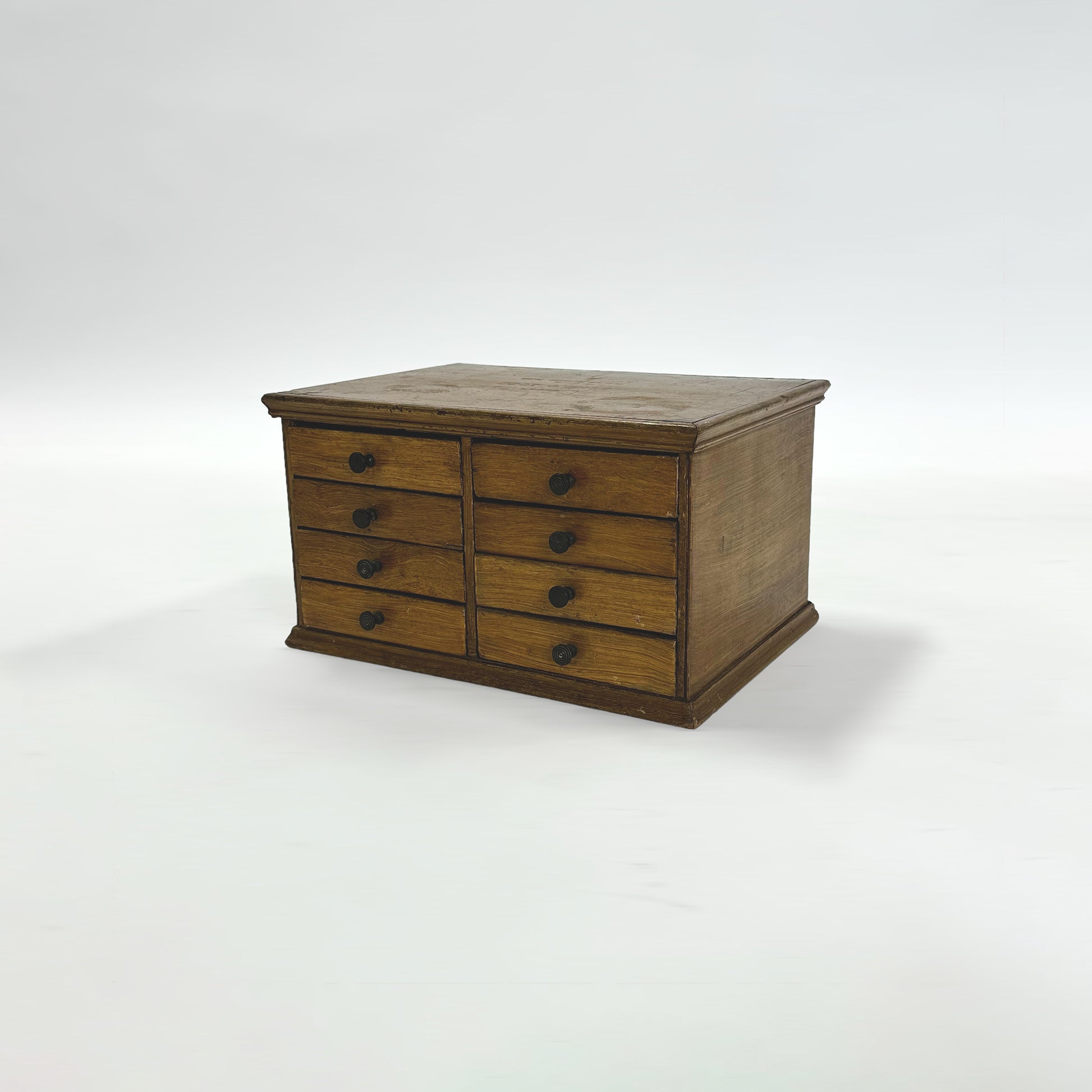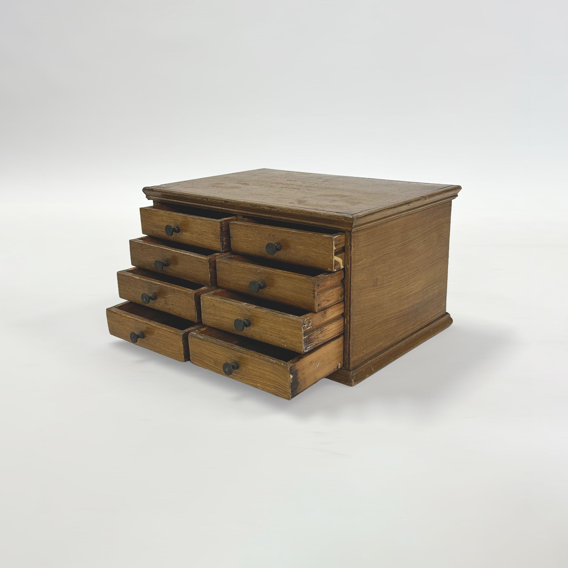 8個の引き出し付きで、ステーショナリーやソーイングセット、切手や封筒など、細かいアイテムを用途ごとに分類しつつ収納できる実用性も兼ね備えたアイテム。