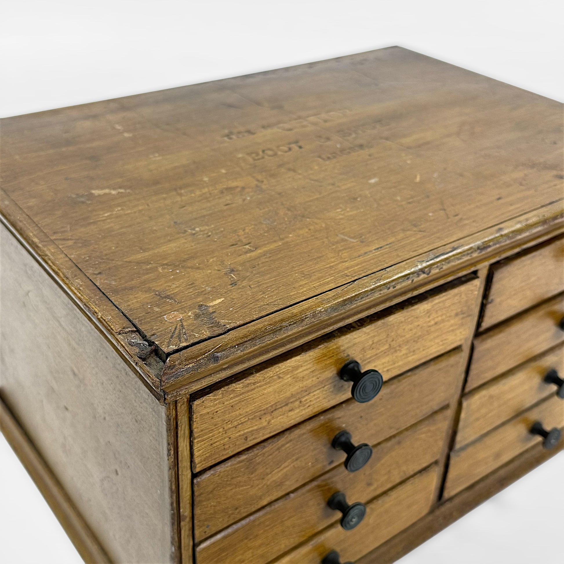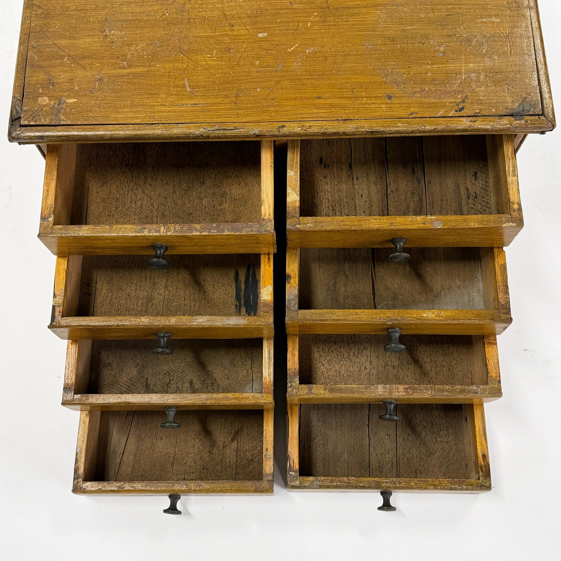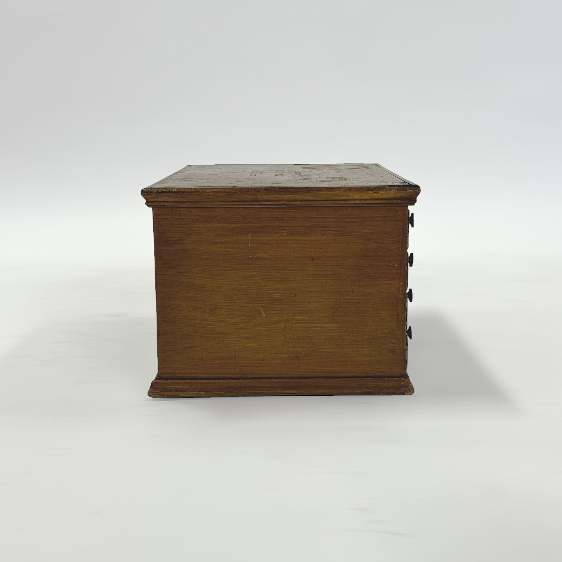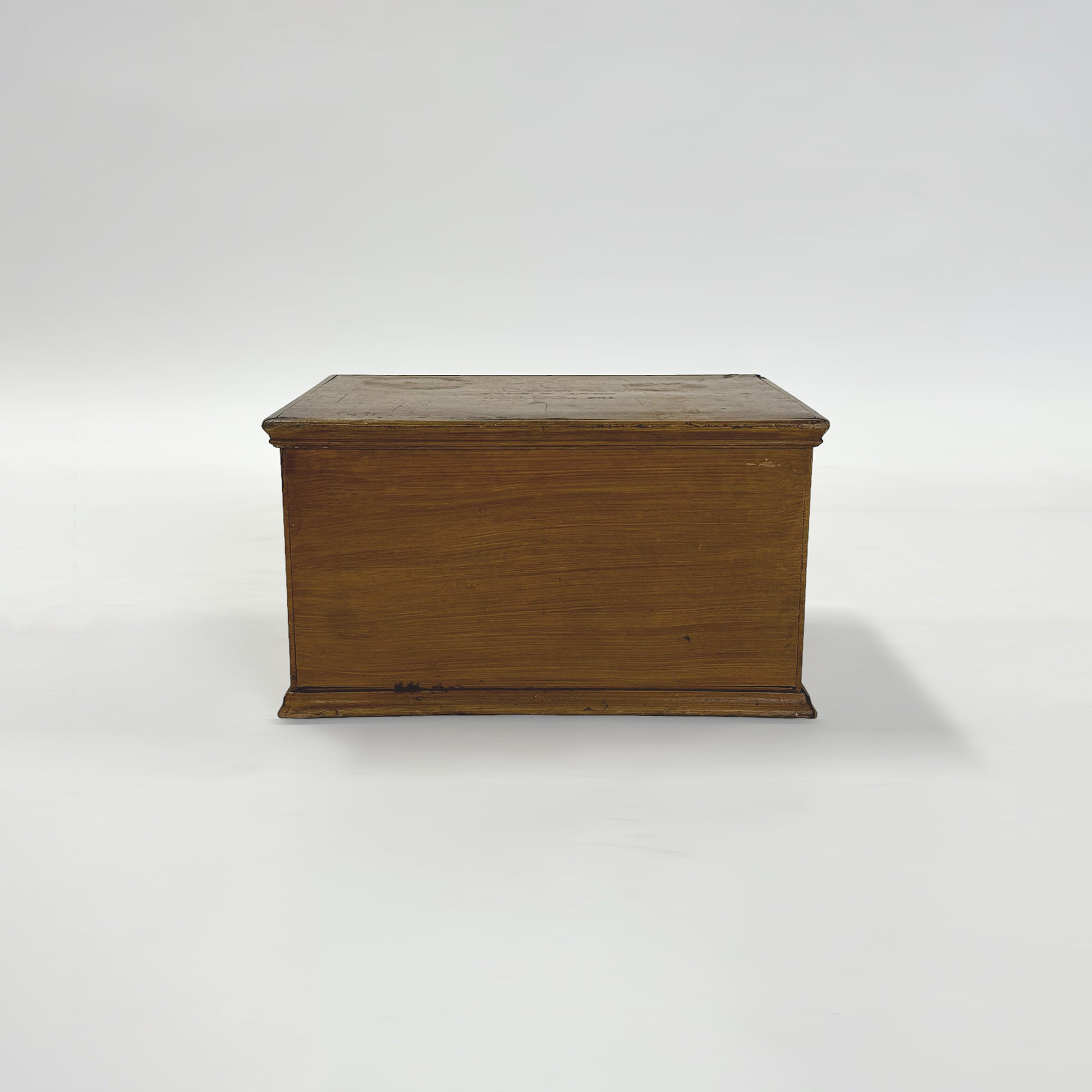ライン模様の入った取っ手や、天板の控えめながら重厚感を感じる装飾まで、とても丁寧な造り、元々は靴紐用のショップディスプレイ什器だったもの。