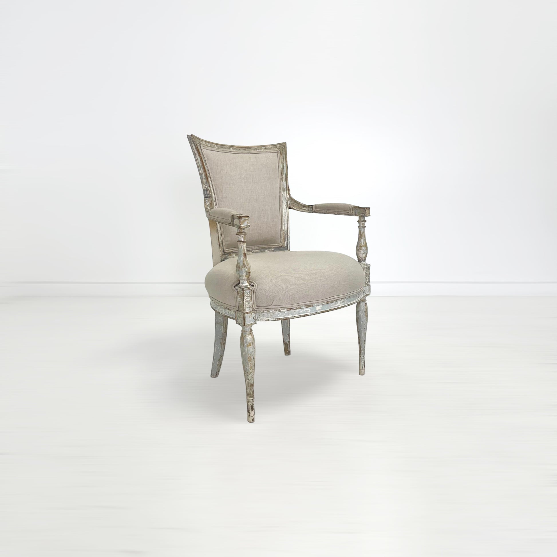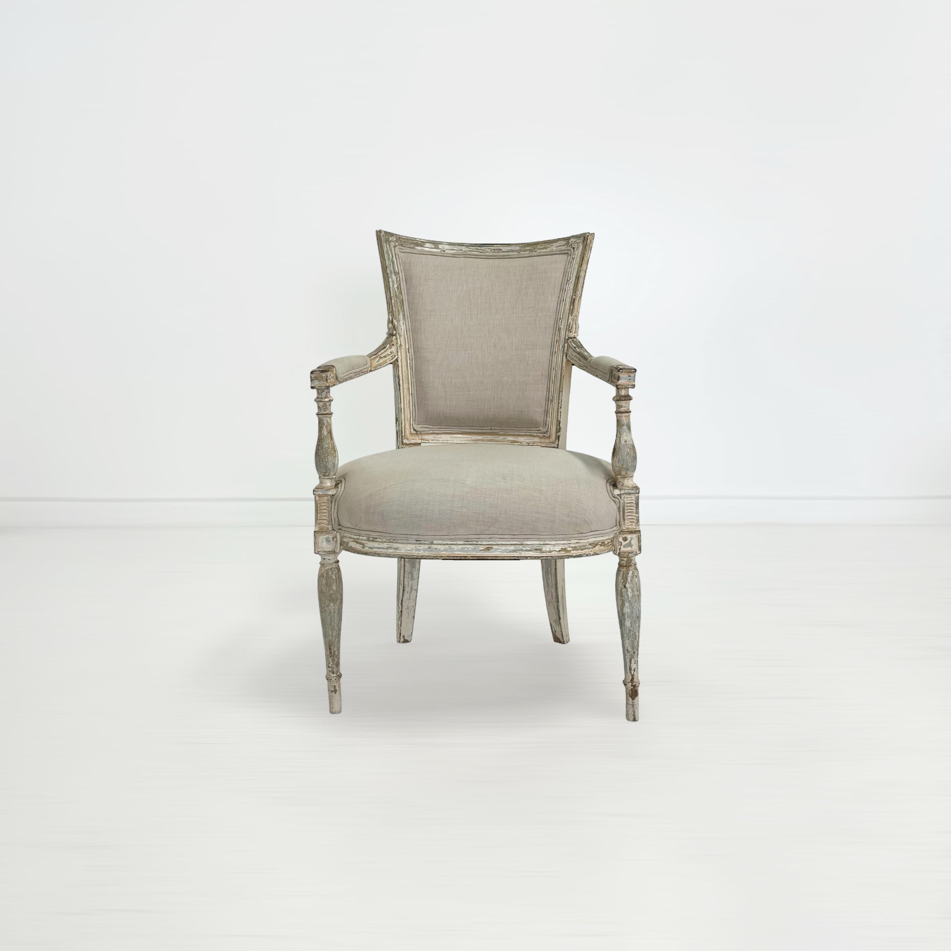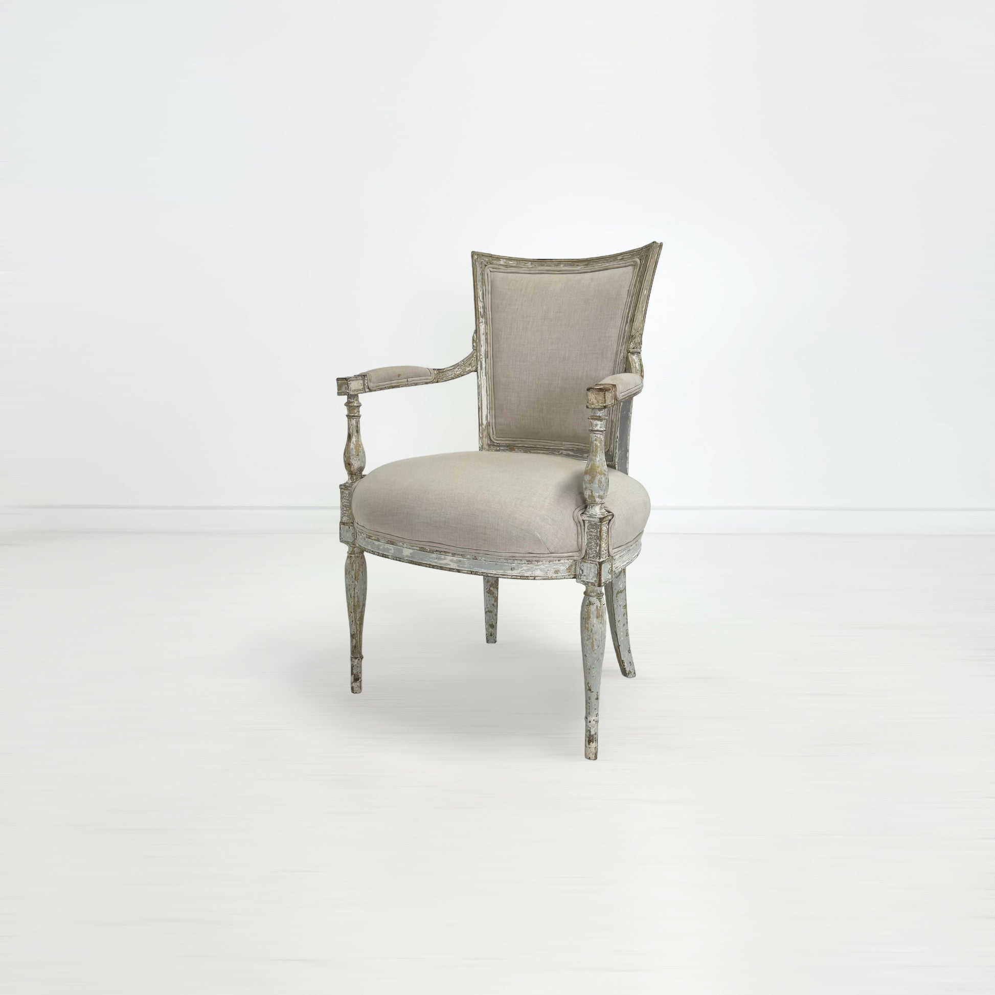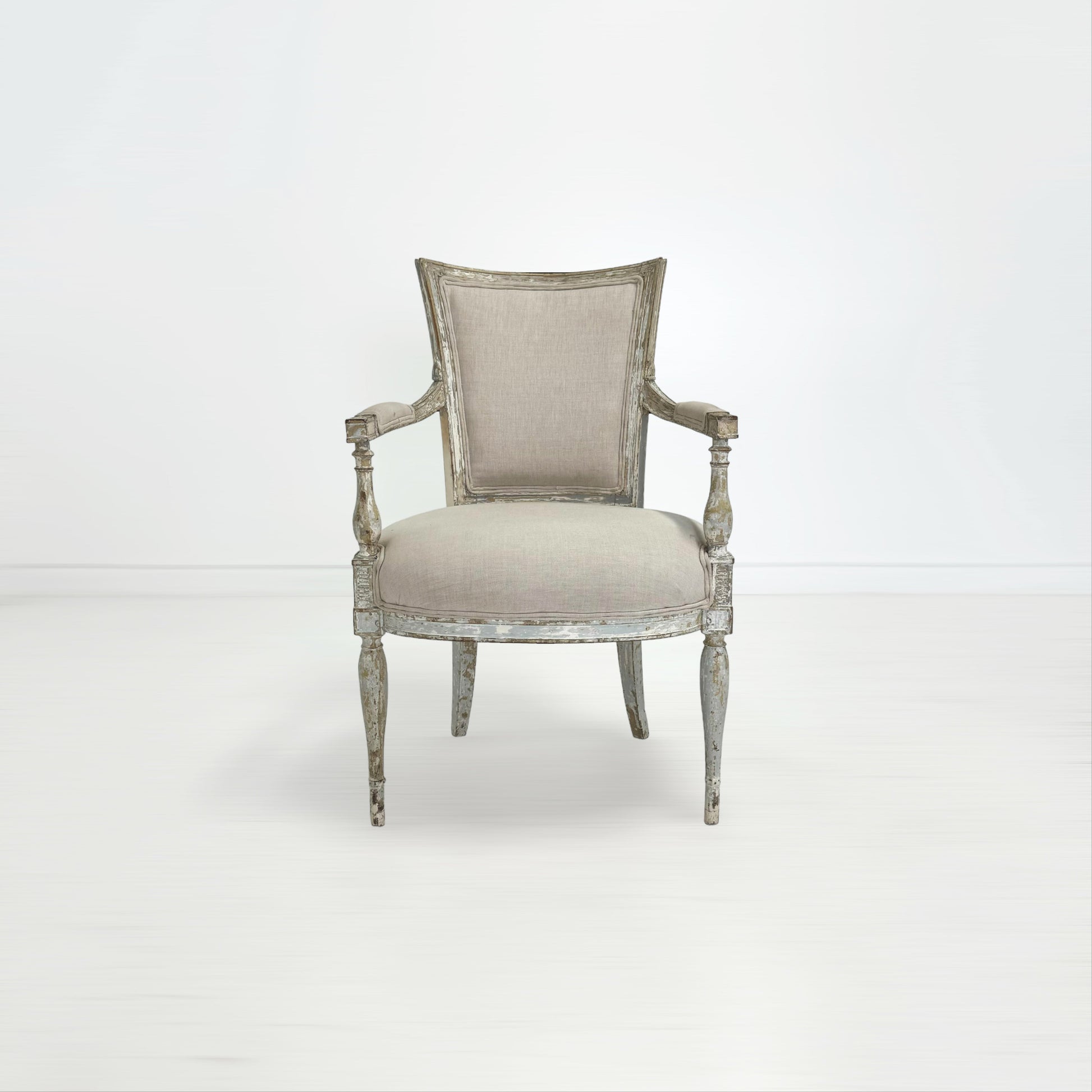 軽やかな印象のホワイトペイントが施されたアームチェア。