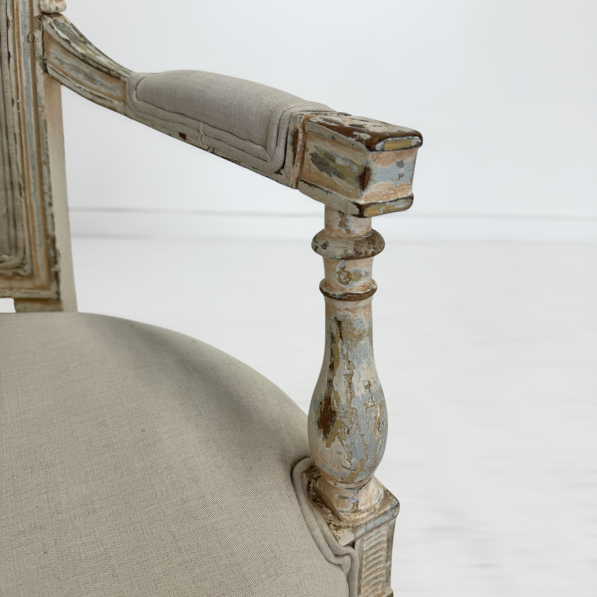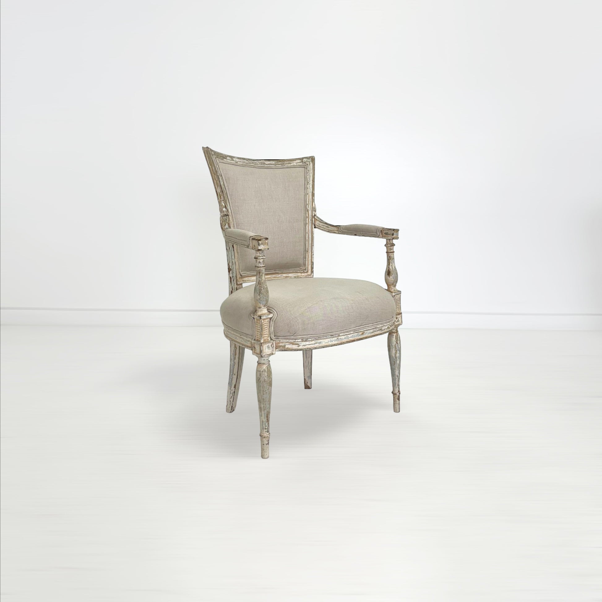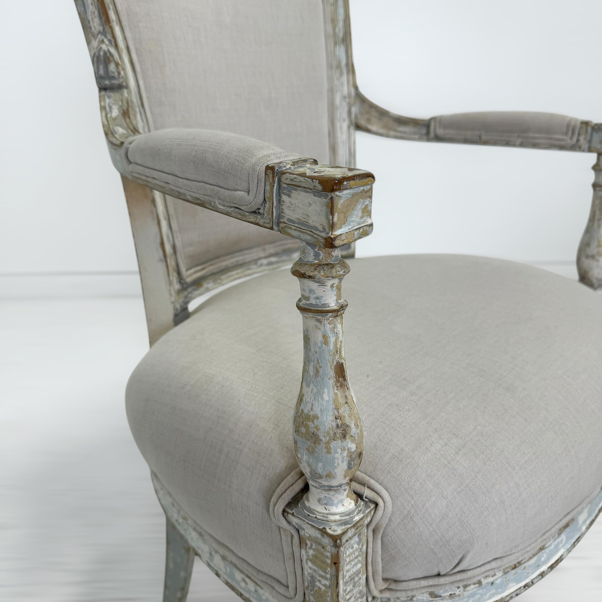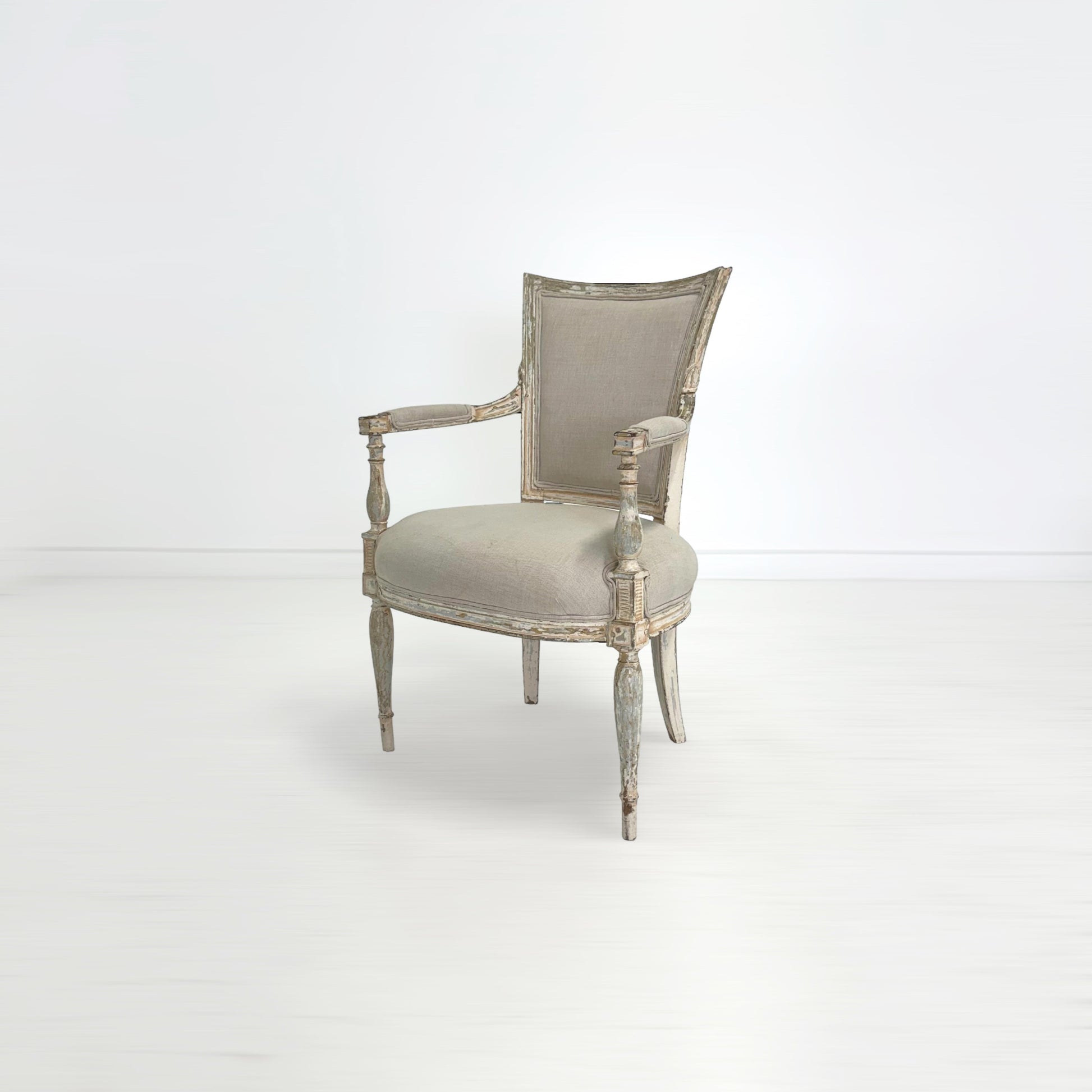 軽やかな印象のホワイトペイントが施されたアームチェア。