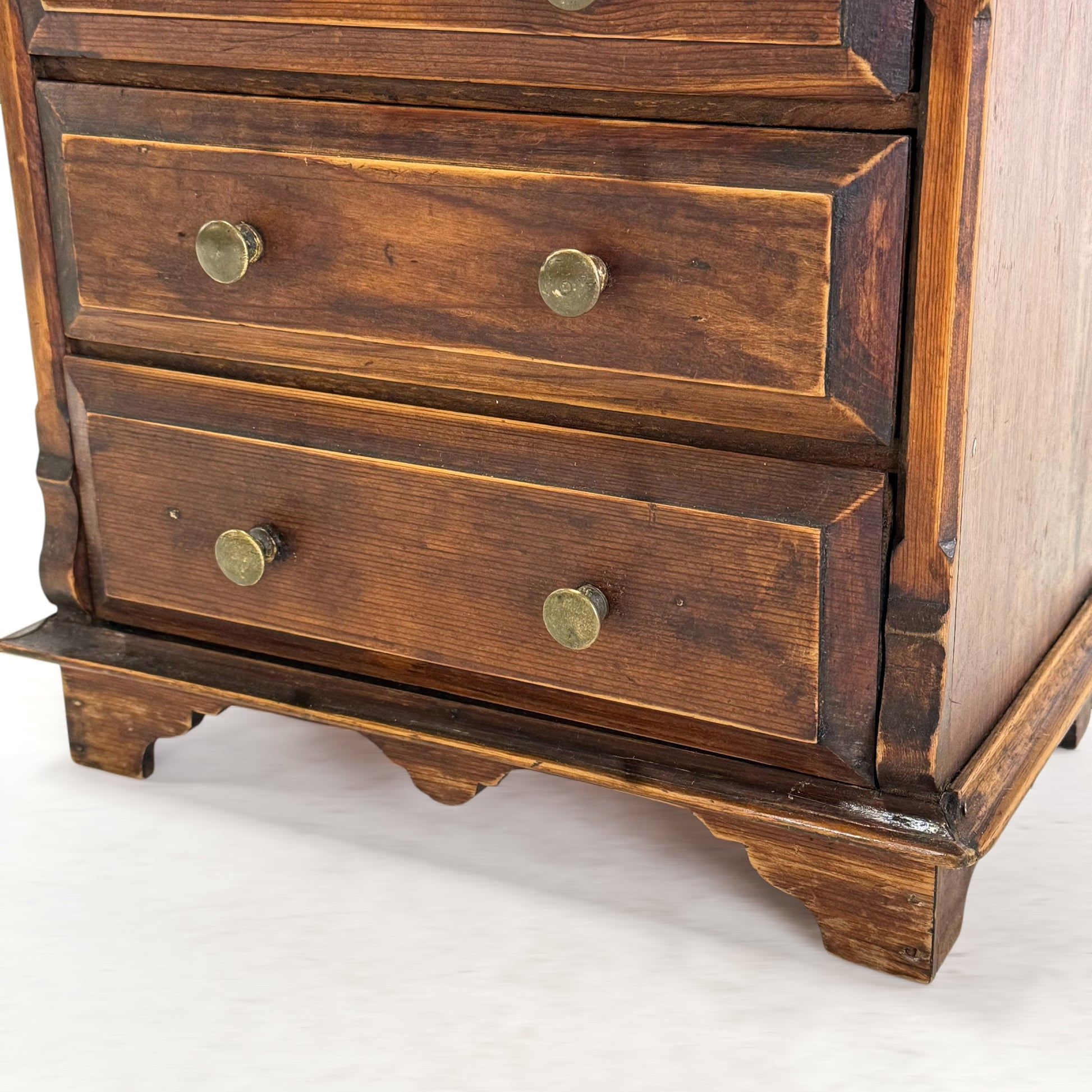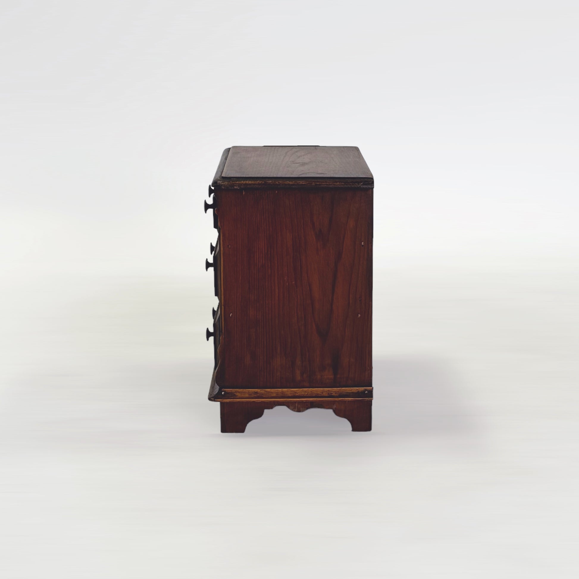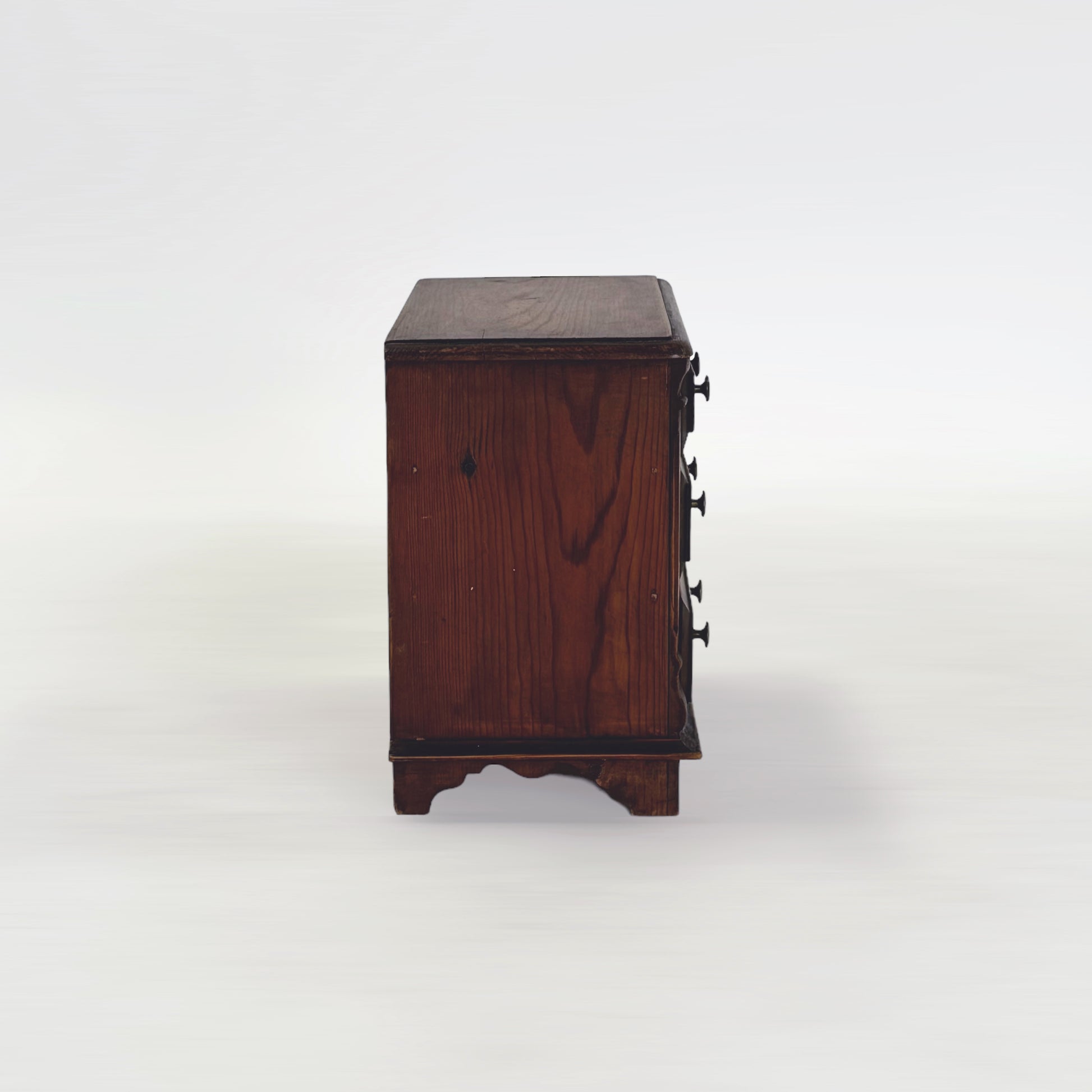脚のデザインと濃いめのブラウンカラーが印象的なデスクチェスト。