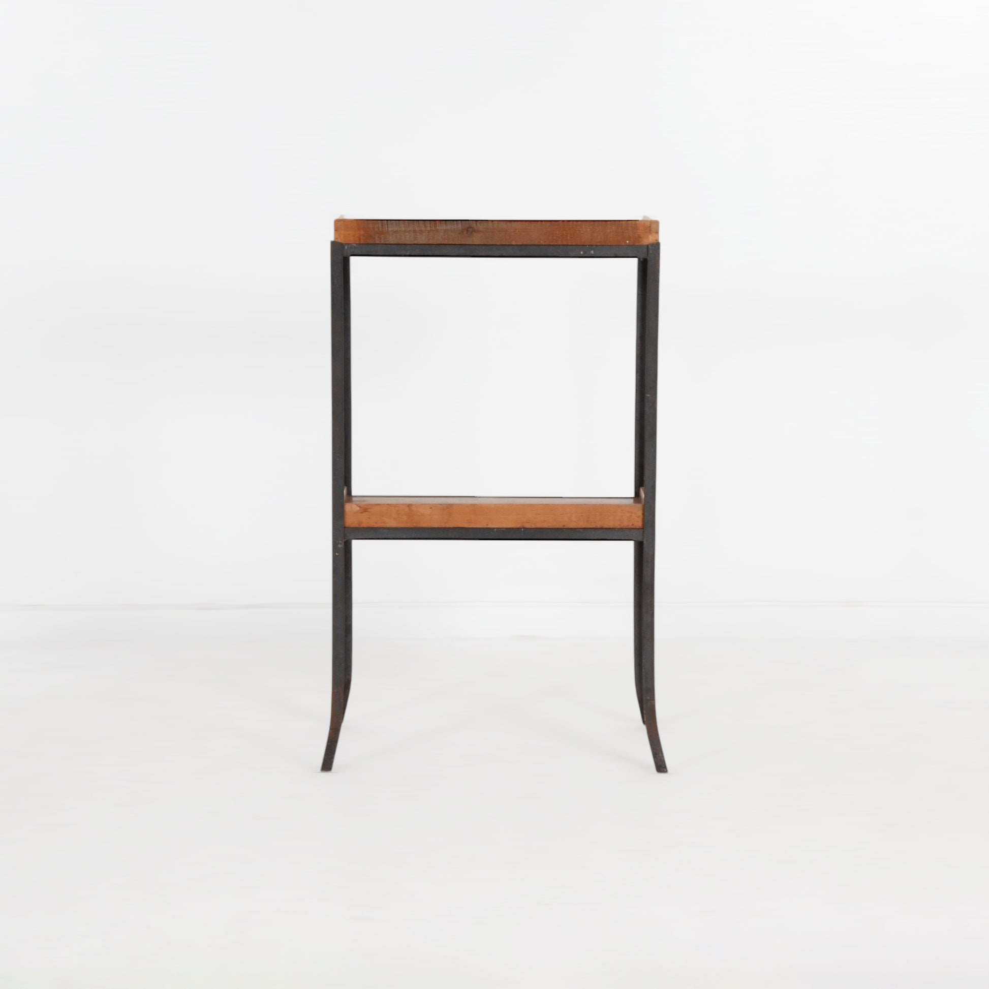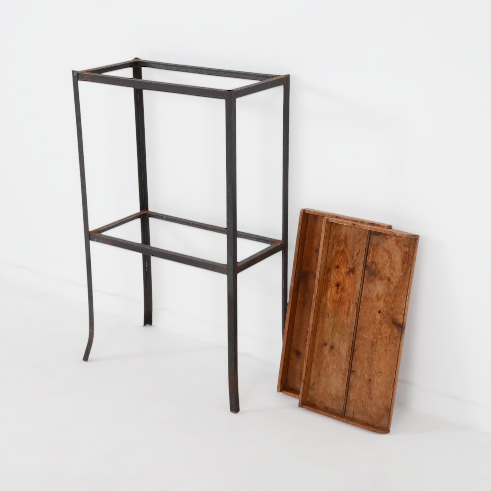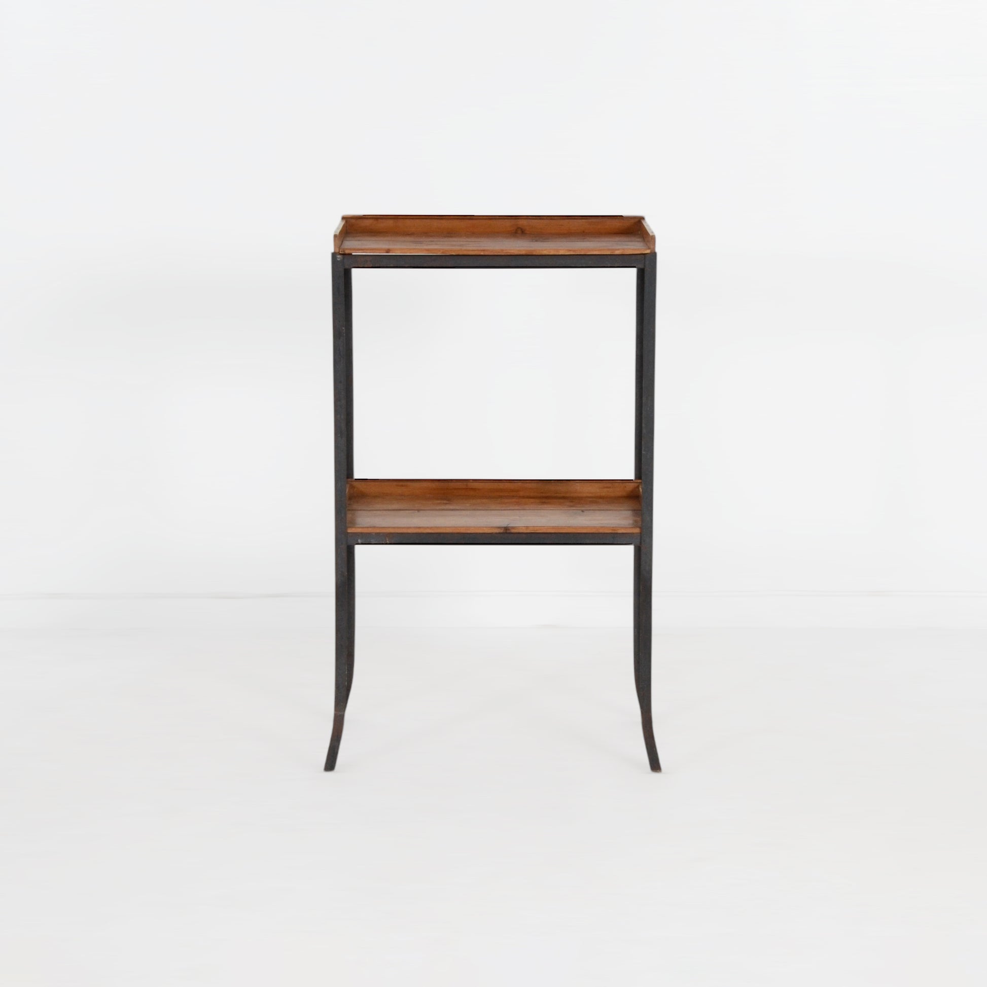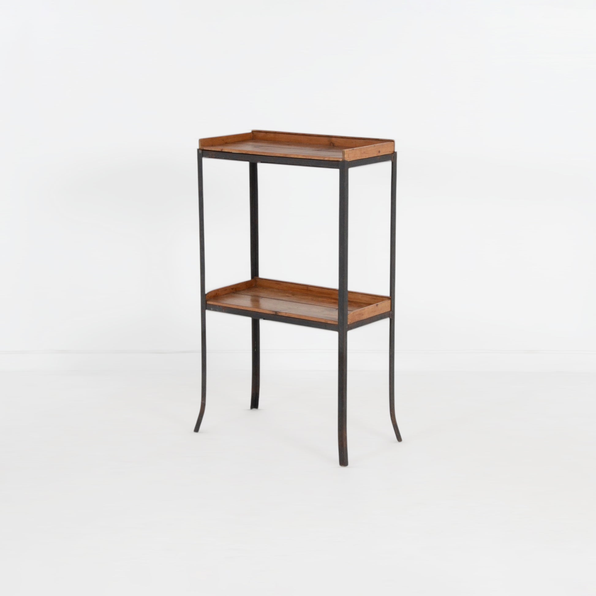 縁に立ち上がりのある2段の天板を、アイアンのフレームがしっかりと支えていて、すっきりとしたルックスながら頑丈なつくり。使い方のイマジネーションを広げてくれます。