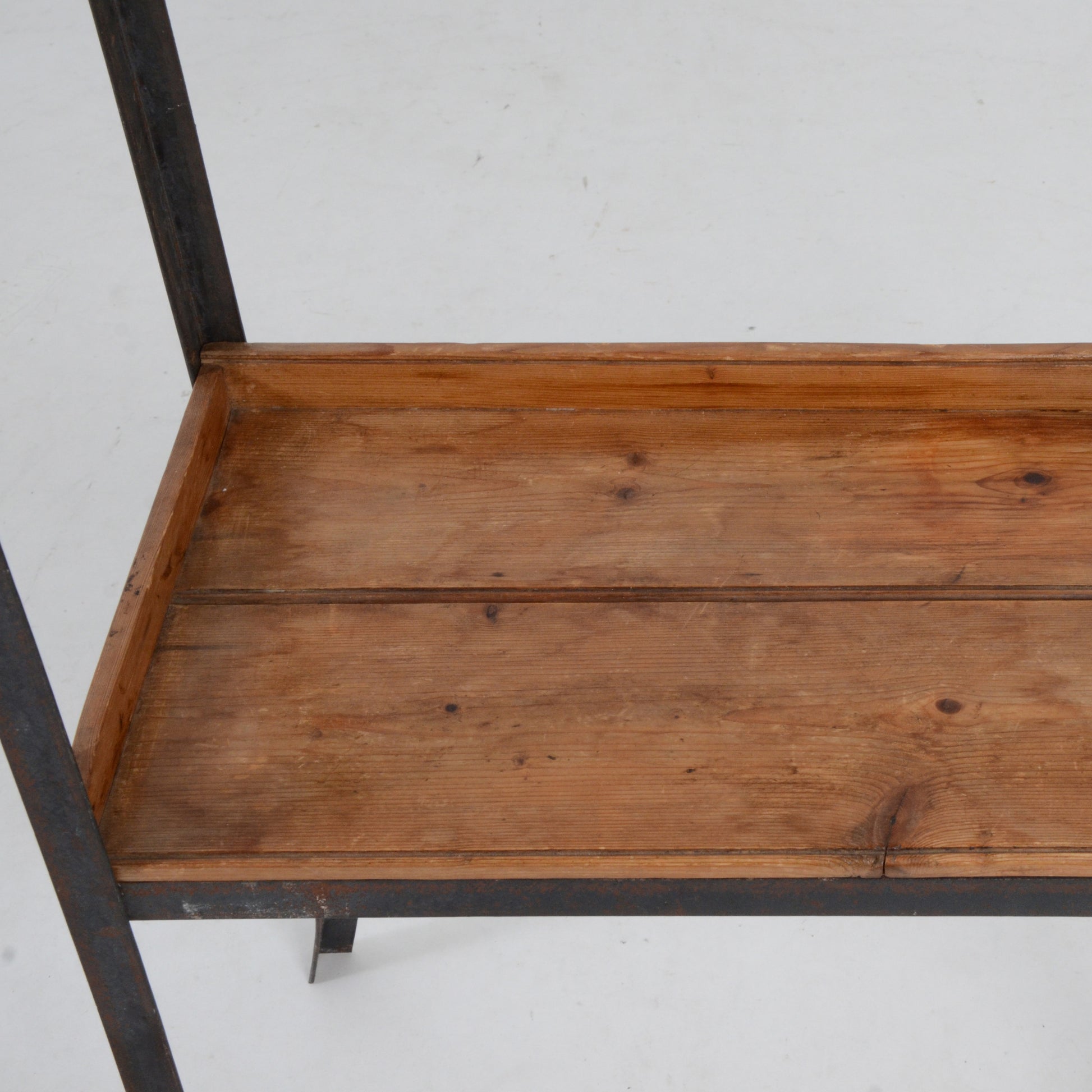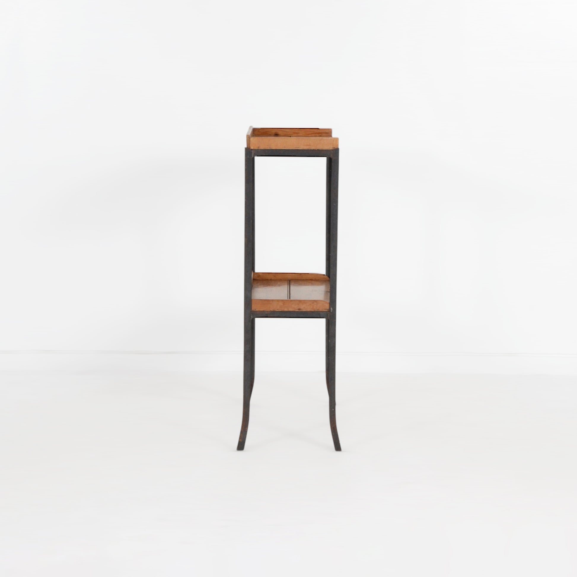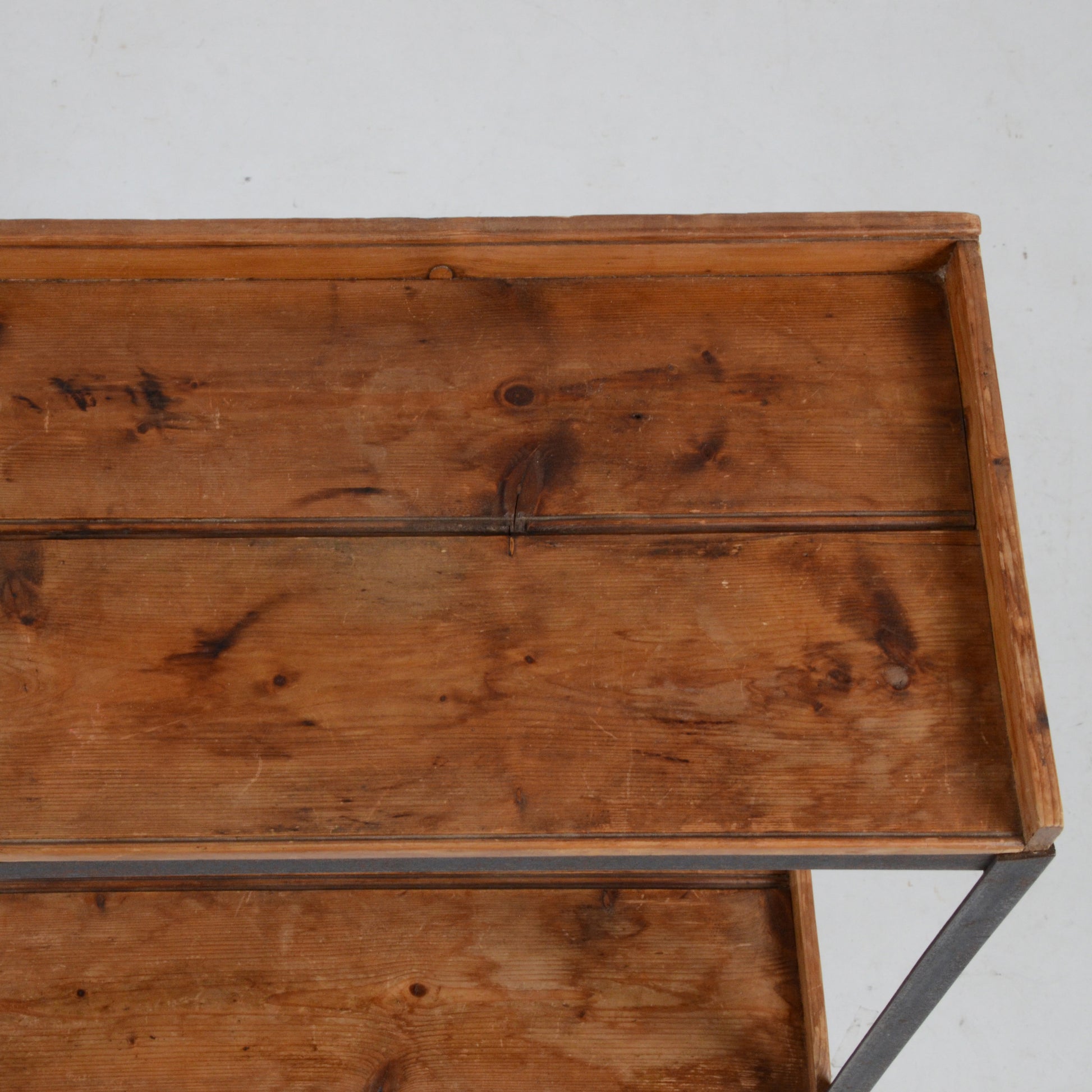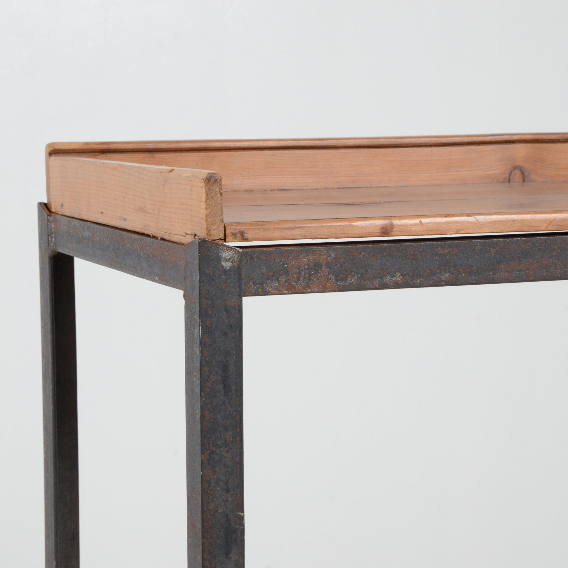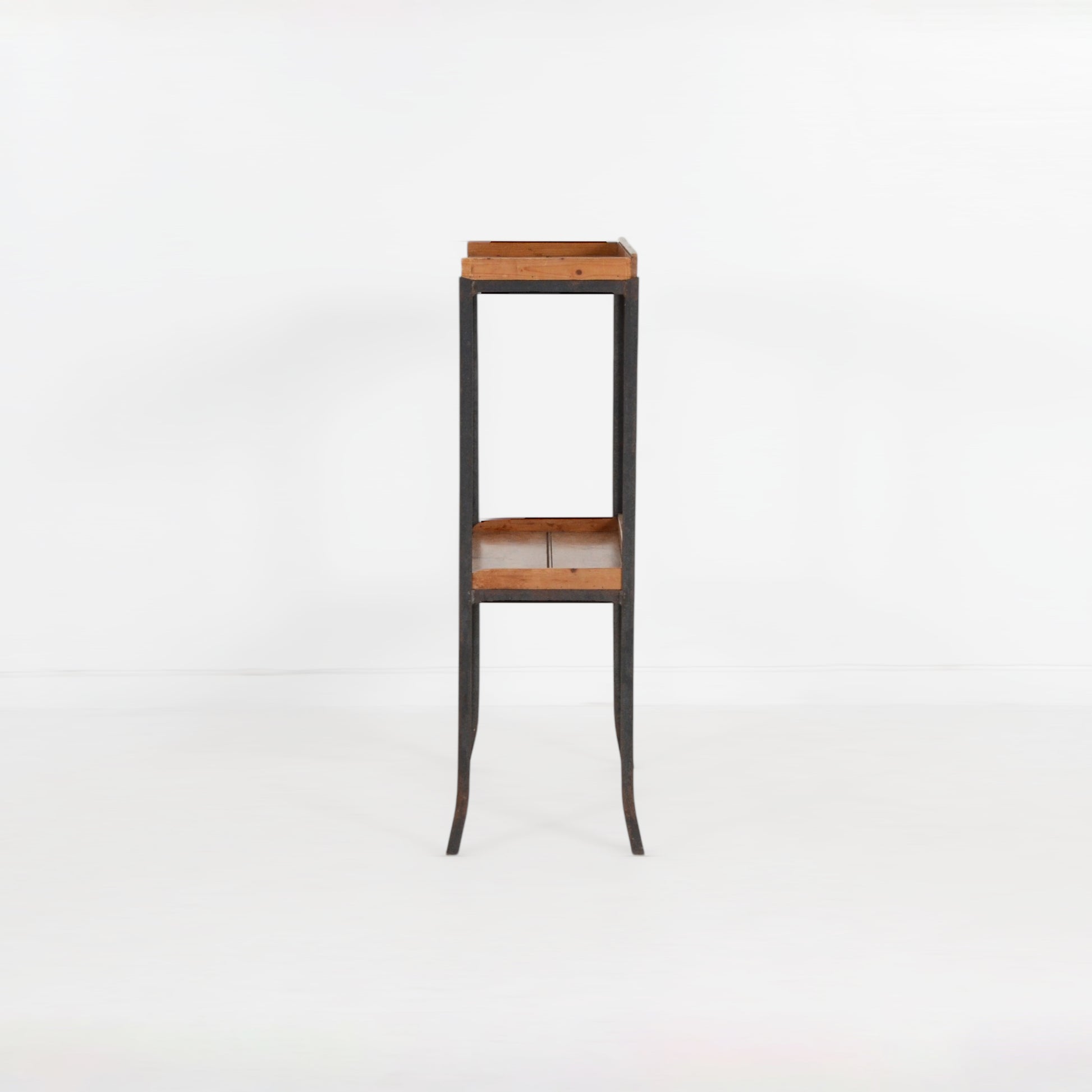 縁に立ち上がりのある2段の天板を、アイアンのフレームがしっかりと支えていて、すっきりとしたルックスながら頑丈なつくり。使い方のイマジネーションを広げてくれます。