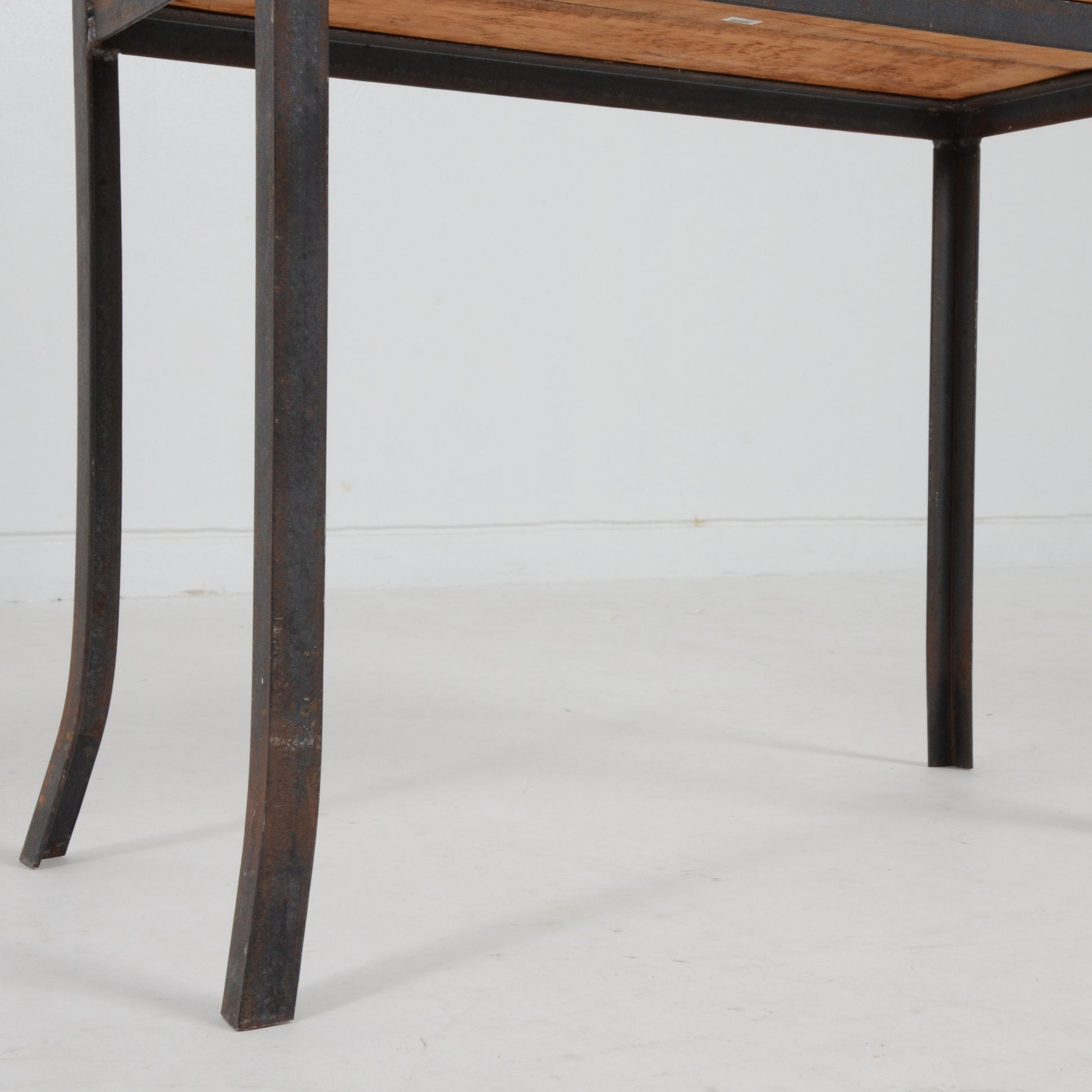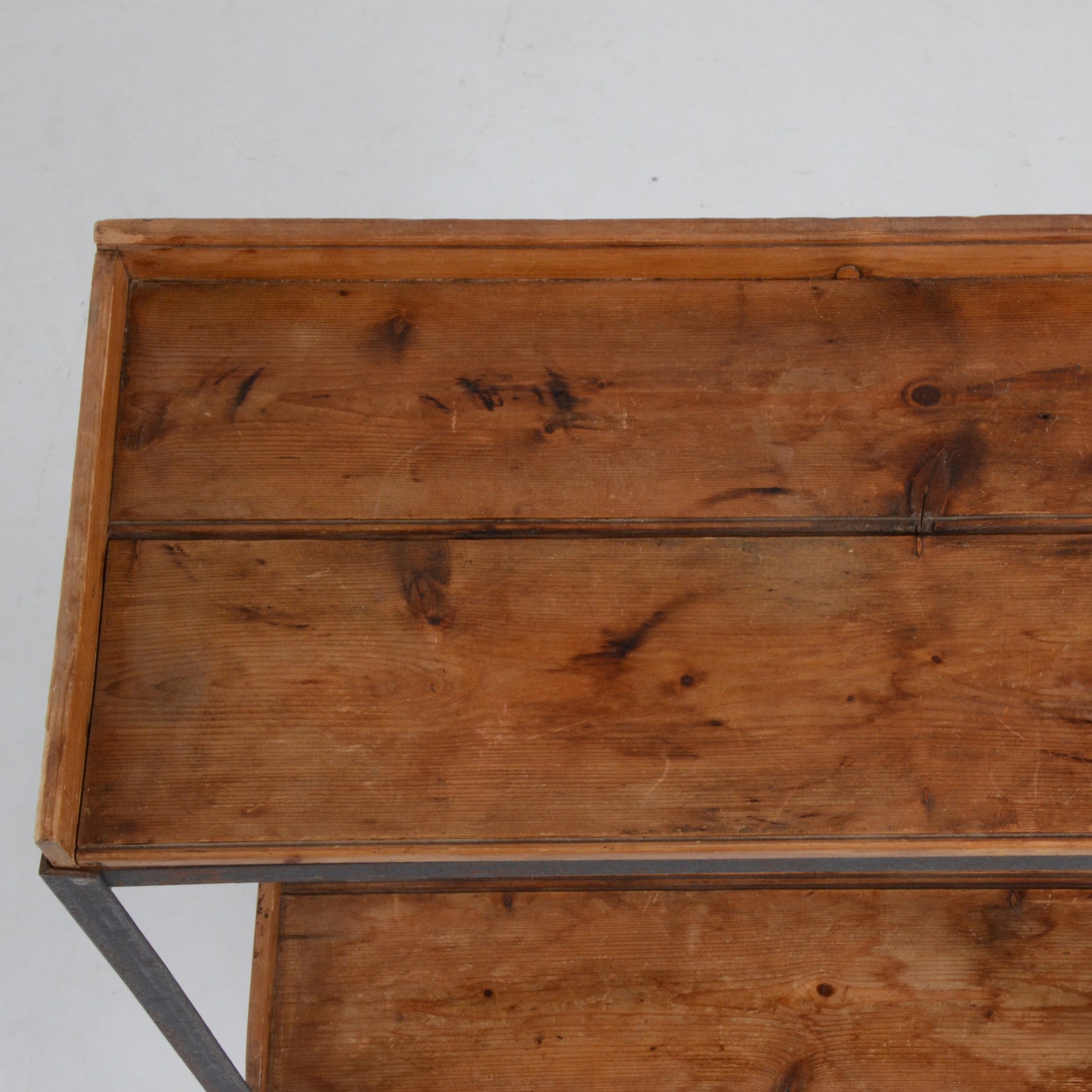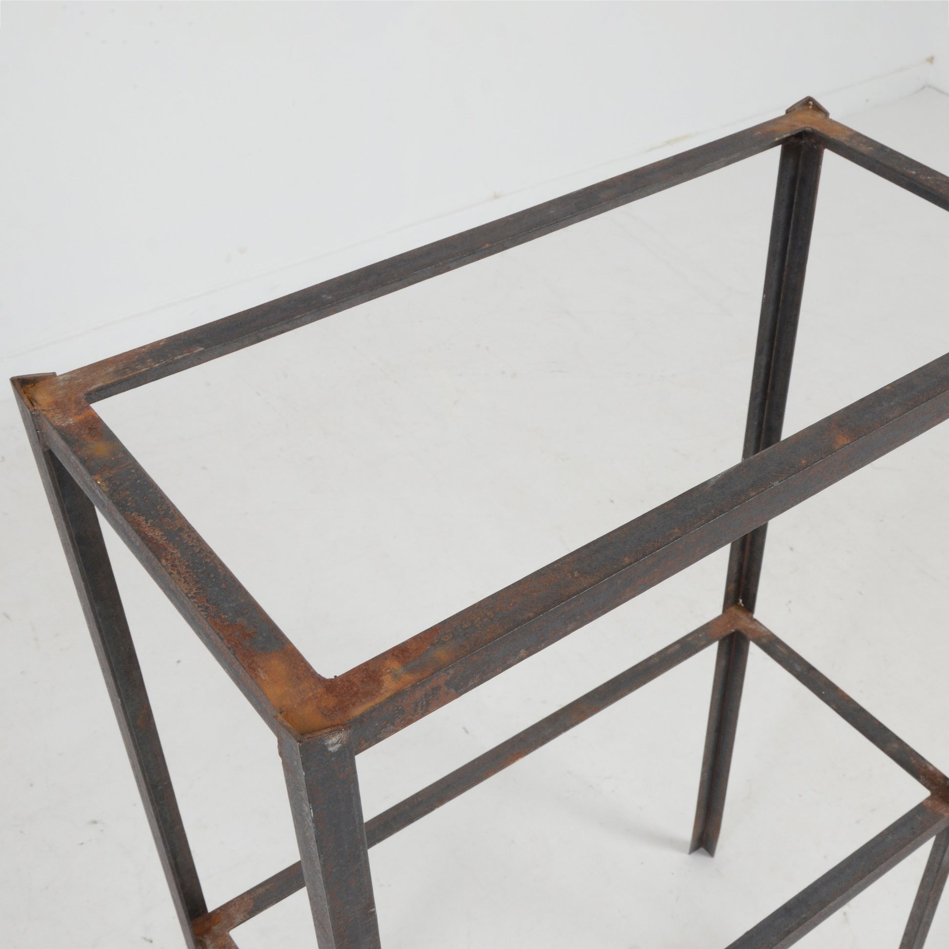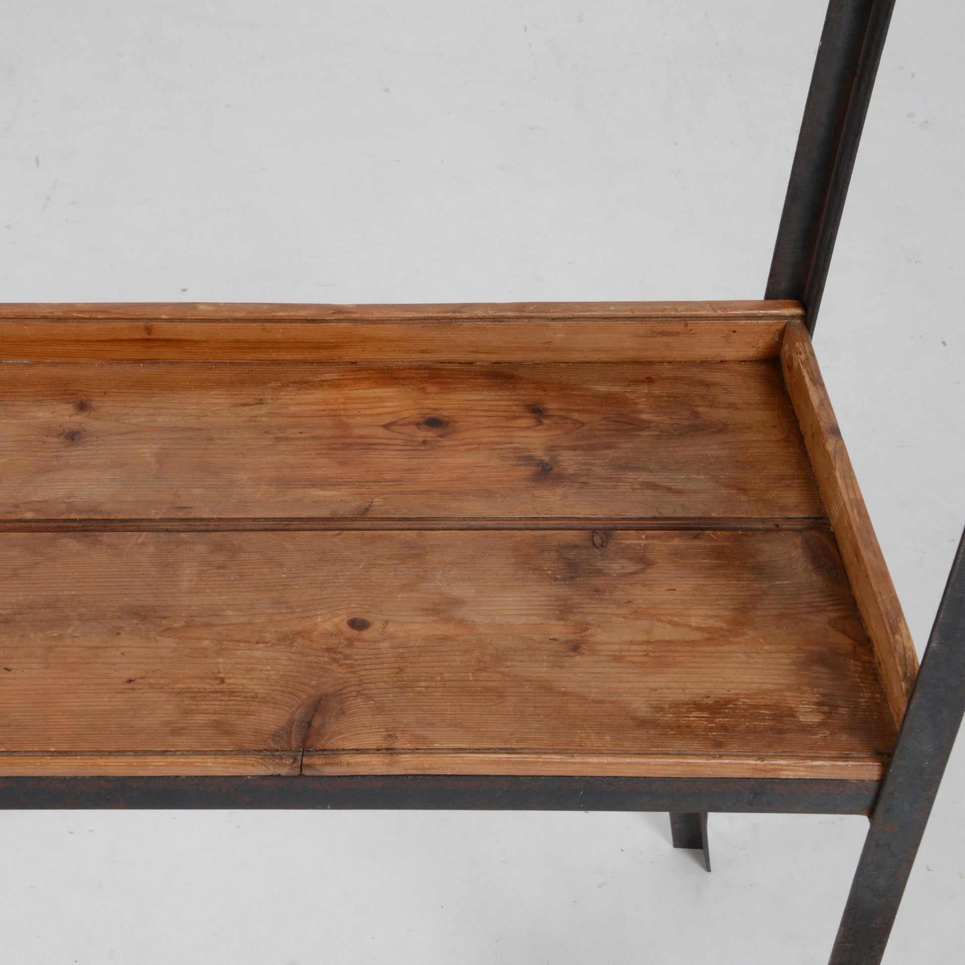 縁に立ち上がりのある2段の天板を、アイアンのフレームがしっかりと支えていて、すっきりとしたルックスながら頑丈なつくり。使い方のイマジネーションを広げてくれます。