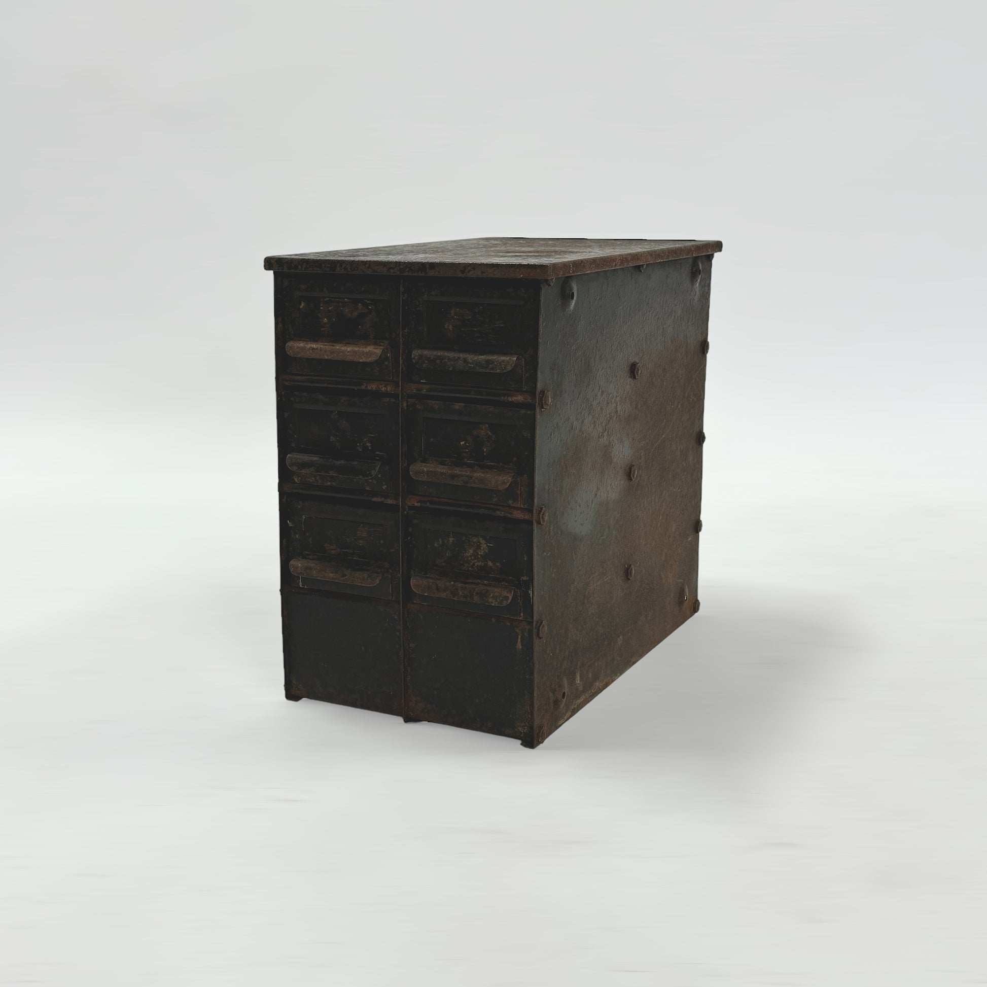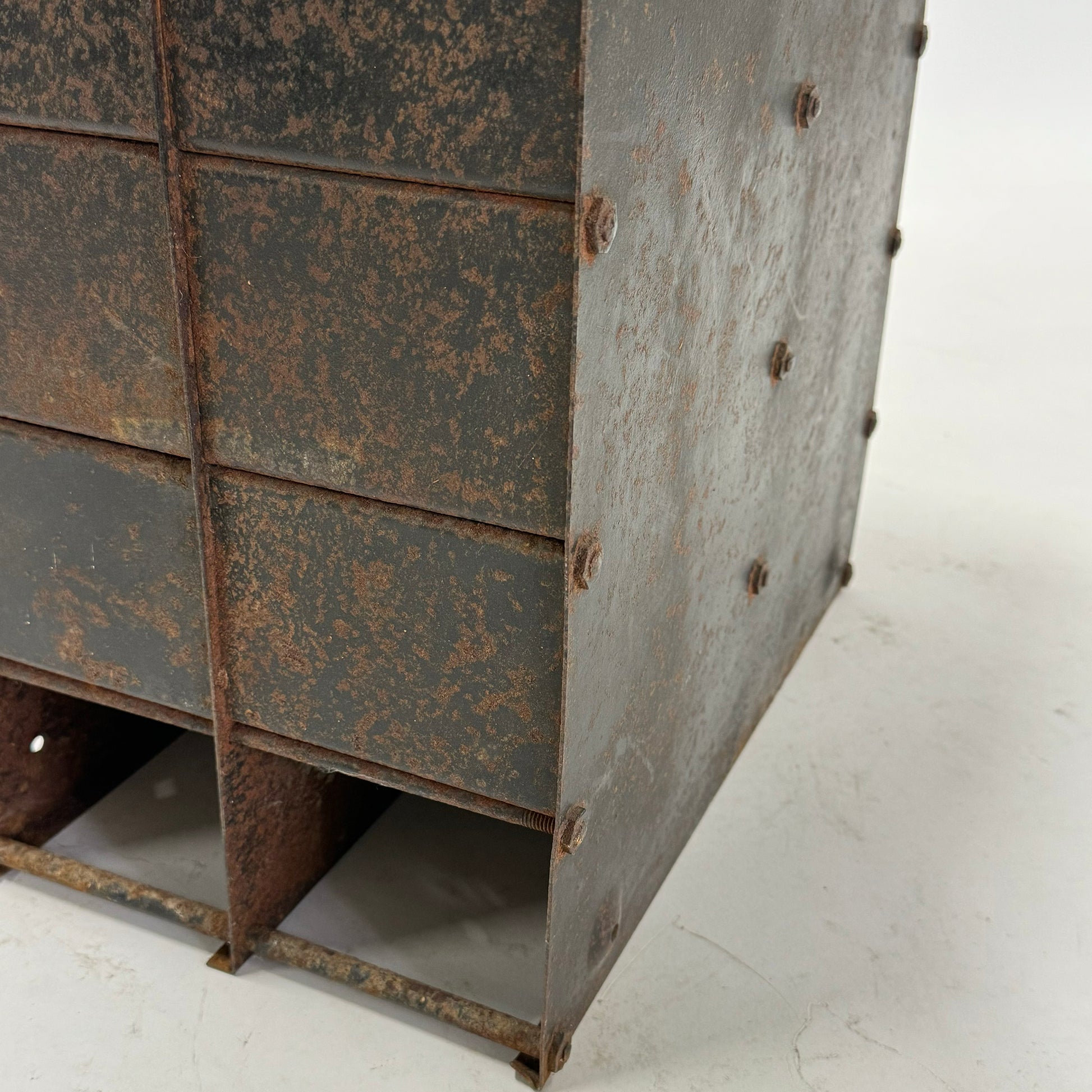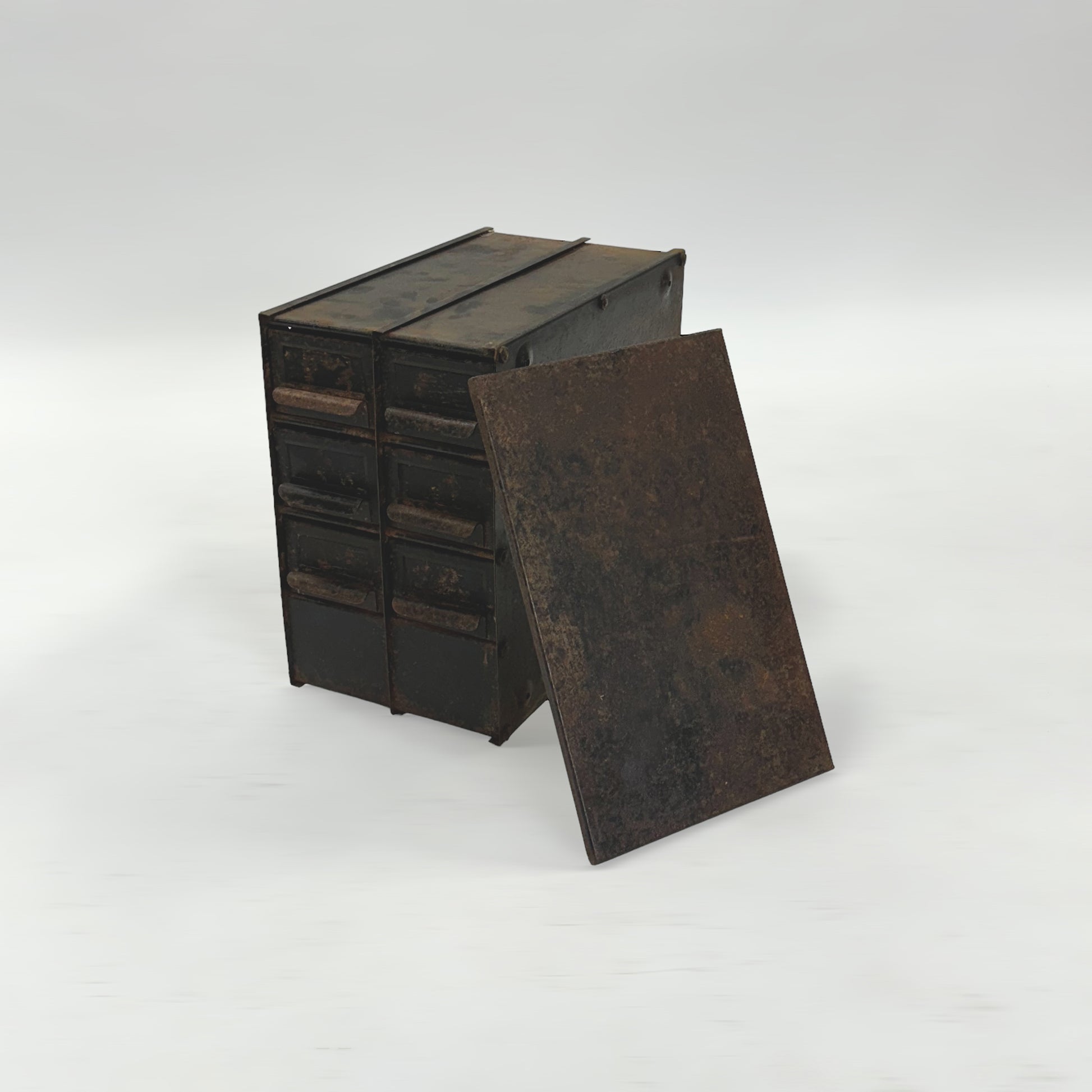 錆びた質感が二つとない存在感を放ちながらも、奥行きがたっぷりあるので、工具やステーショナリーなどの小物類はもちろん、鍵や貴重品置き場としても使えそう。