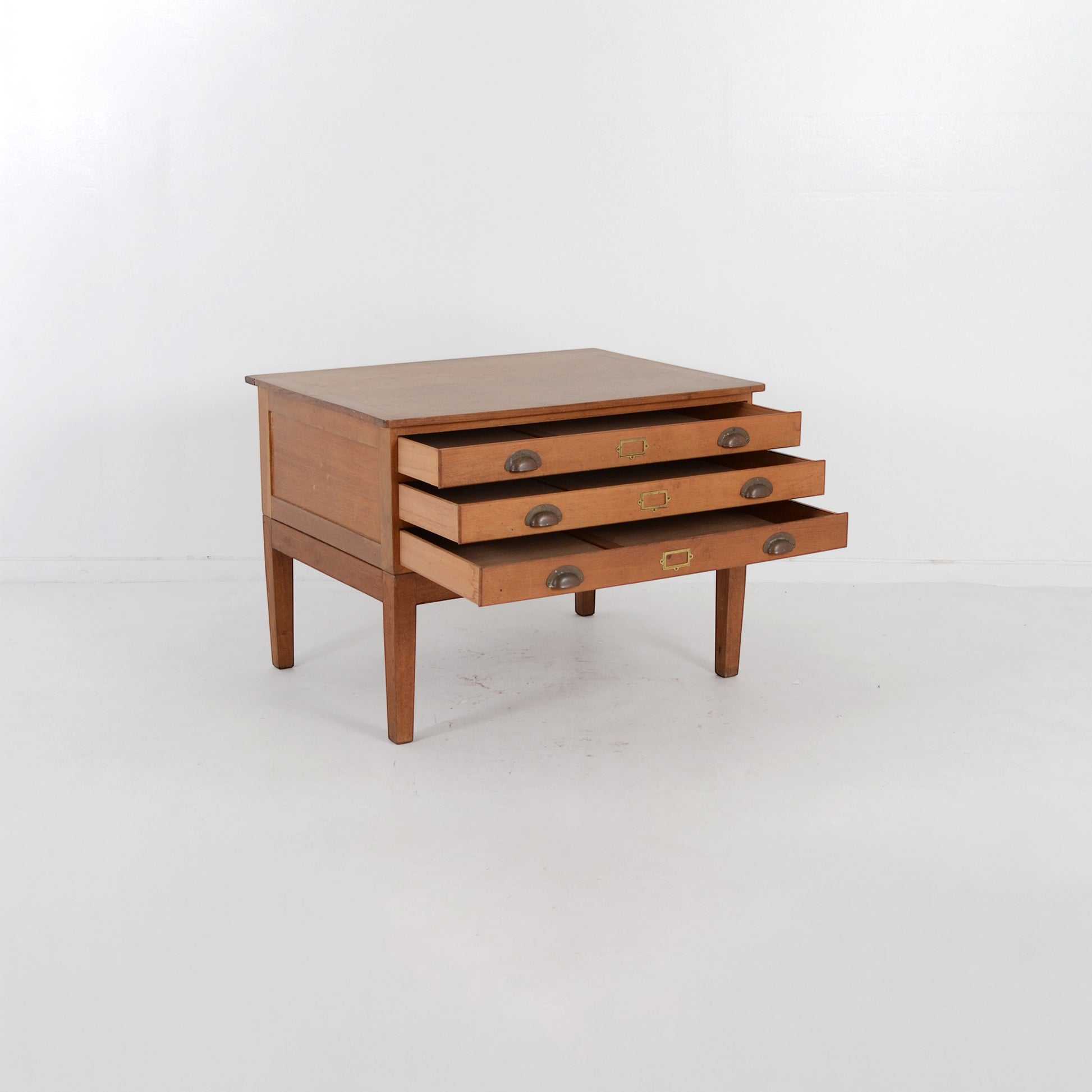 大きくて浅めの引き出しは、ポスターや図面、ラッピングペーパーなどの収納に便利。