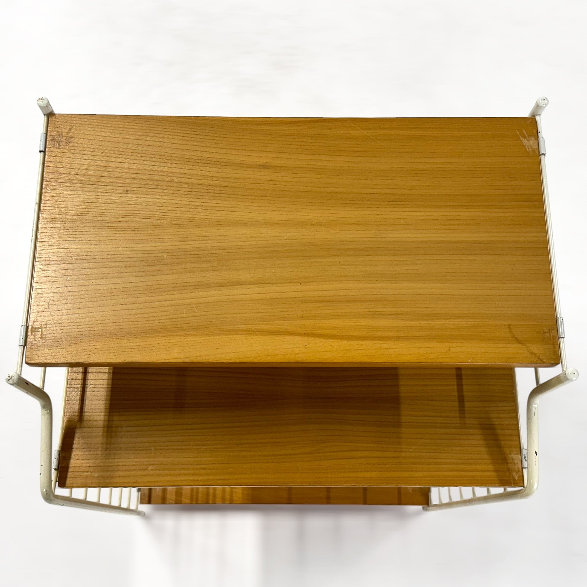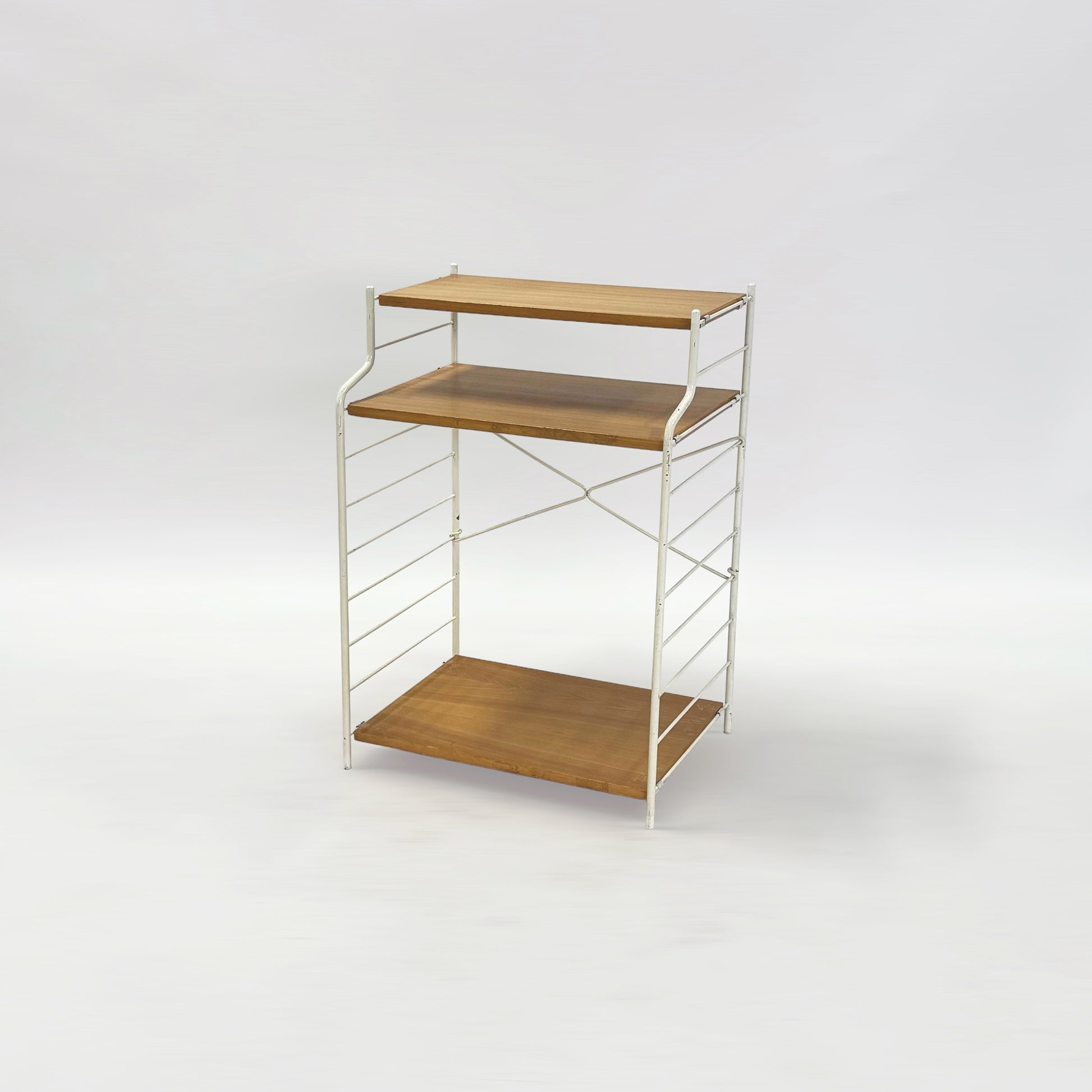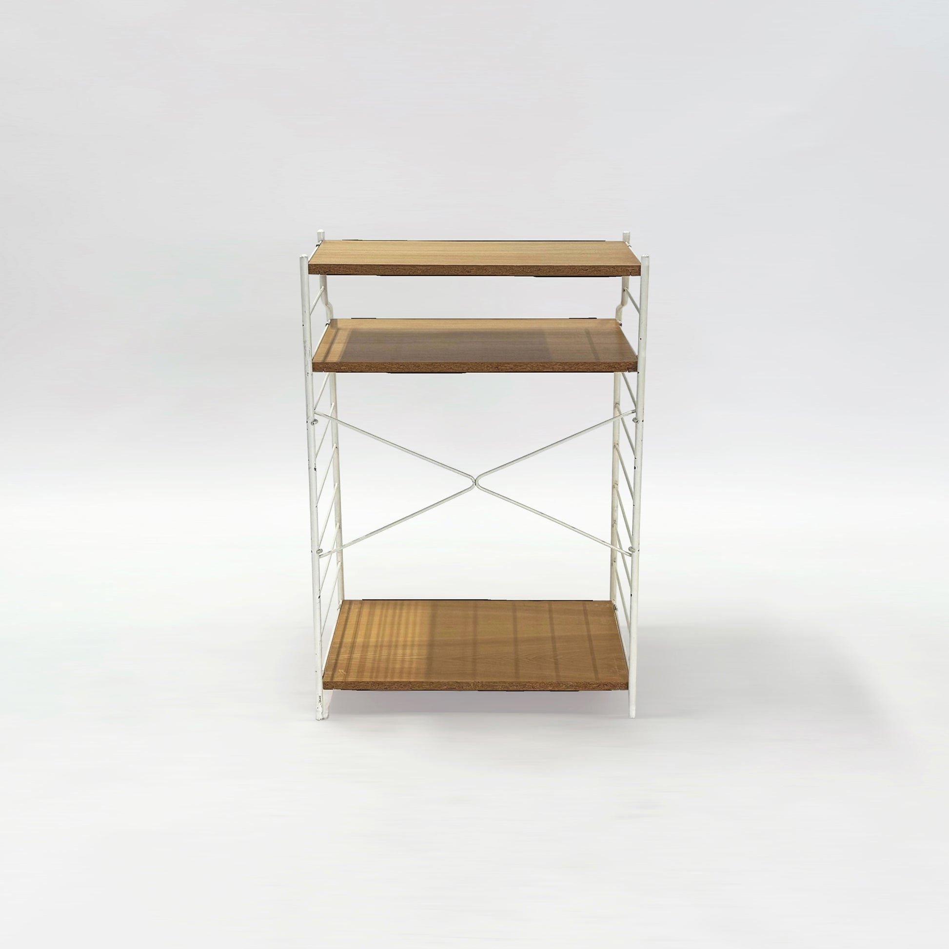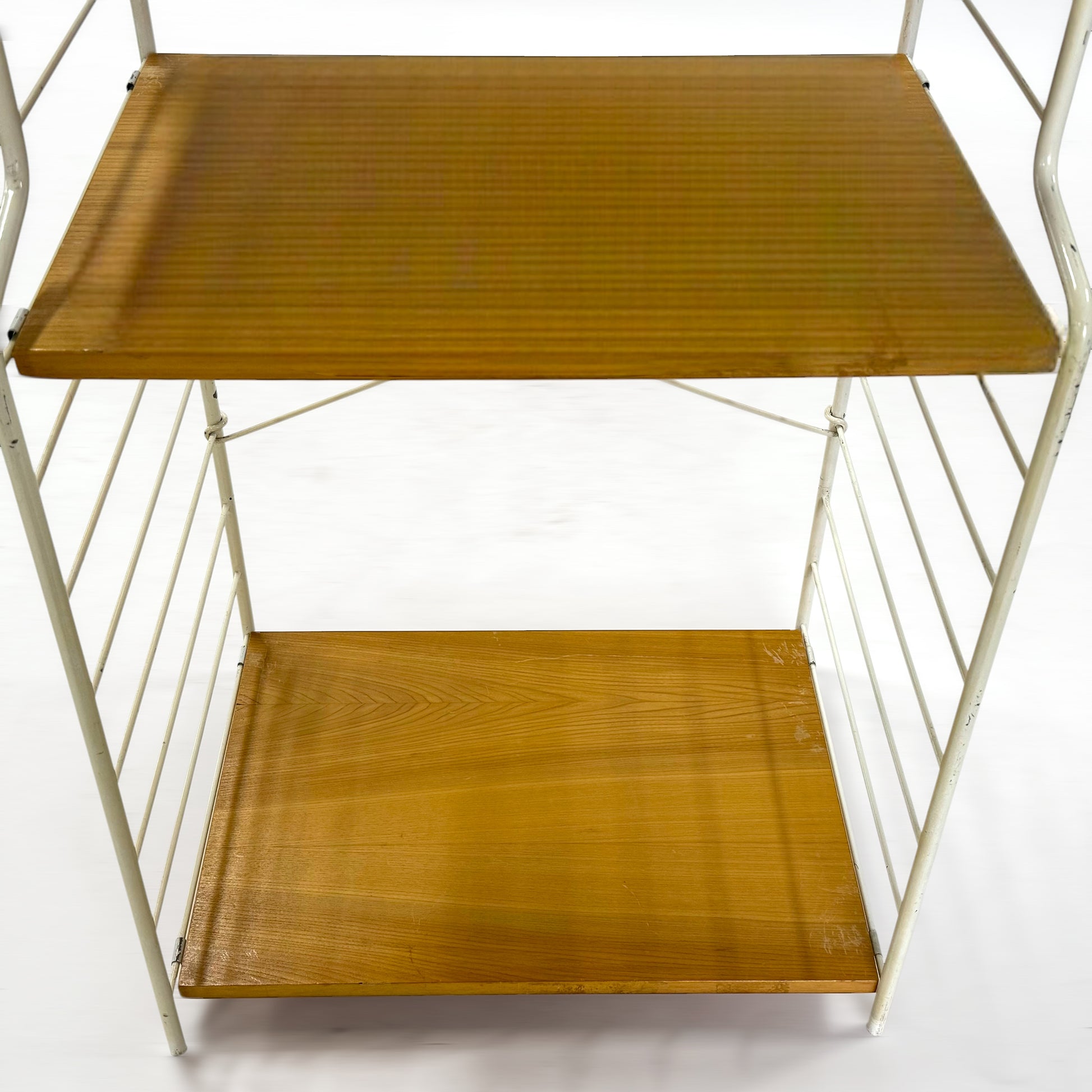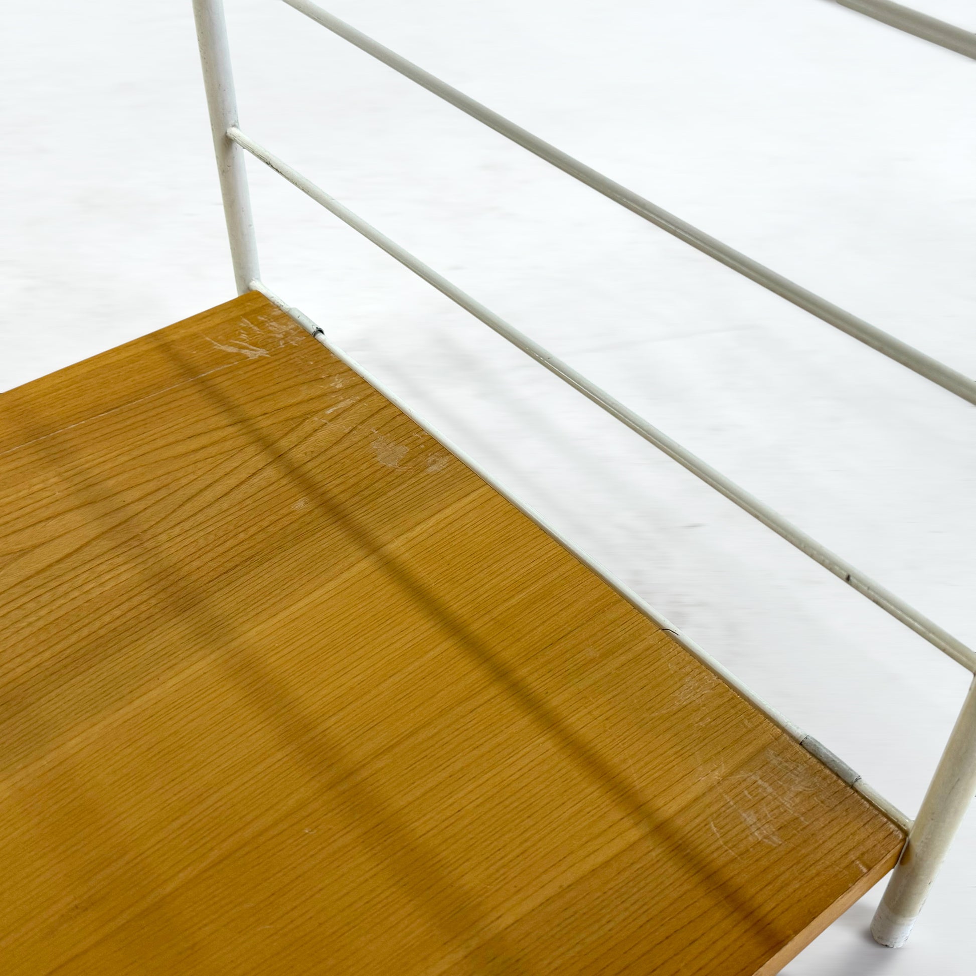 白の鉄製のフレームと木の棚板の組み合わせが可愛らしい組み立て式のユニットシェルフ。